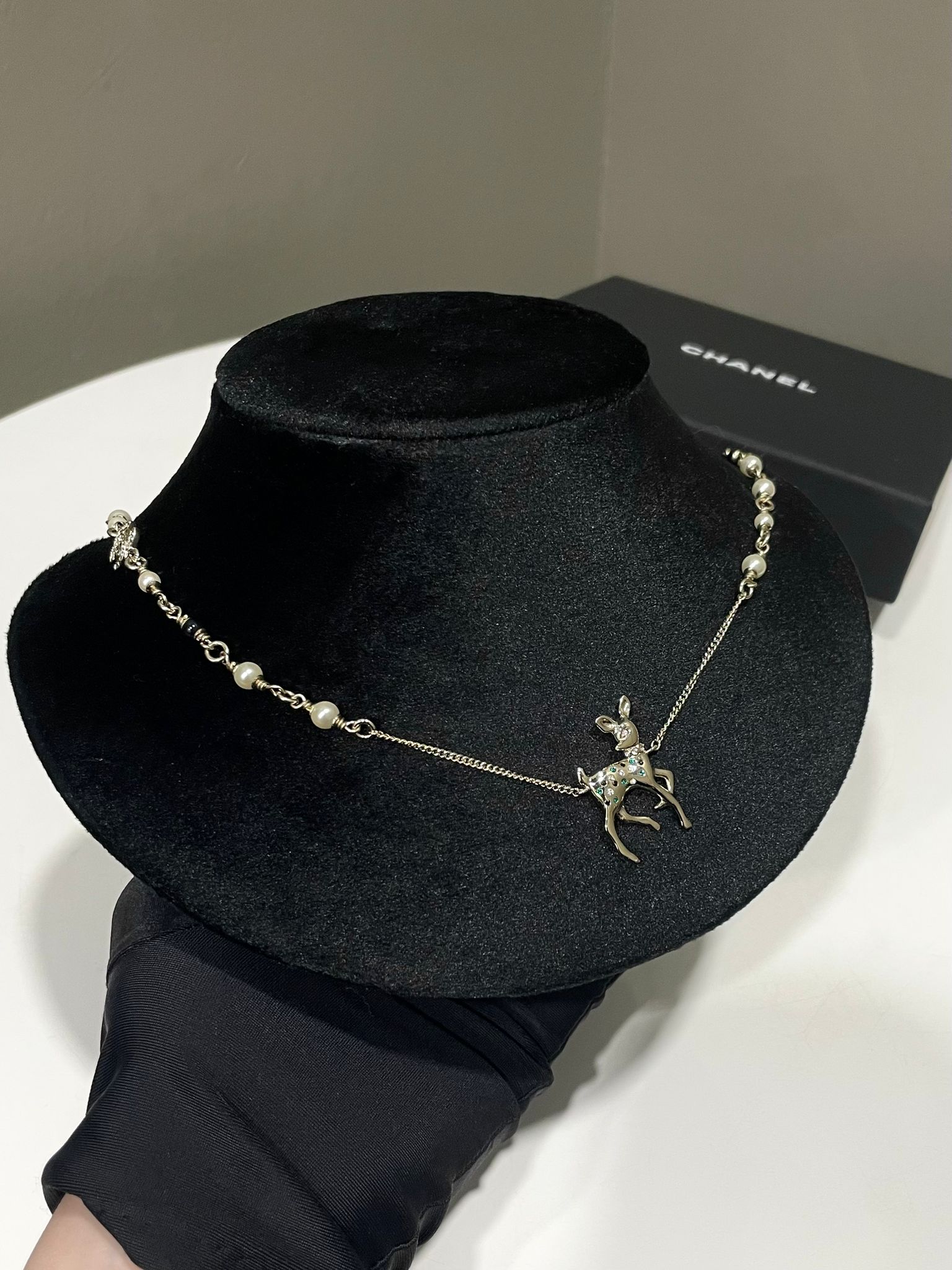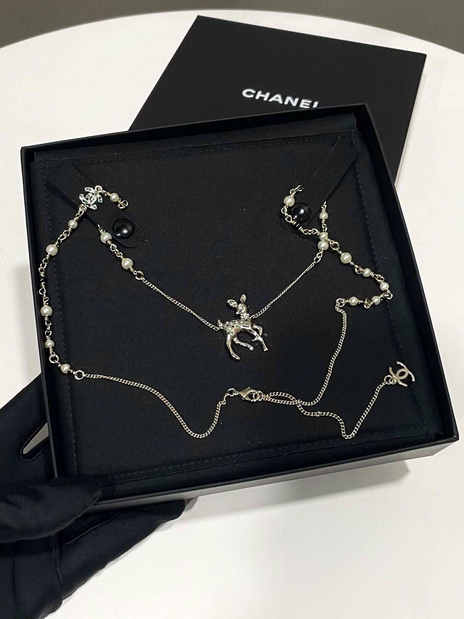 Chanel 26C VIP Deer Pendant Long Necklace Pearl / Rhinestone