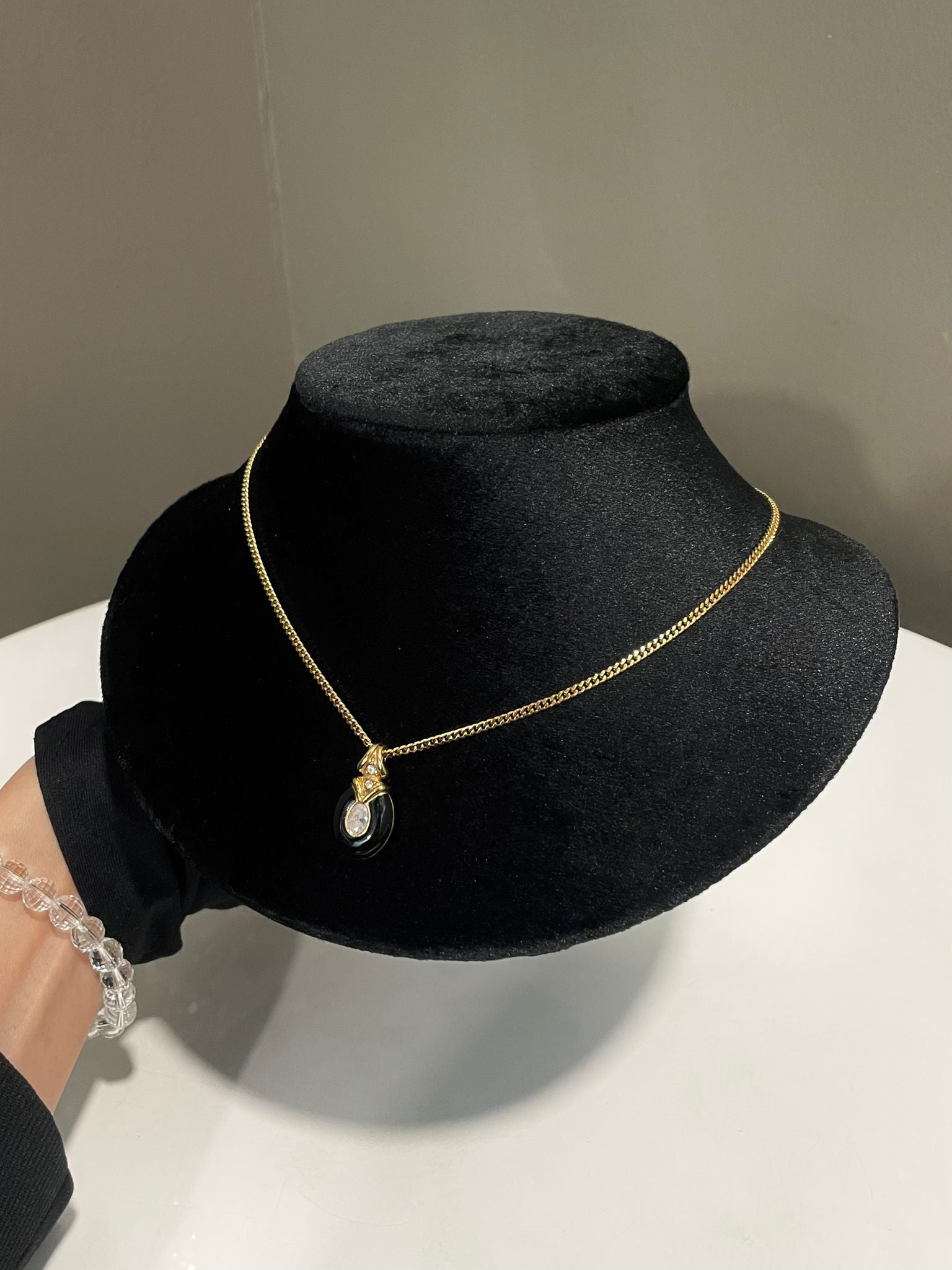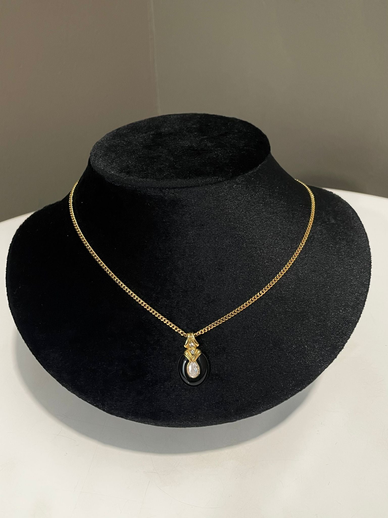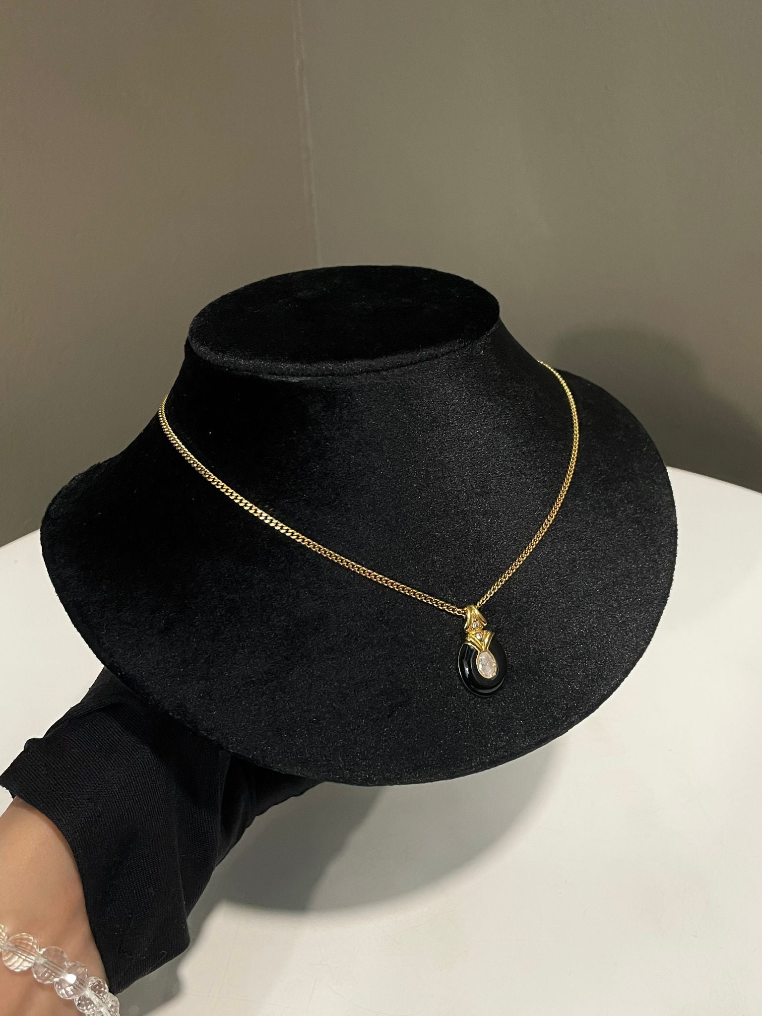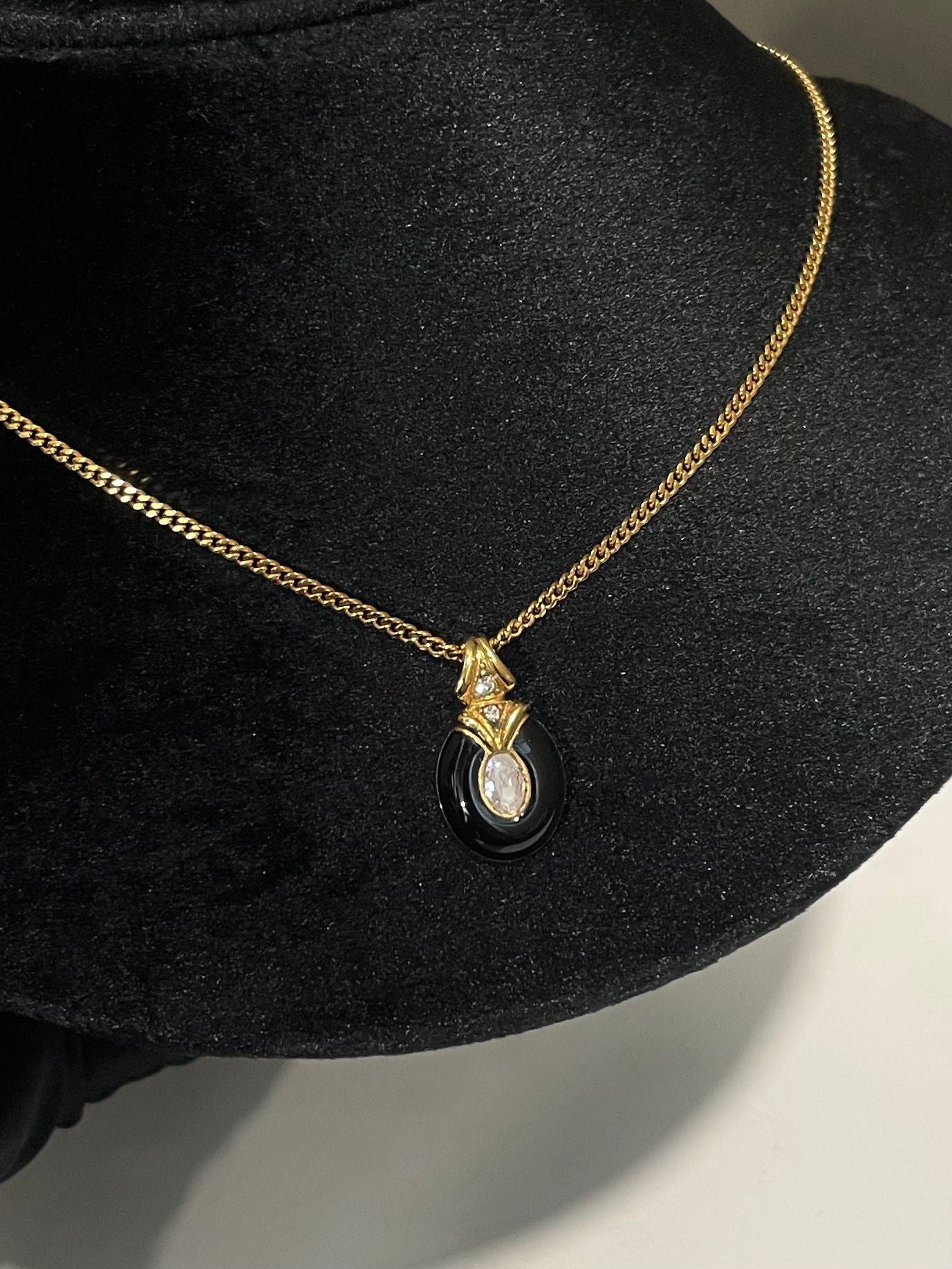 Christian Dior Drop Necklace Black Enamel / Rhinestone