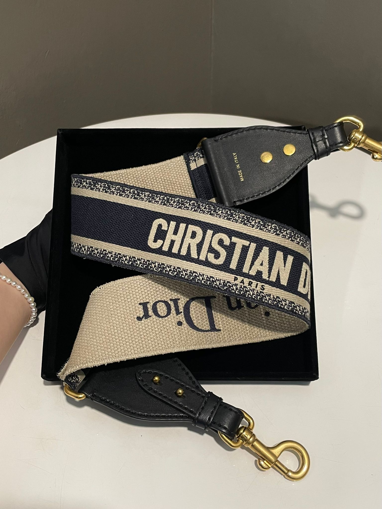 Dior Shoulder Strap Dark Navy Embroidery