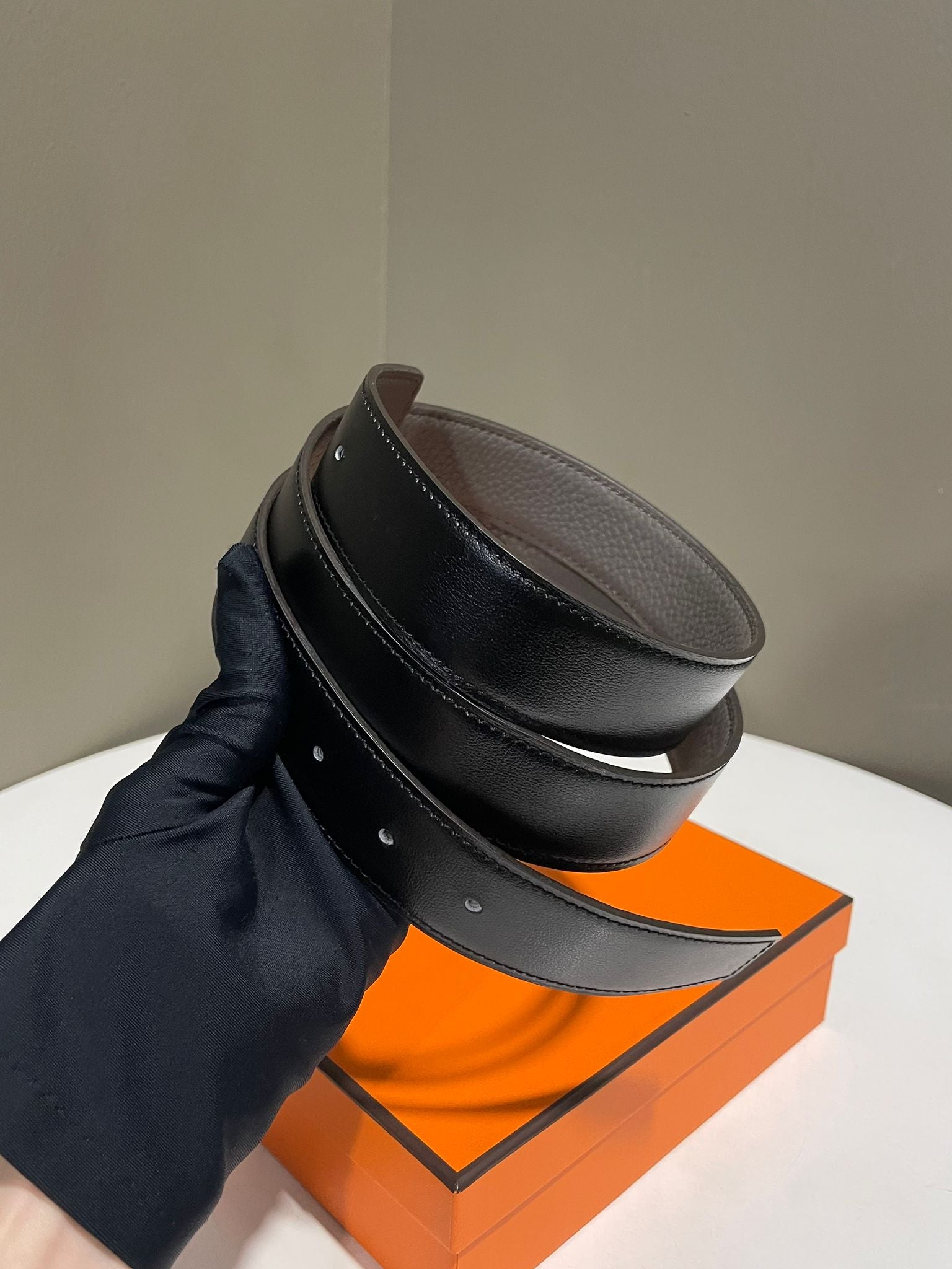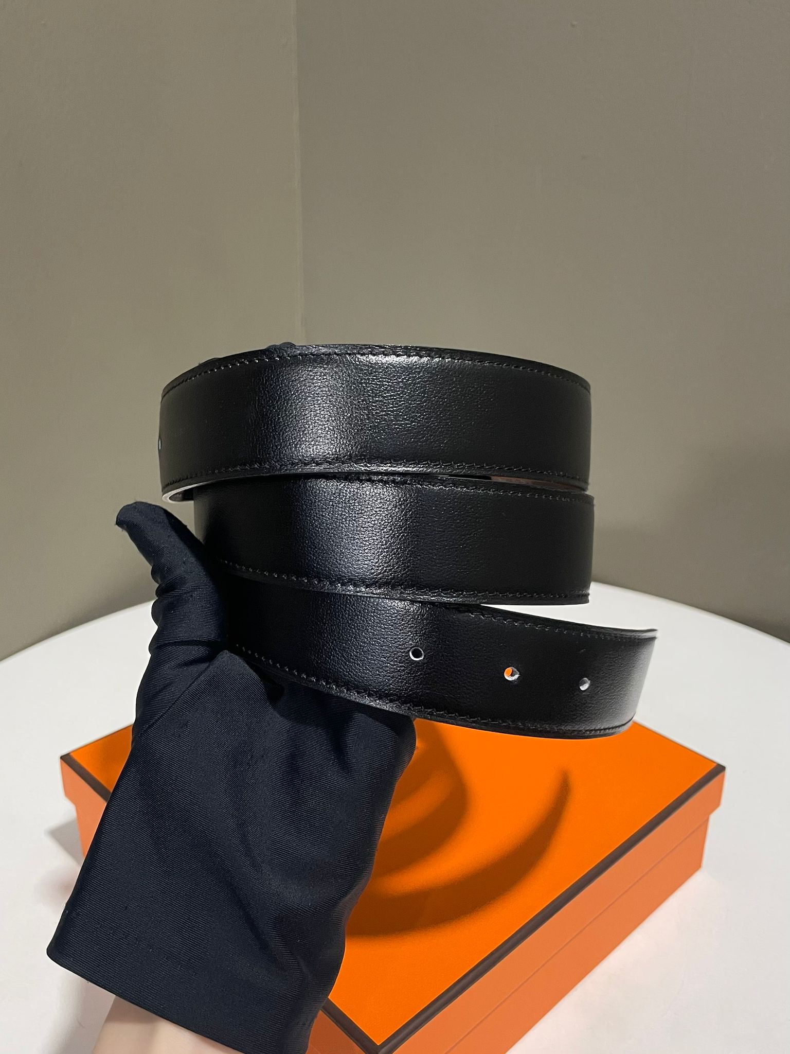 Hermes H d'Ancre Belt Buckle & Reversible Leather Strap Noir / Etain