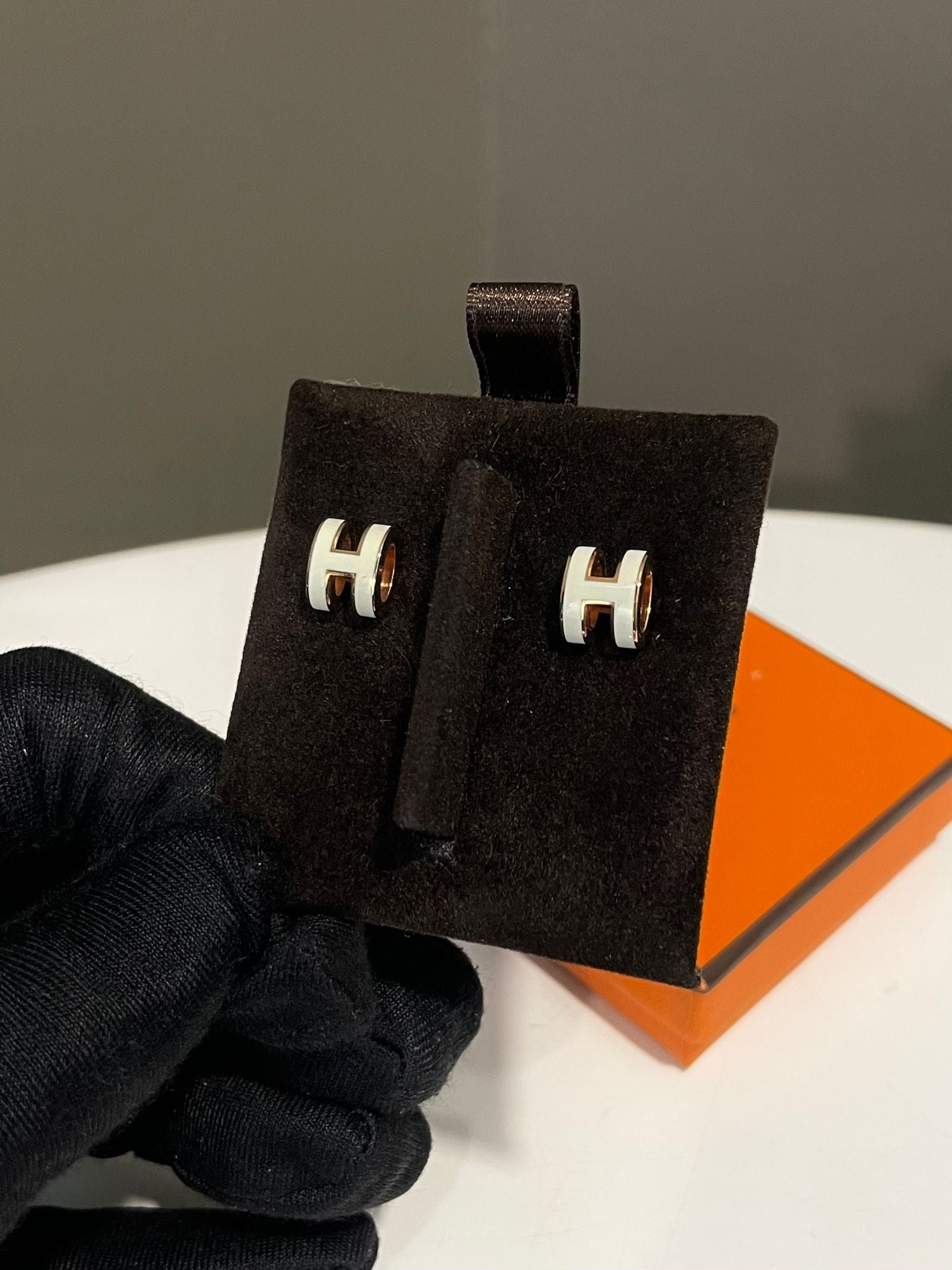 Hermes Mini Pop H Earring Blanc White
