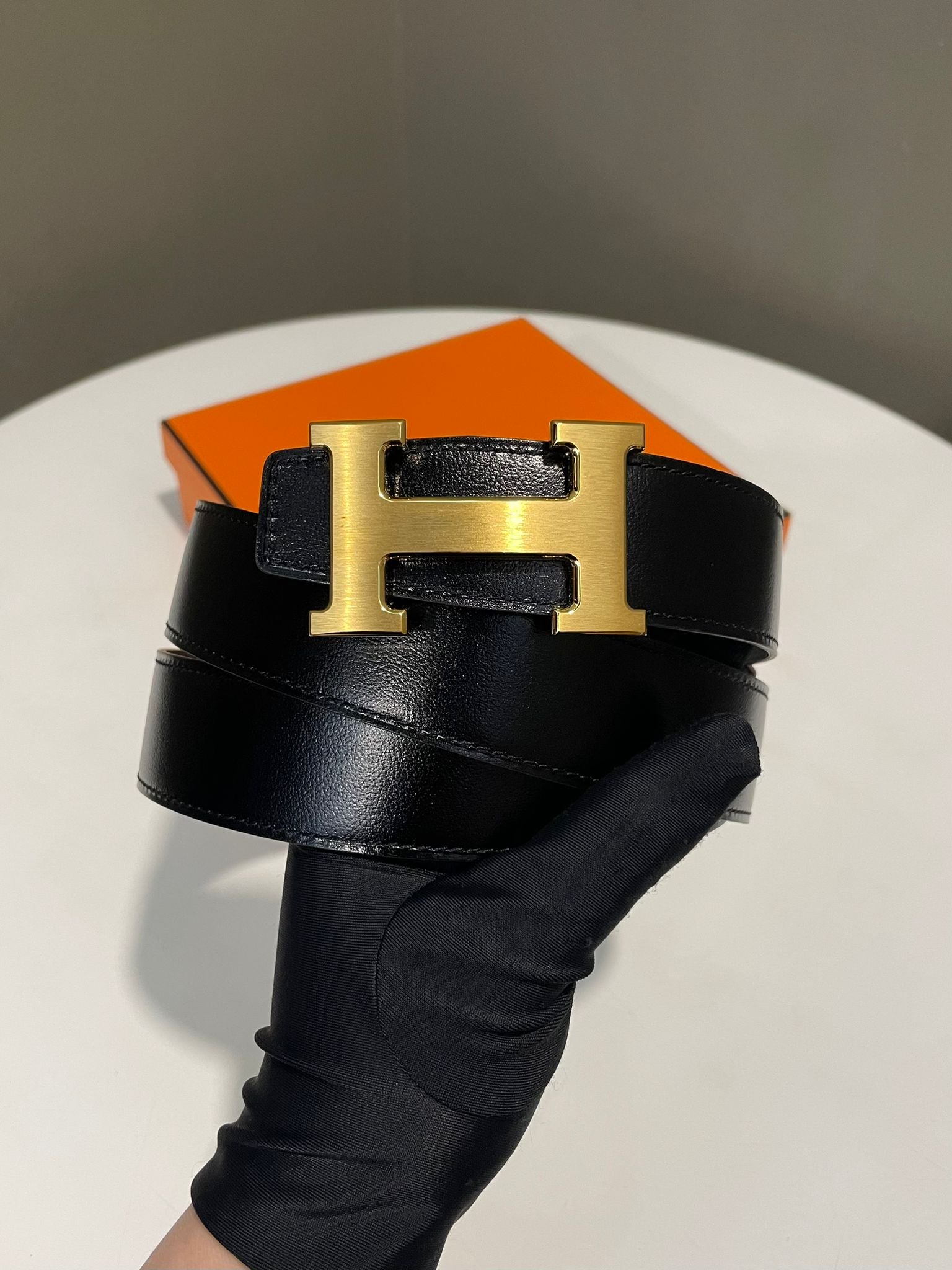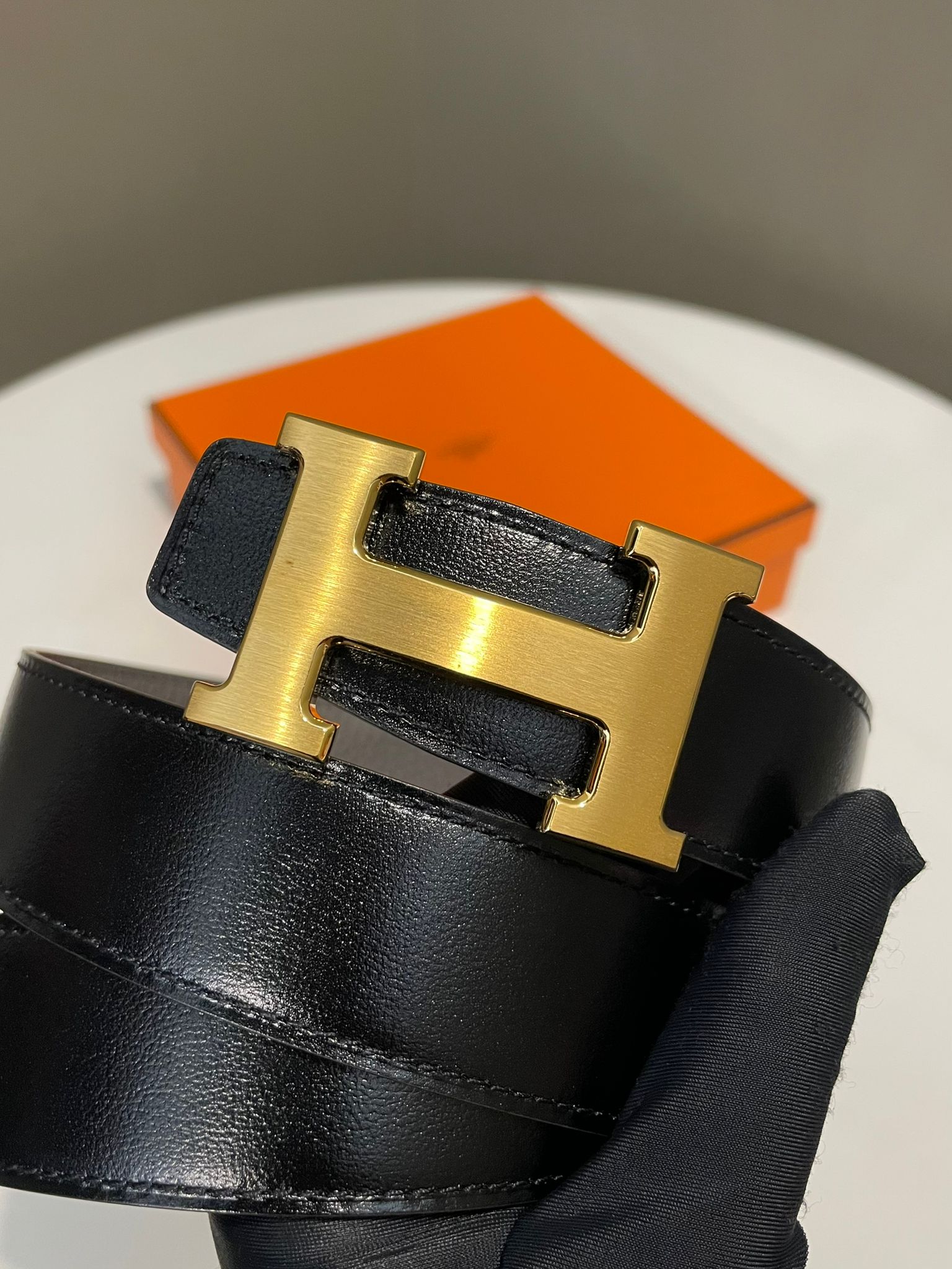 Hermes Reversible H Belt Black Noir Box / Etain Togo