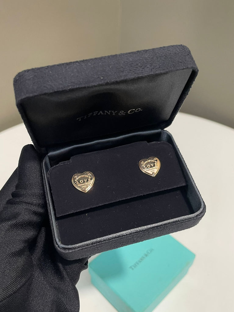 Tiffany and Co Heart Tag Stud Earrings 18K Yellow Gold