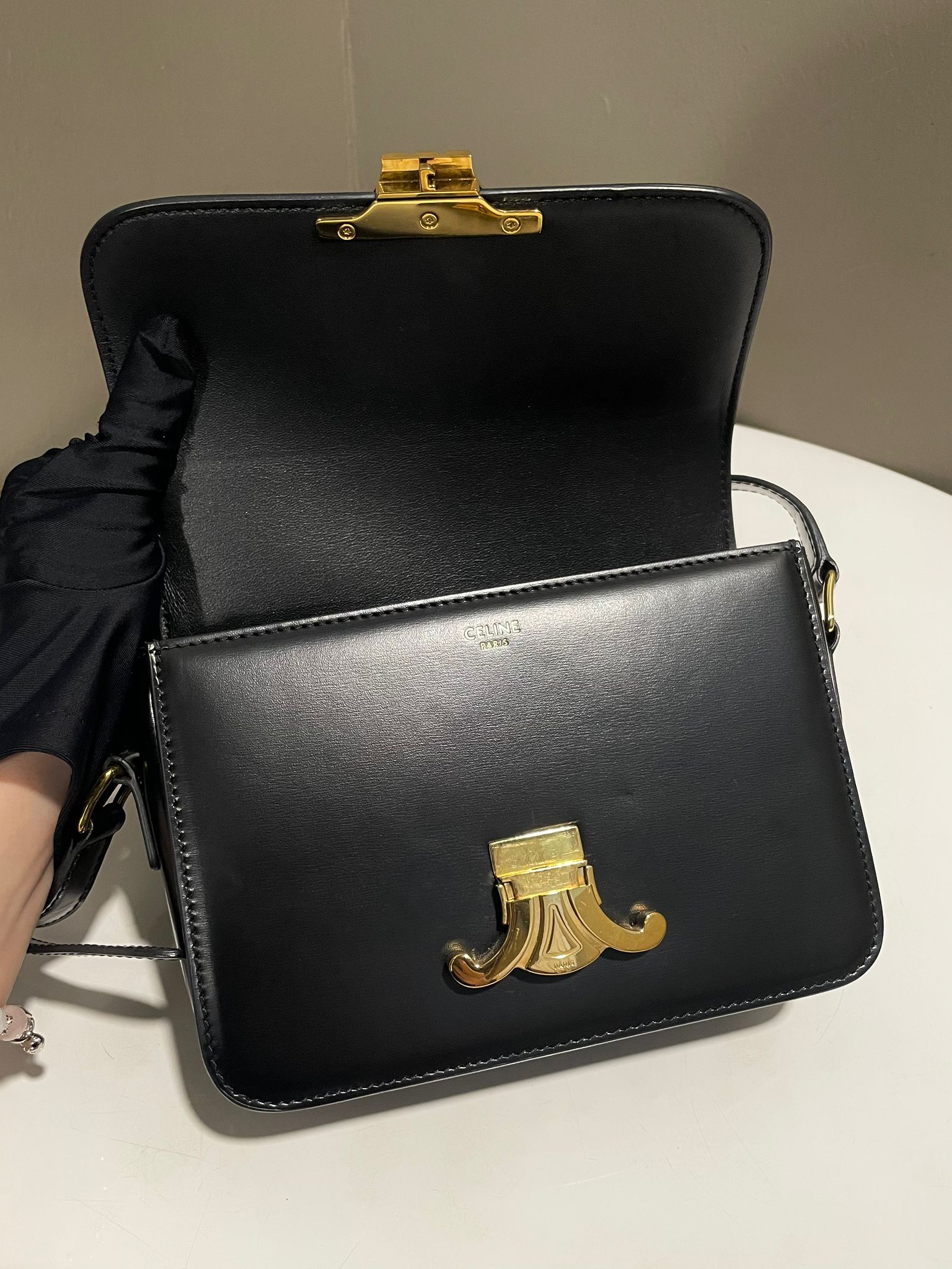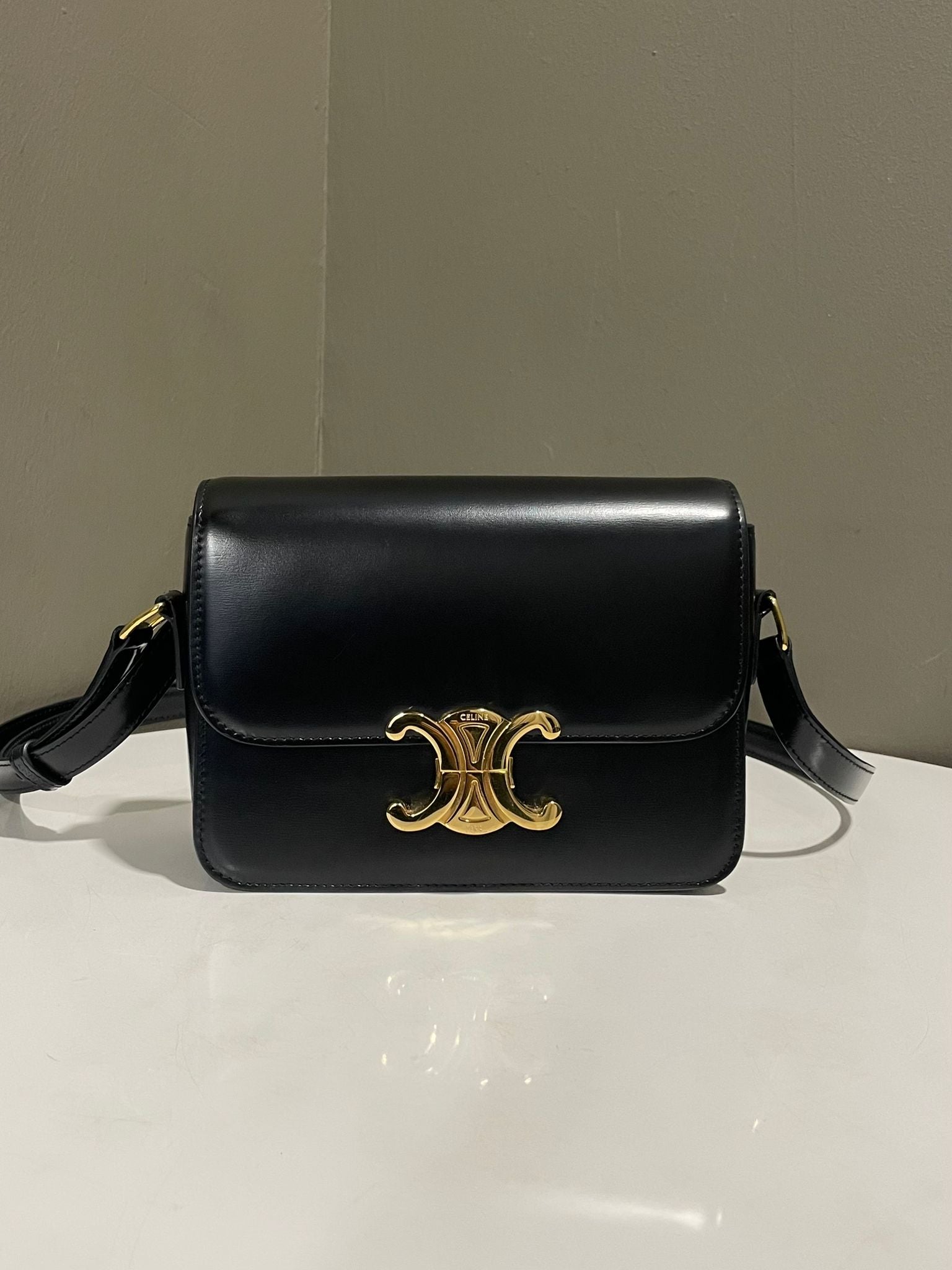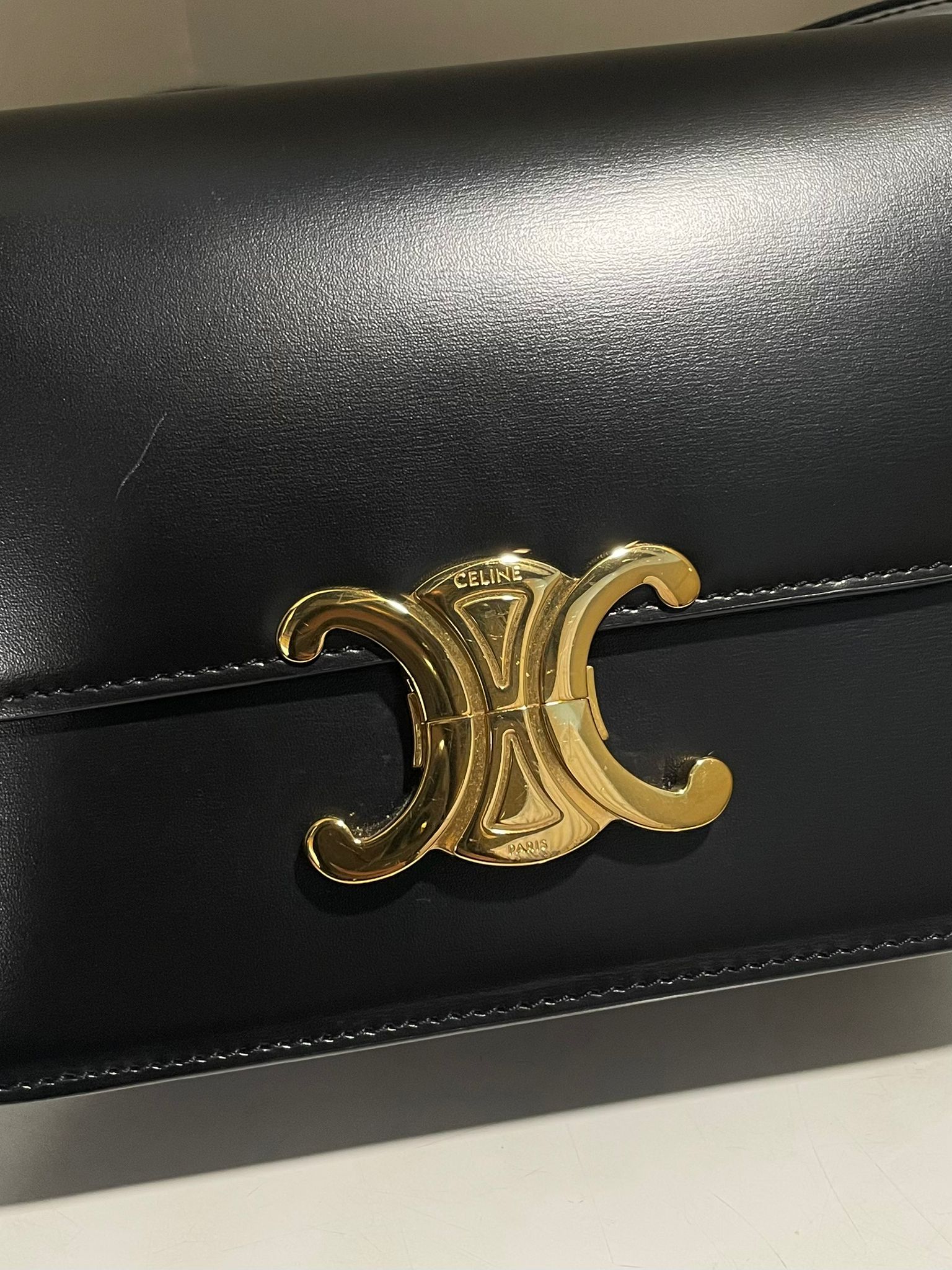 Celine Teen Triomphe Bag Black Shiny Calfskin