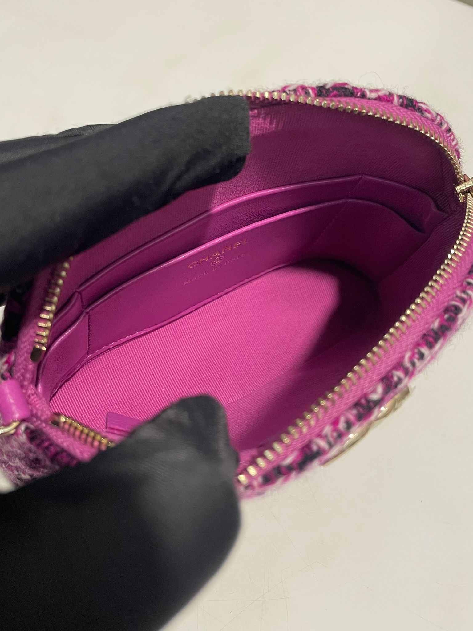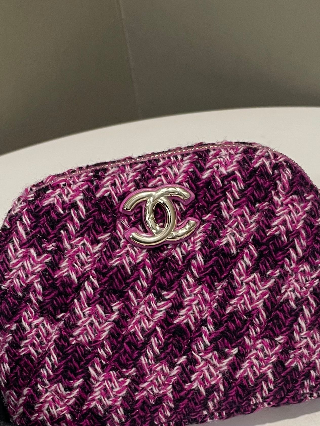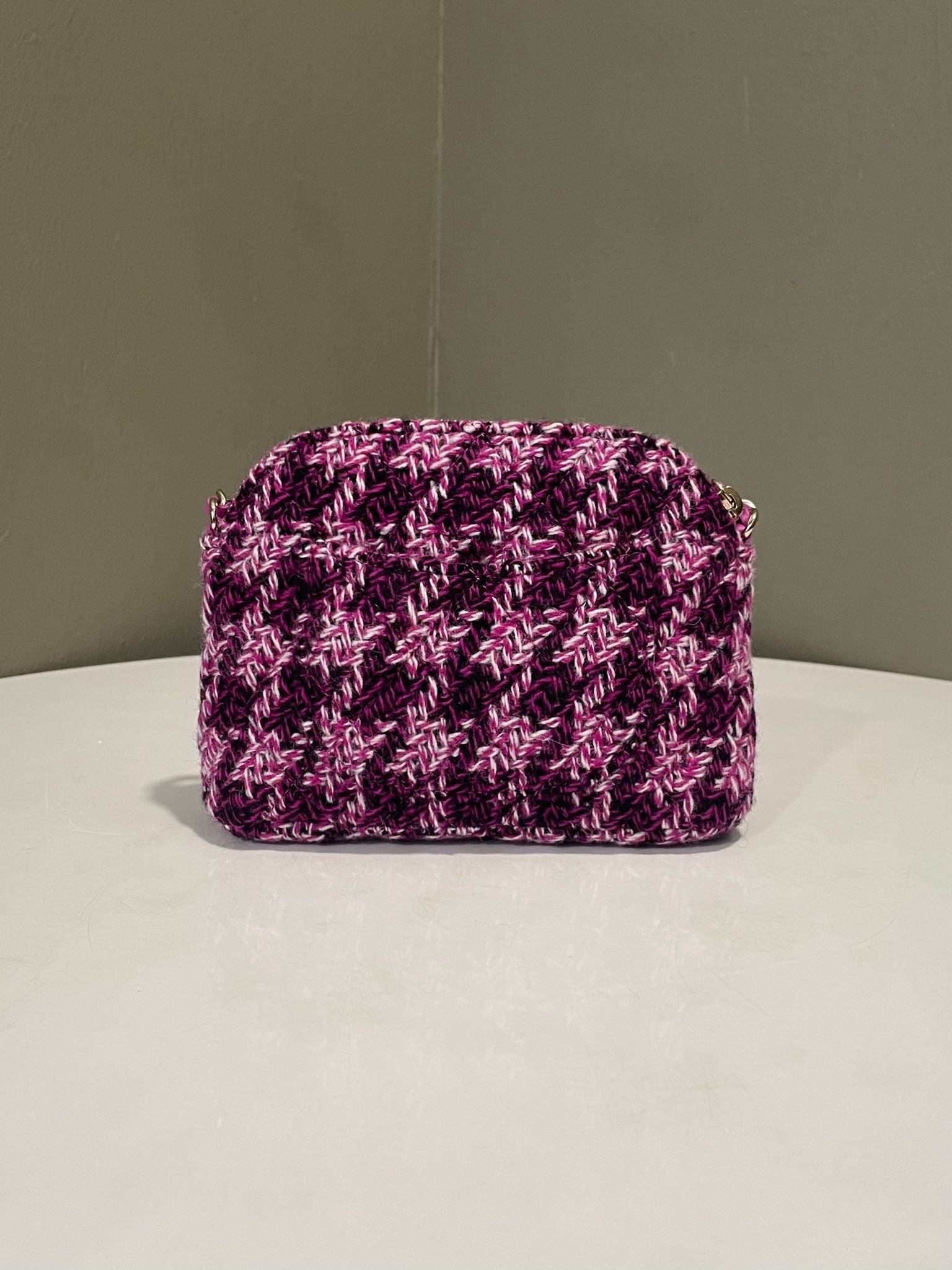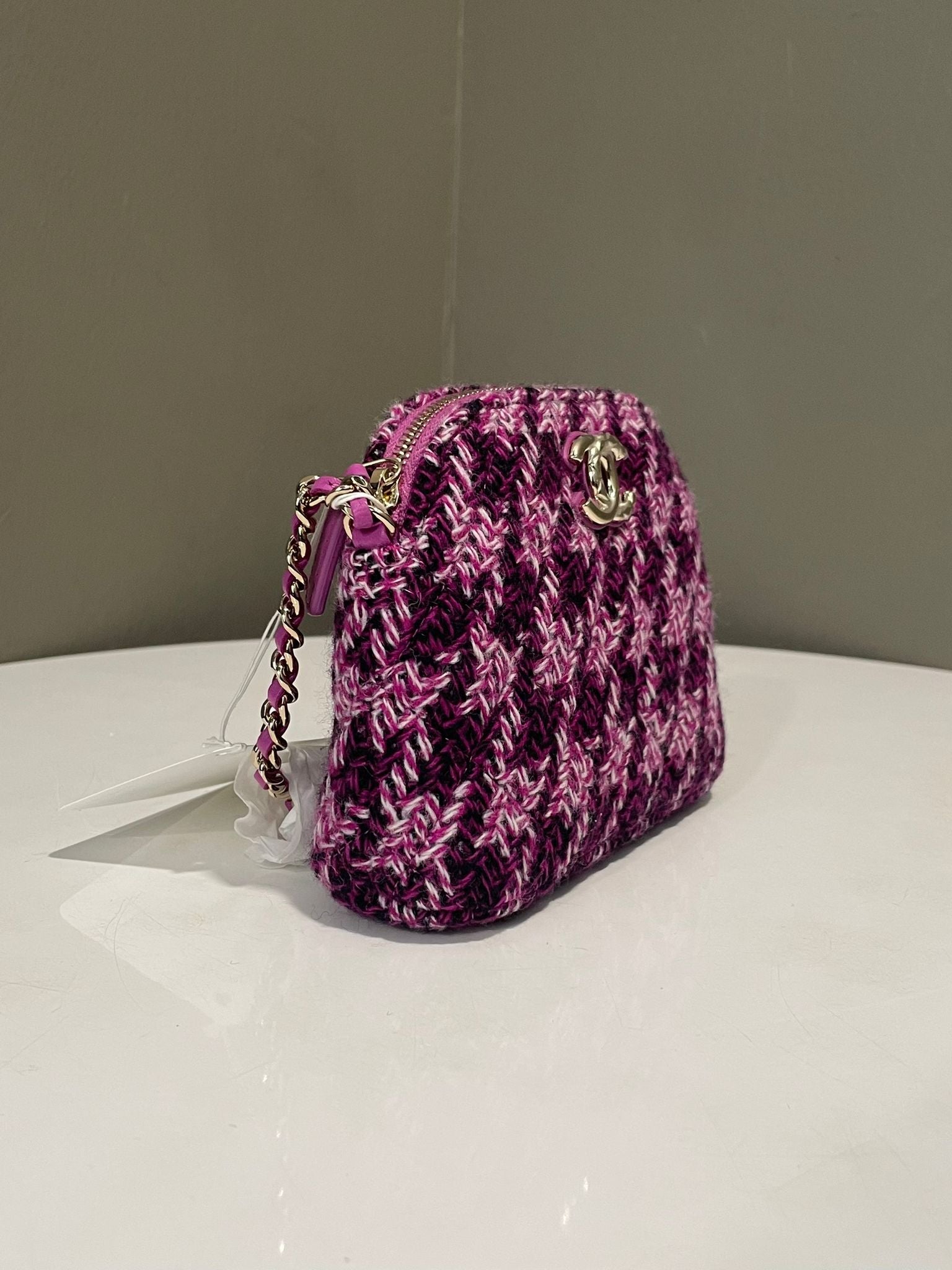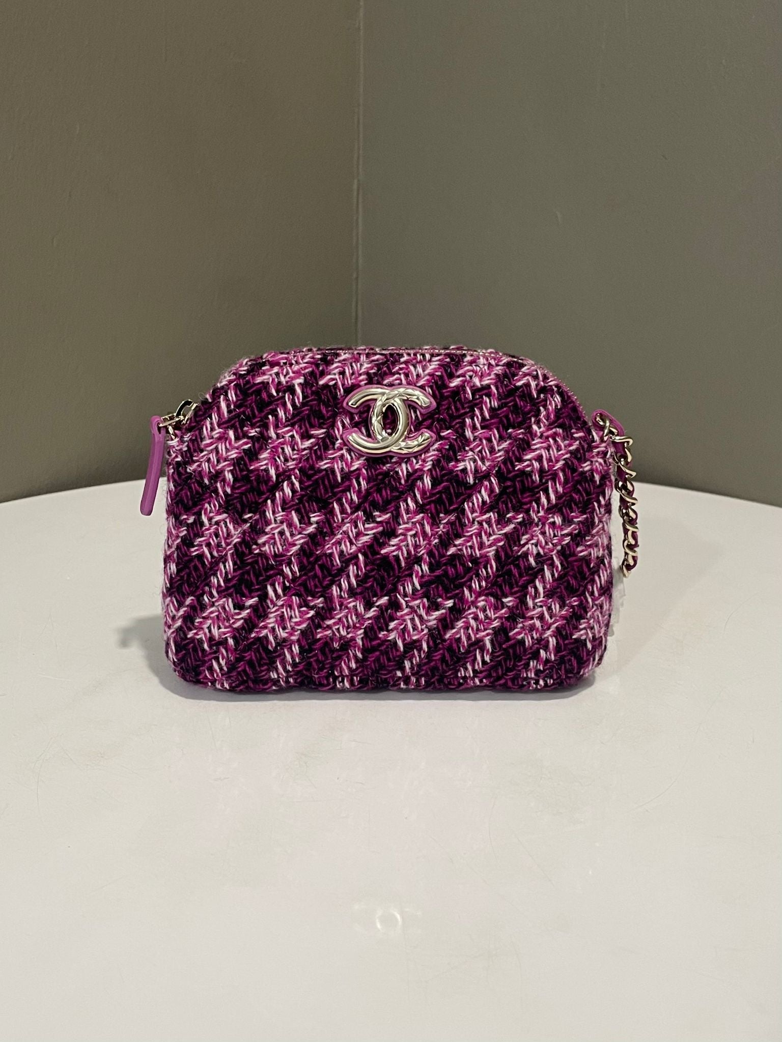 Chanel 24K VIP Tweed Houndstooth Clutch On Chain Purple/ Pink/ Black Multi Tweed