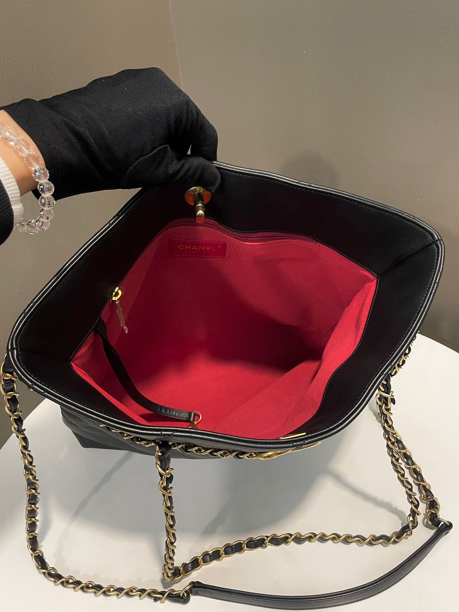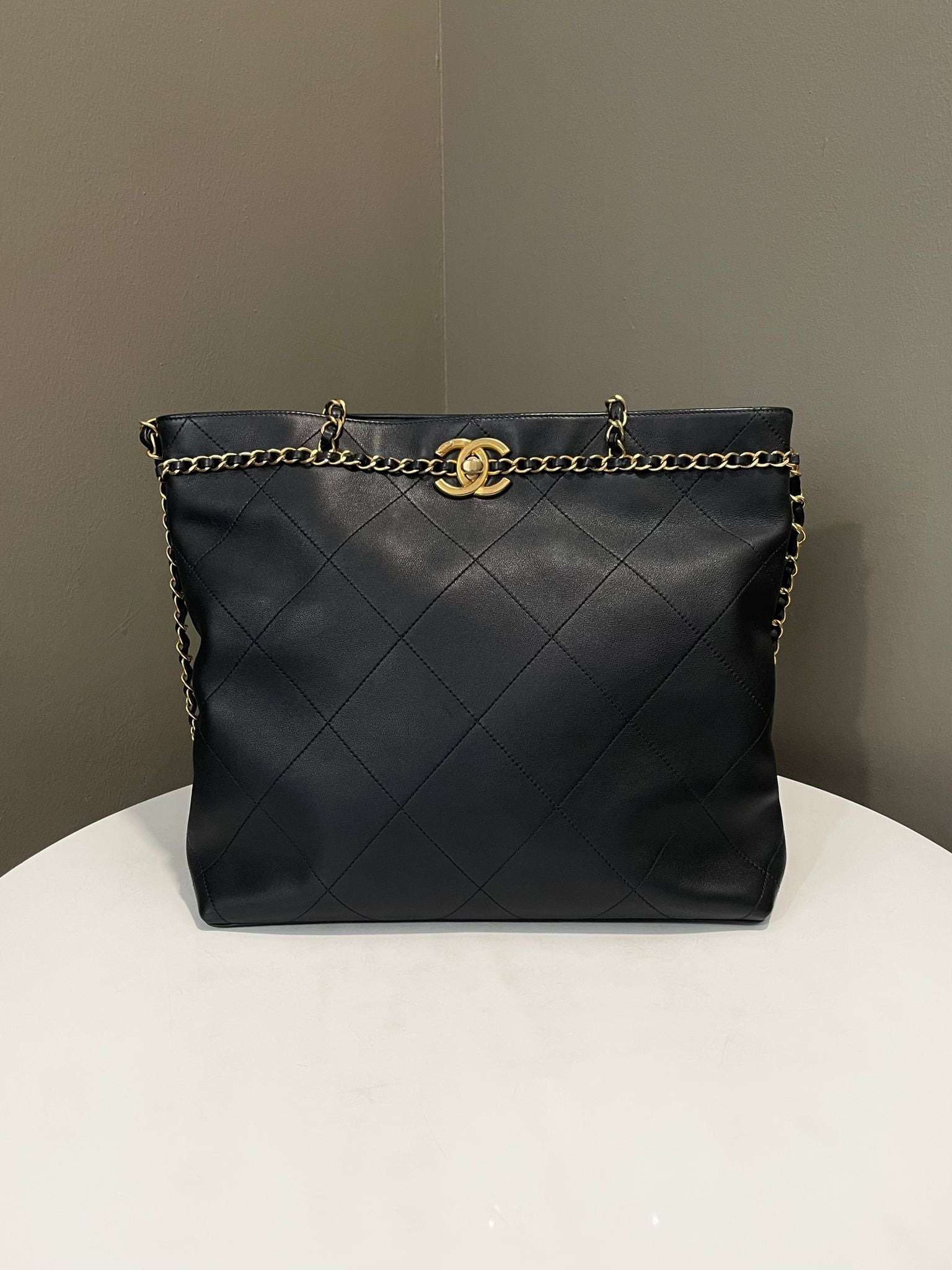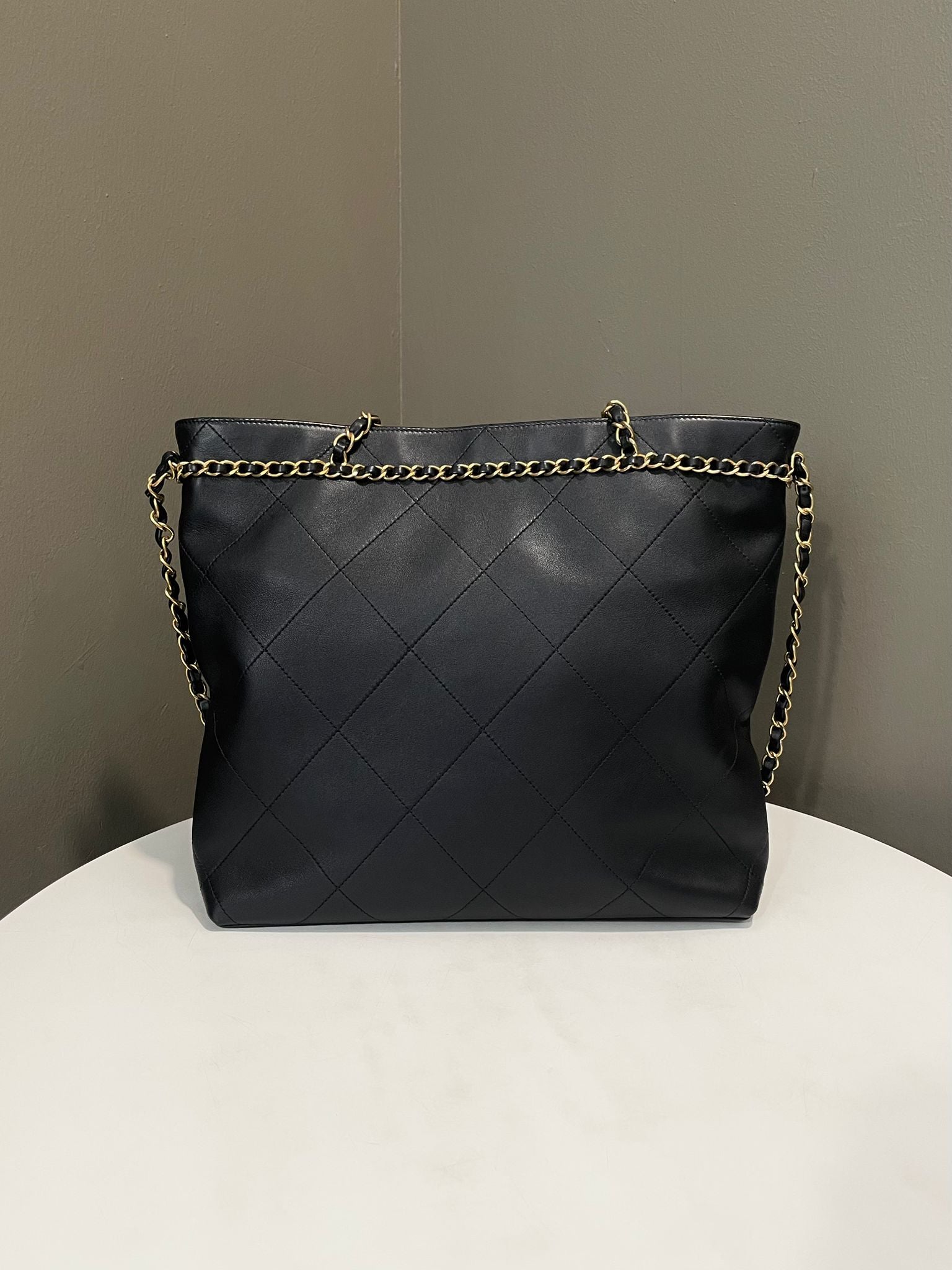 Chanel CC Lock Chain Handle Shopping Tote Black Calfskin