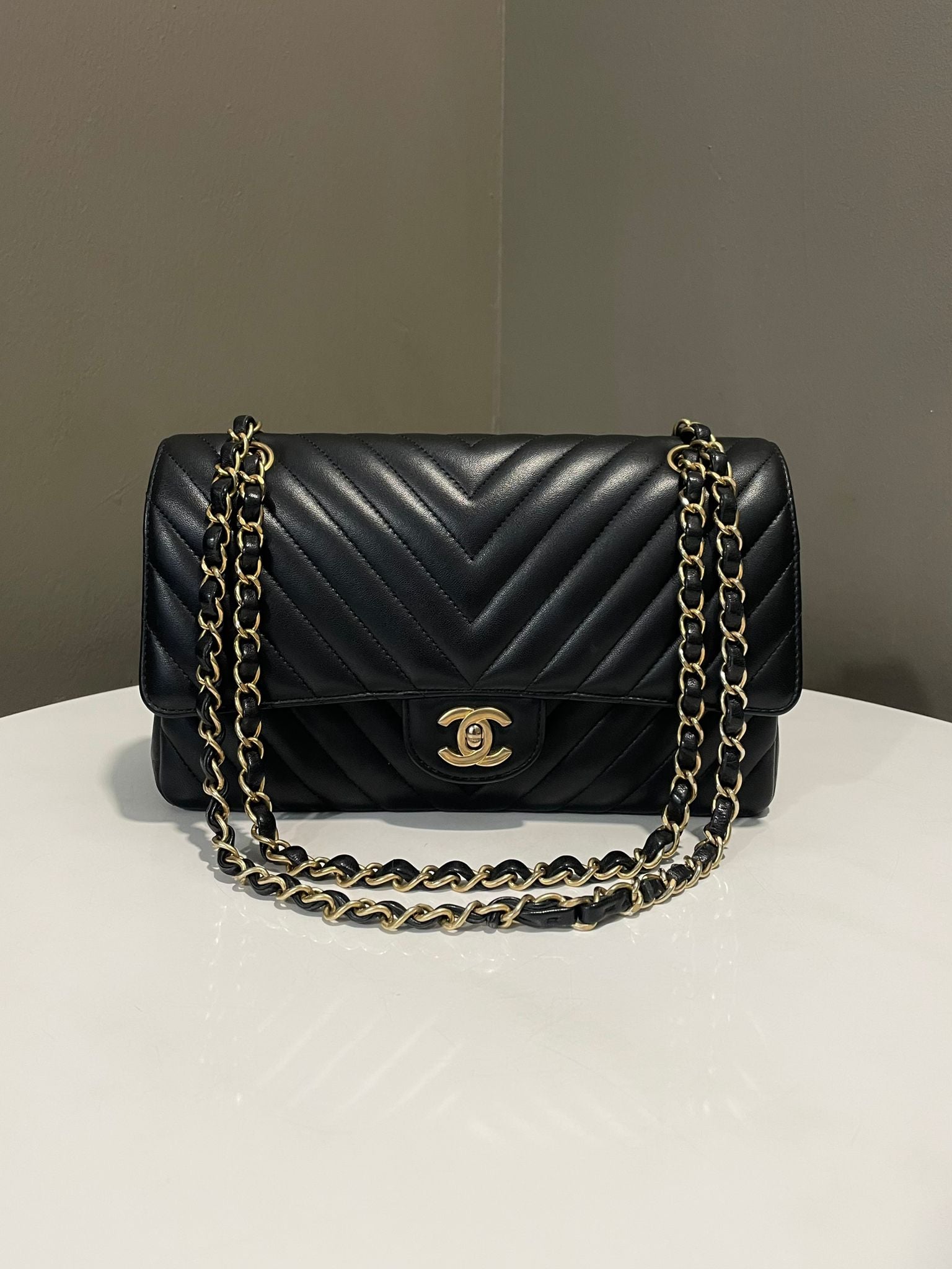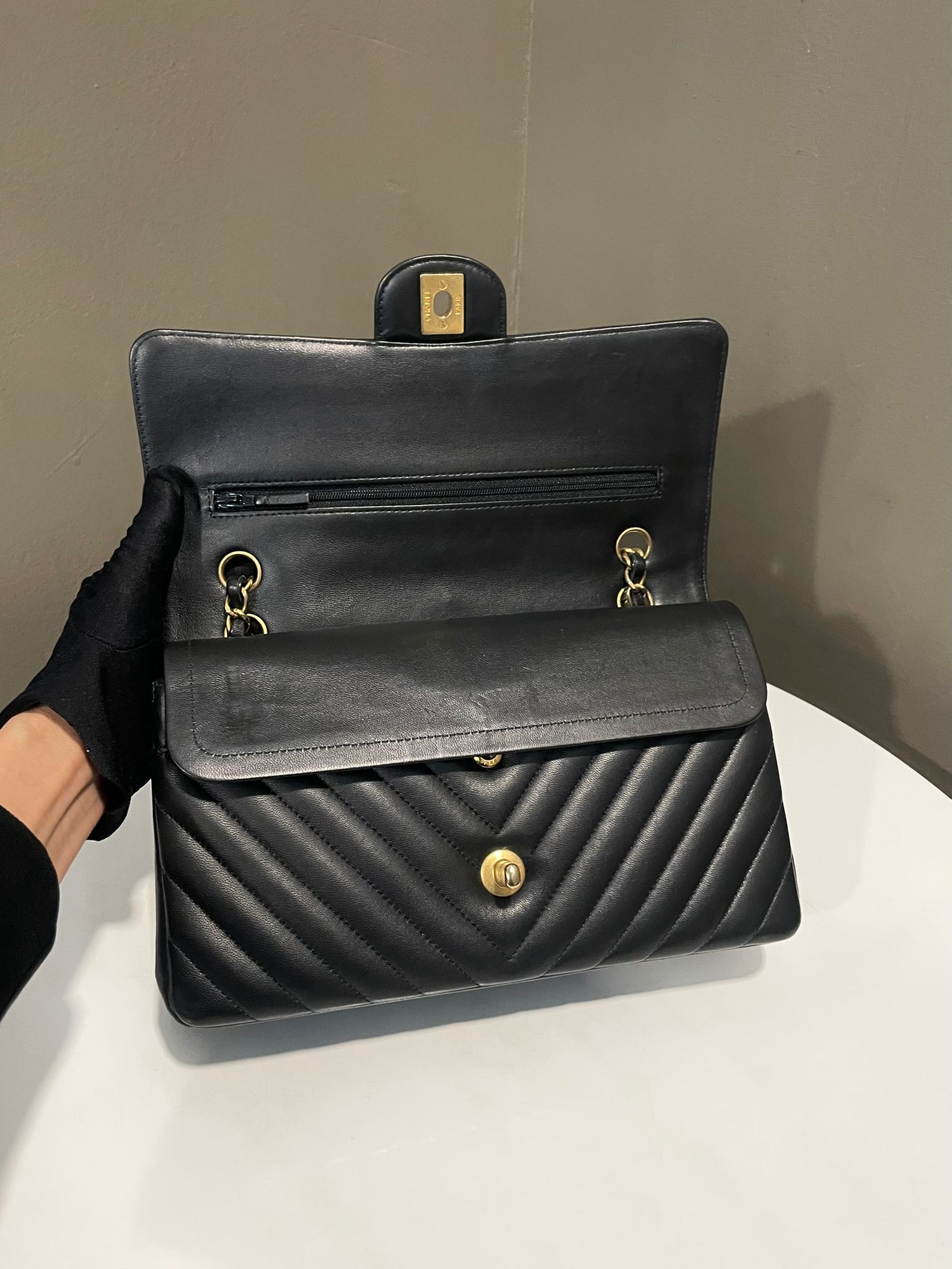 Chanel Classic Chevron Medium Double Flap Black Lambskin