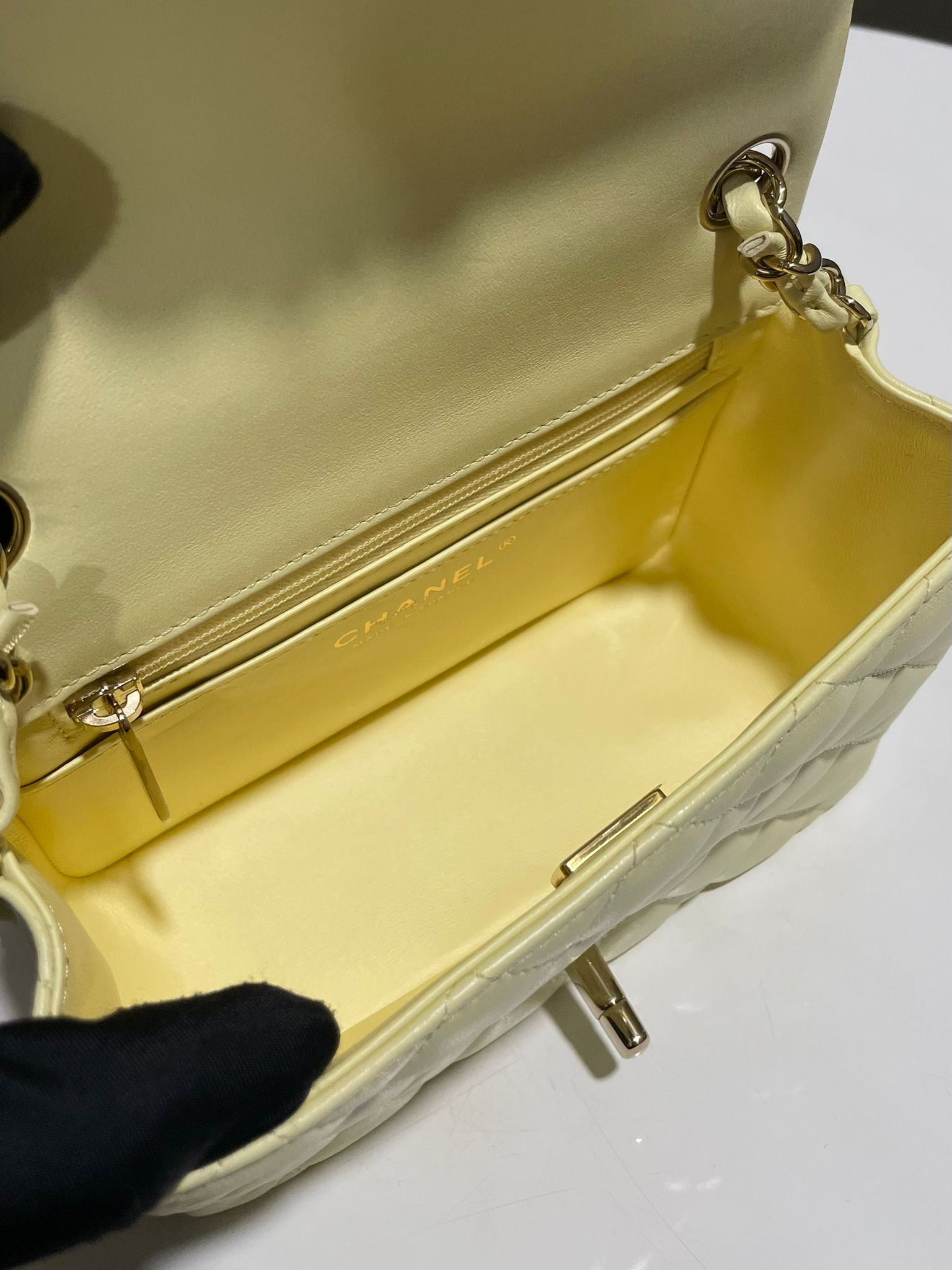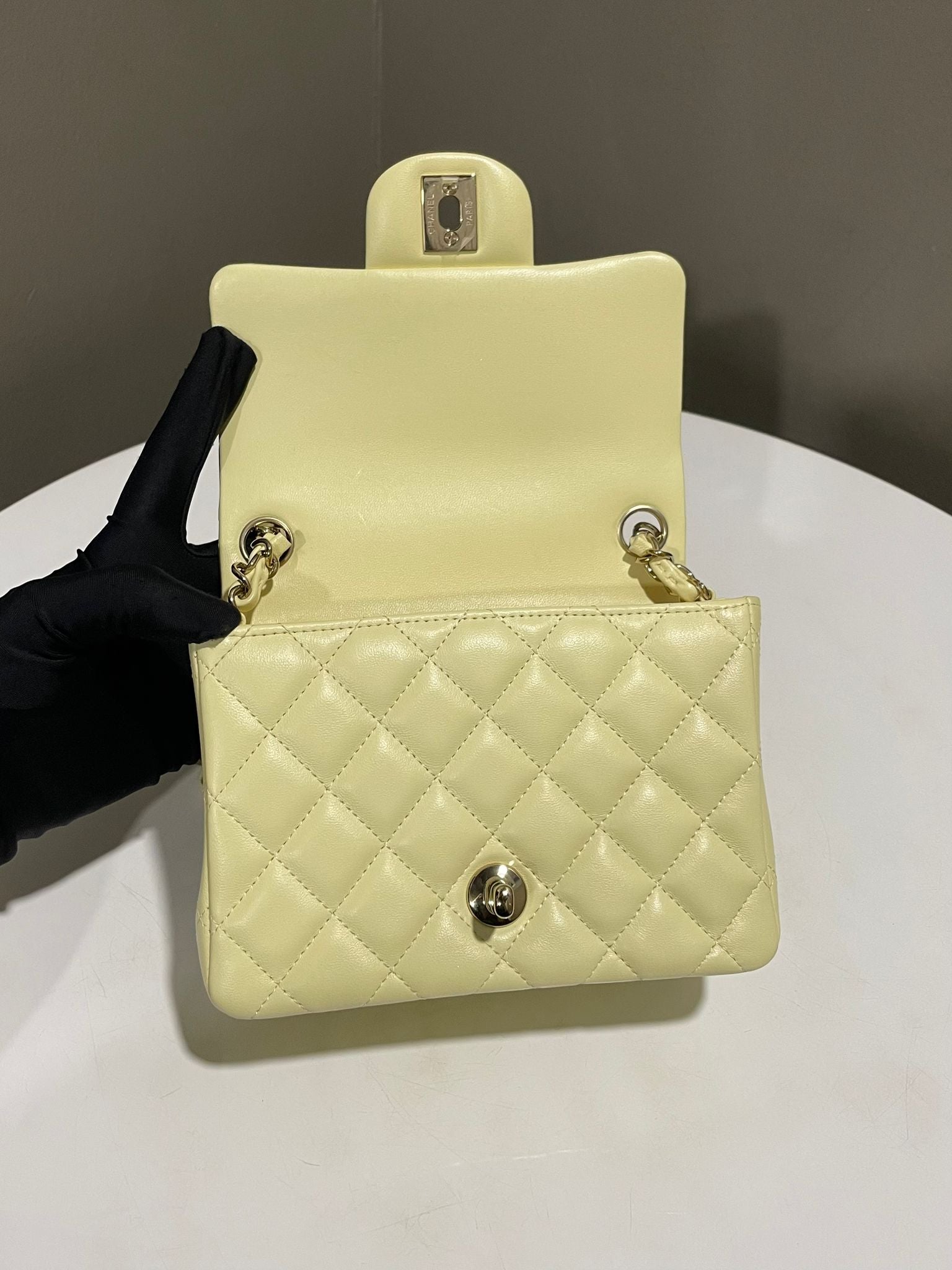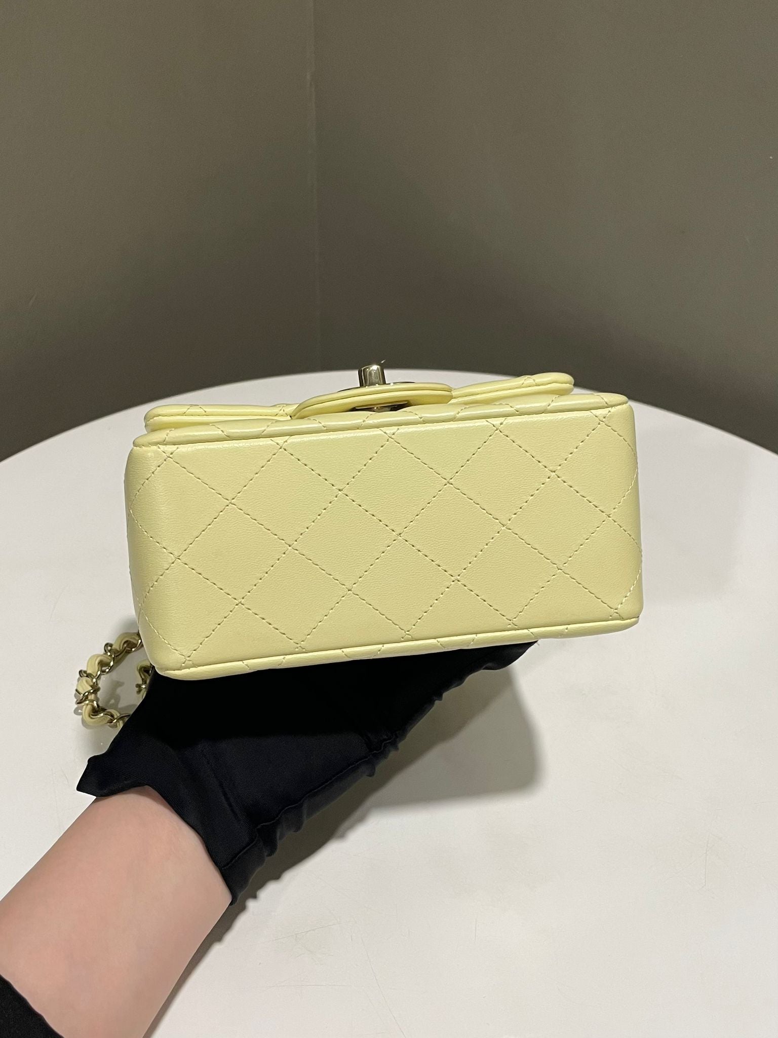 Chanel Classic Quilted Mini Square Pastel Yellow Lambskin