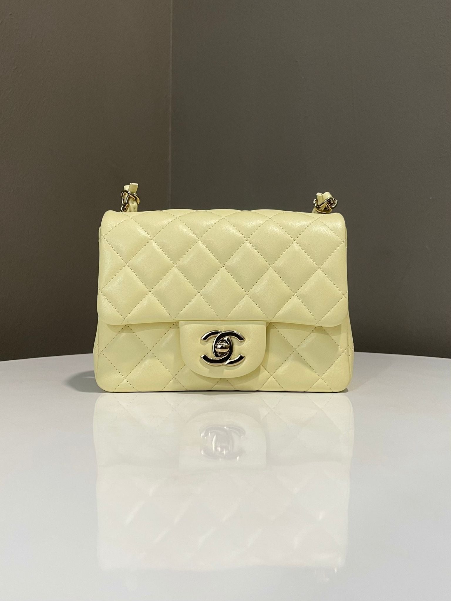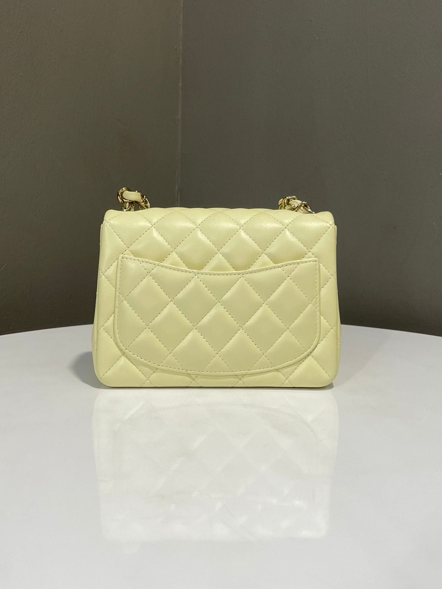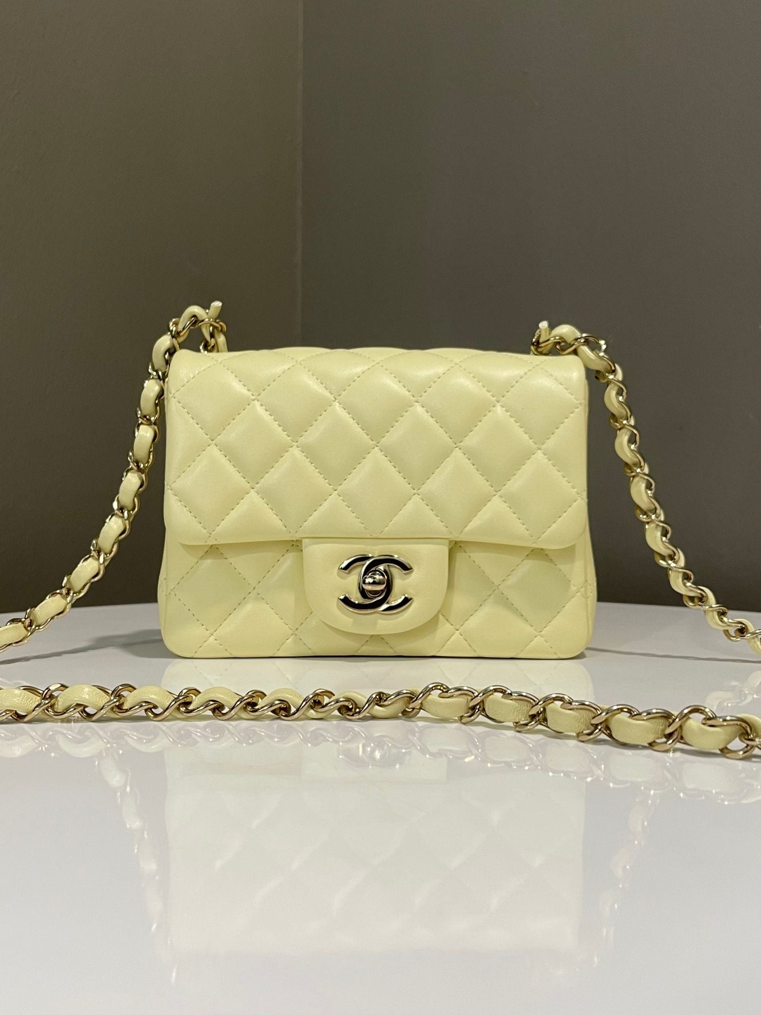 Chanel Classic Quilted Mini Square Pastel Yellow Lambskin