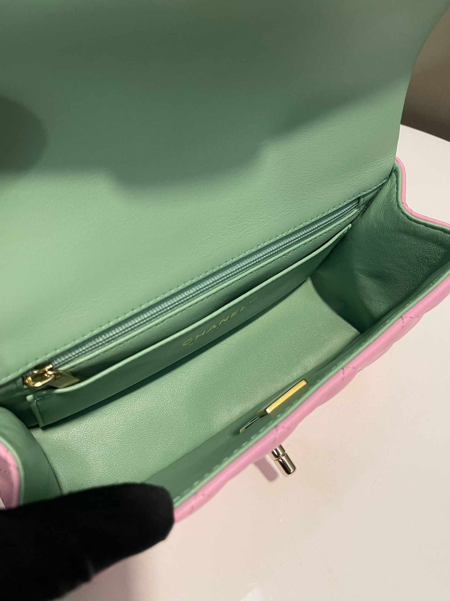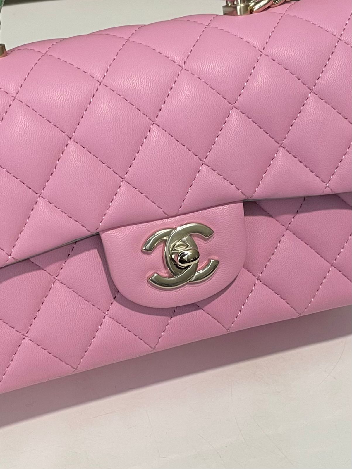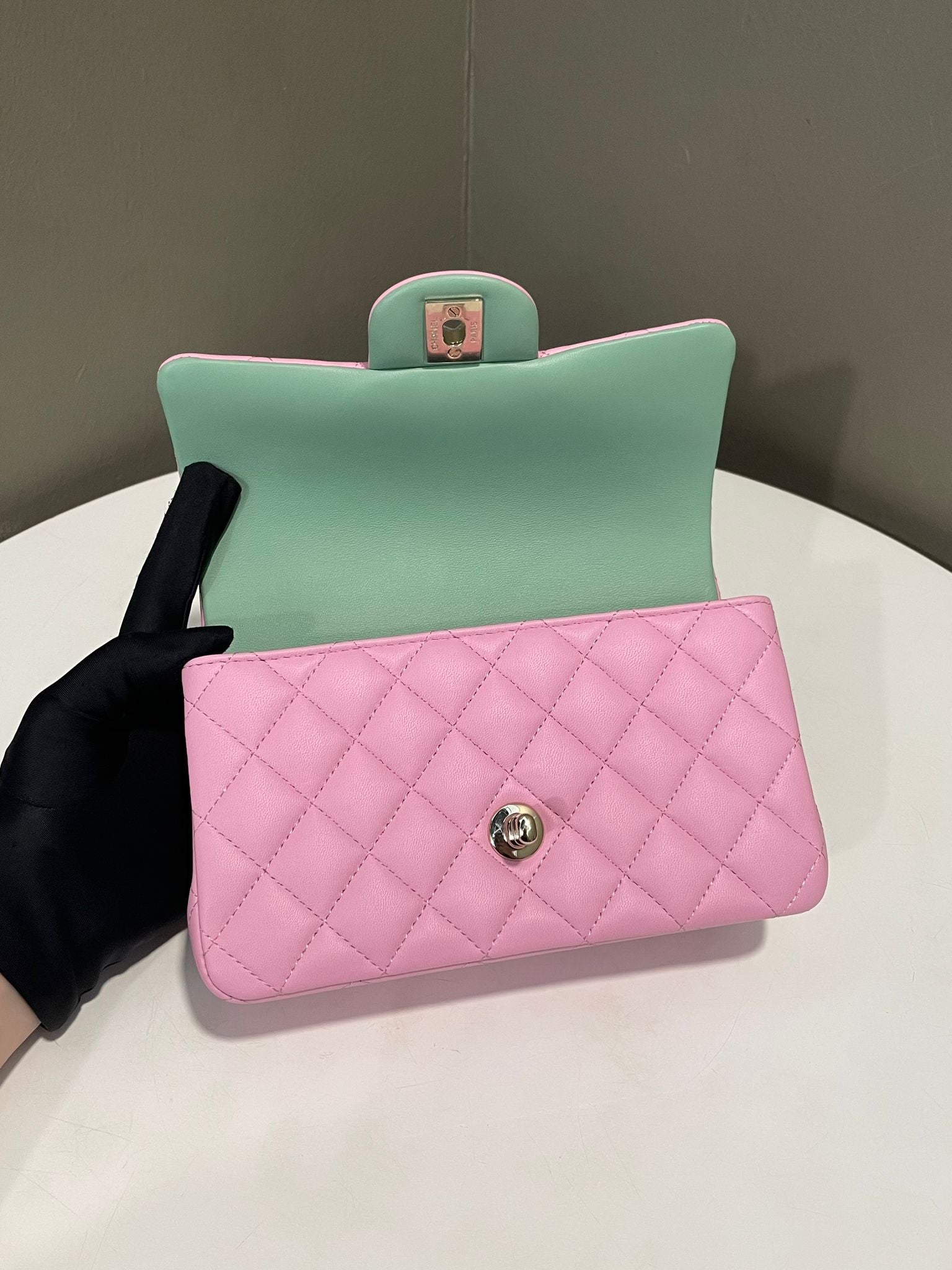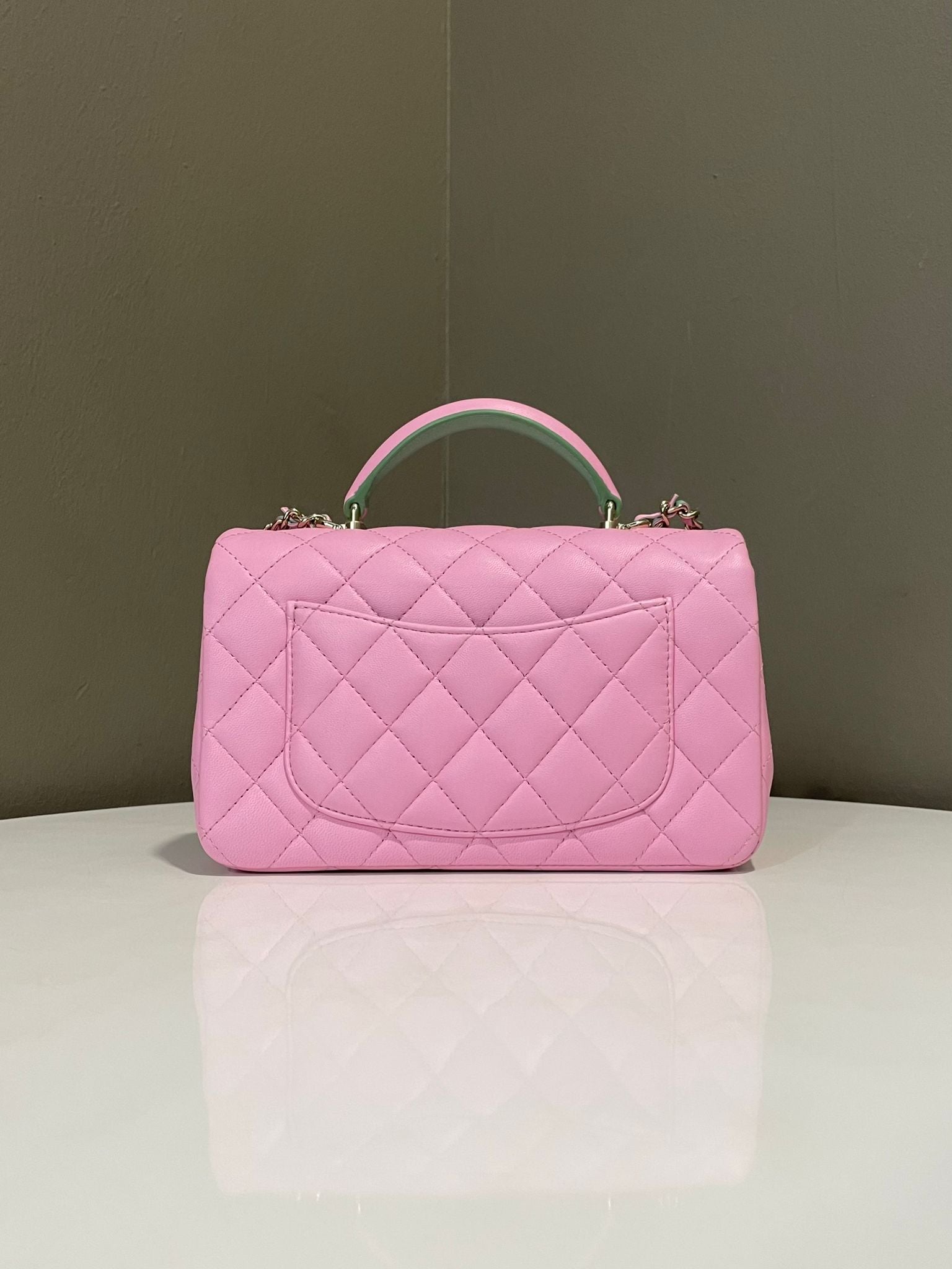 Chanel Quilted Top Handle Mini Rectangular Pink / Green Lambskin