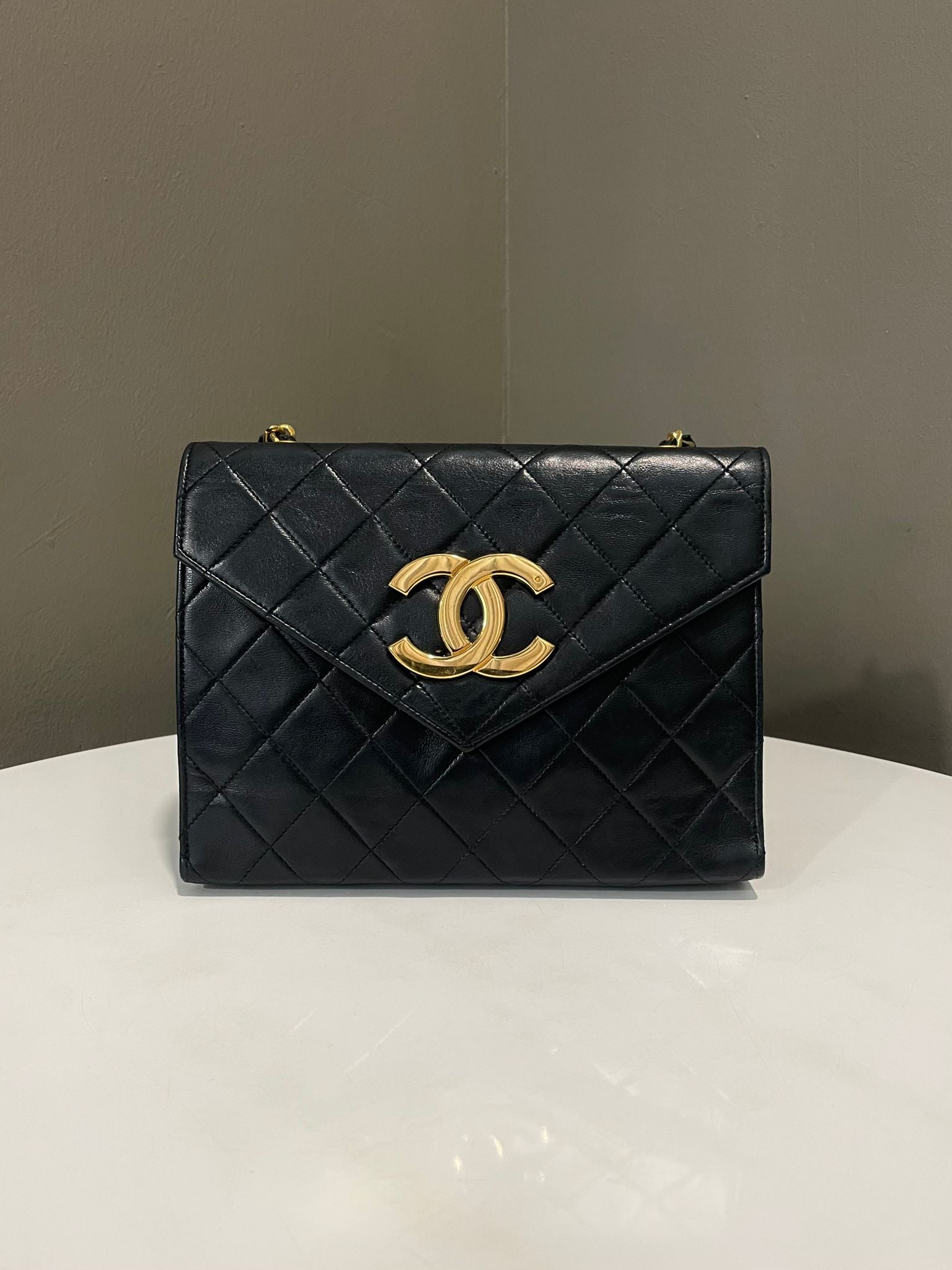 Chanel Vintage Cc Envelope Flap Black Lambskin