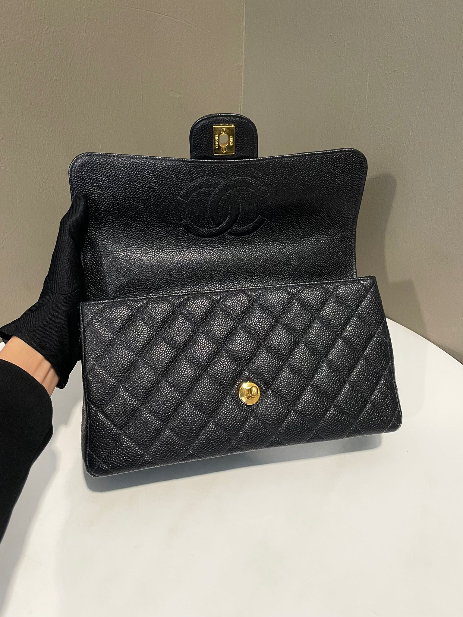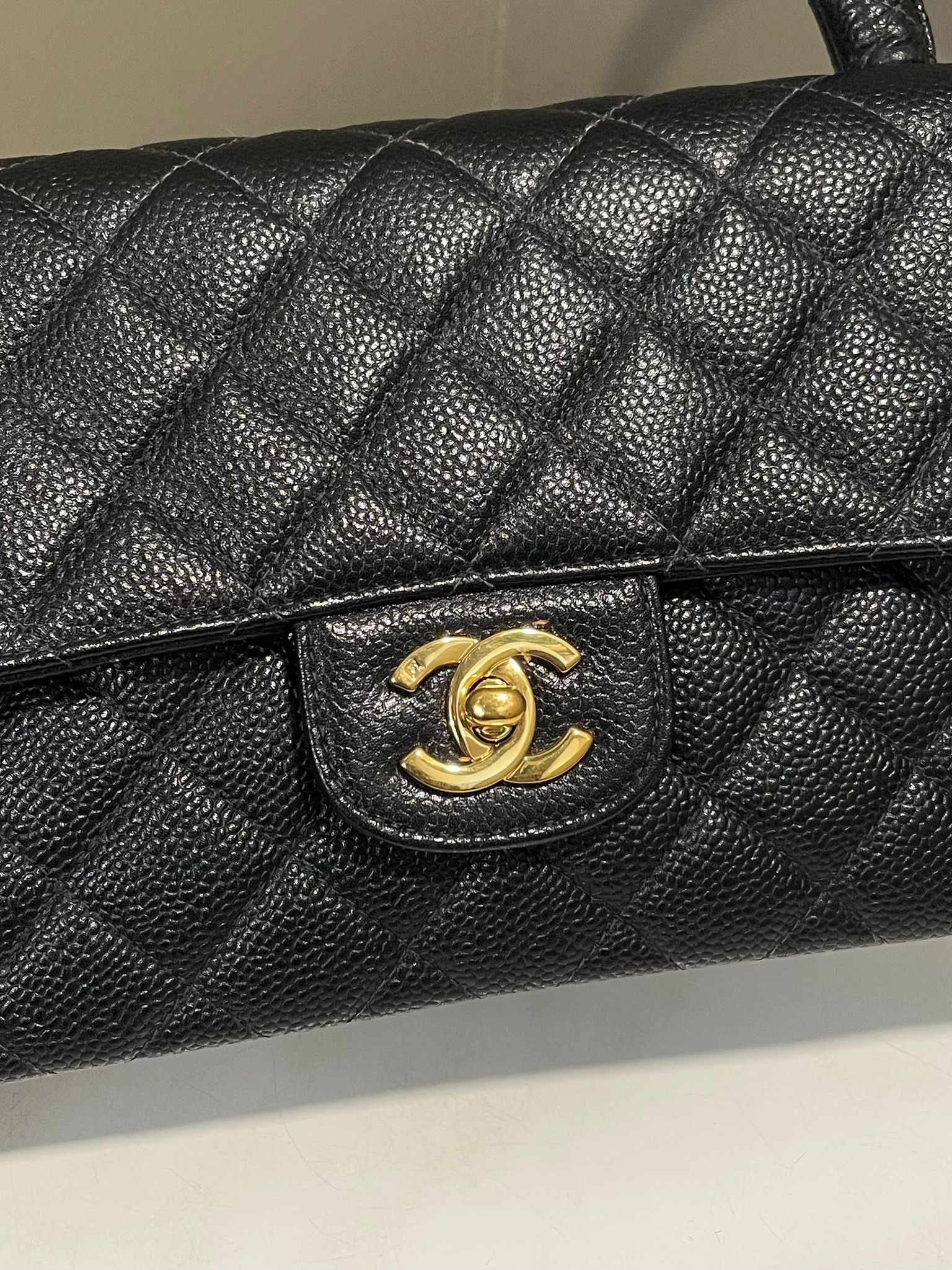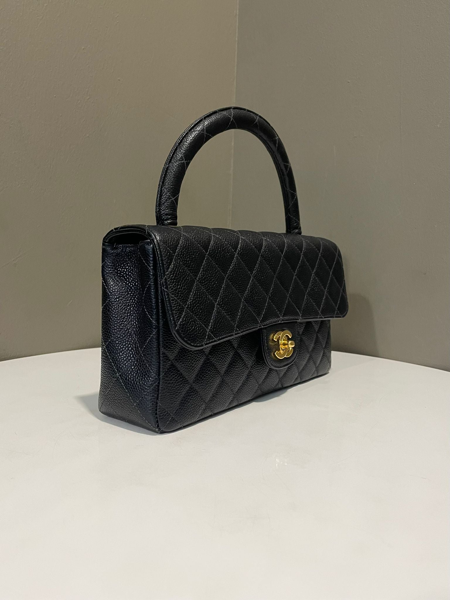 Chanel Vintage Cc Top Handle Kelly Bag Black Caviar