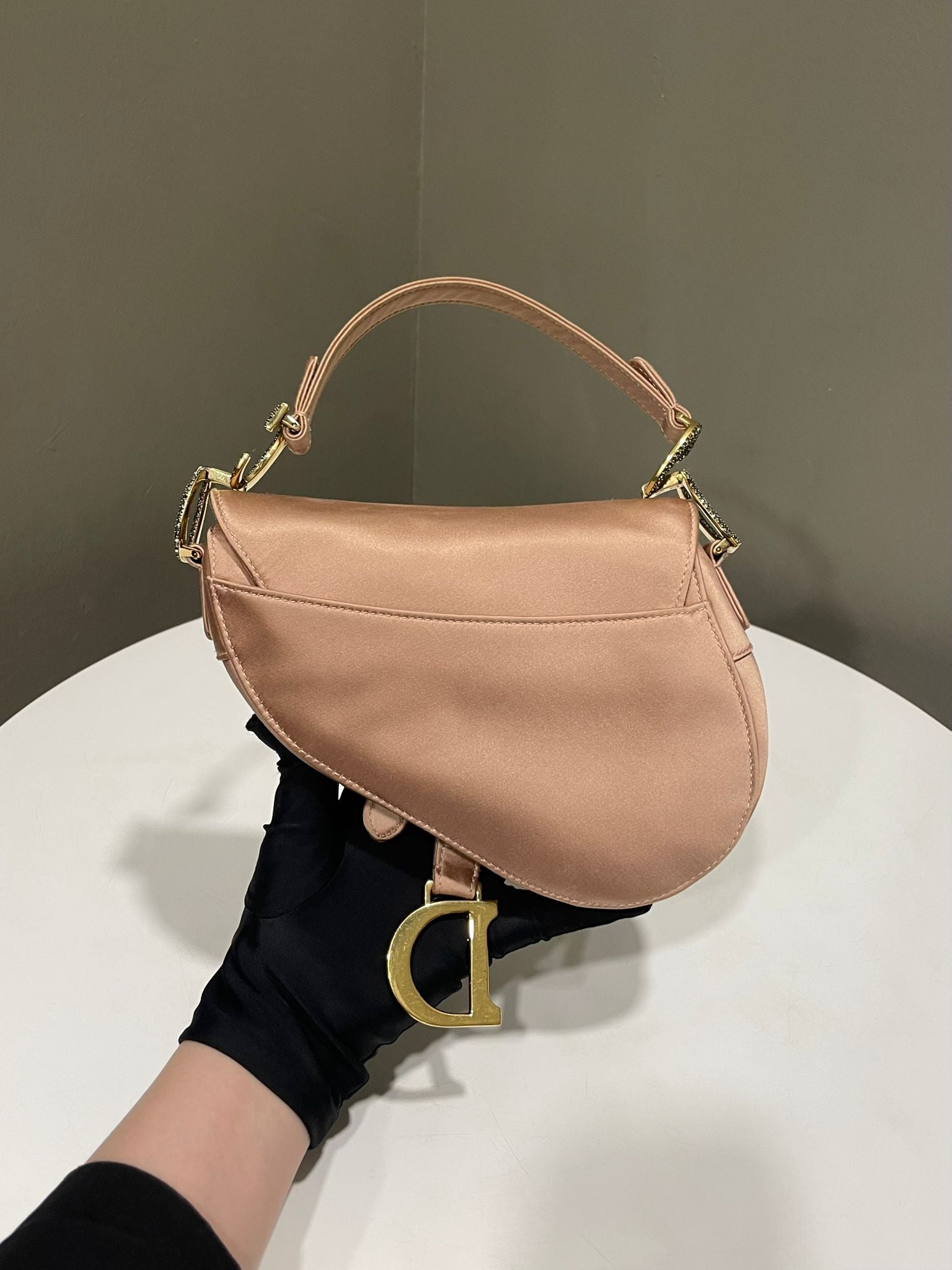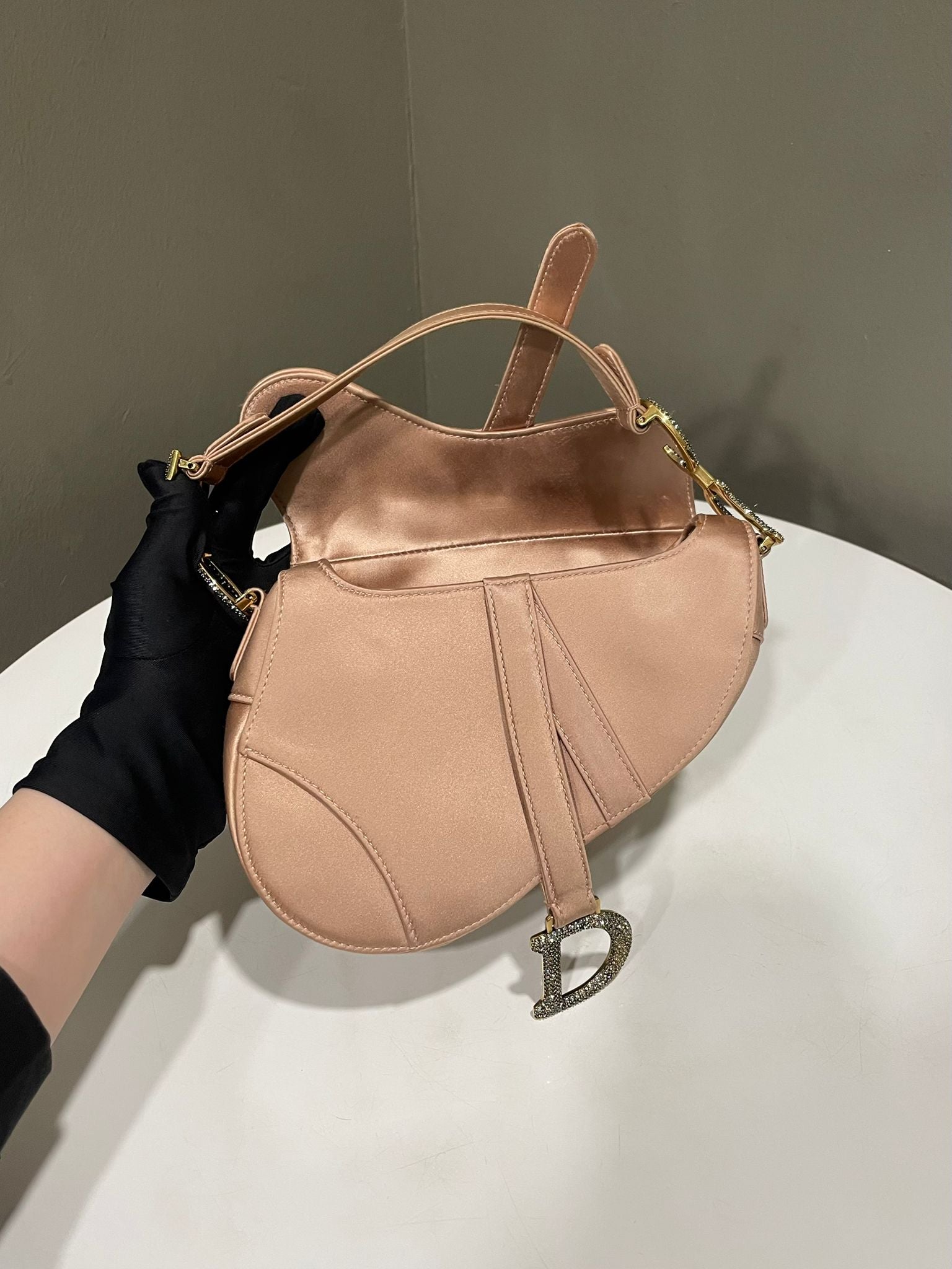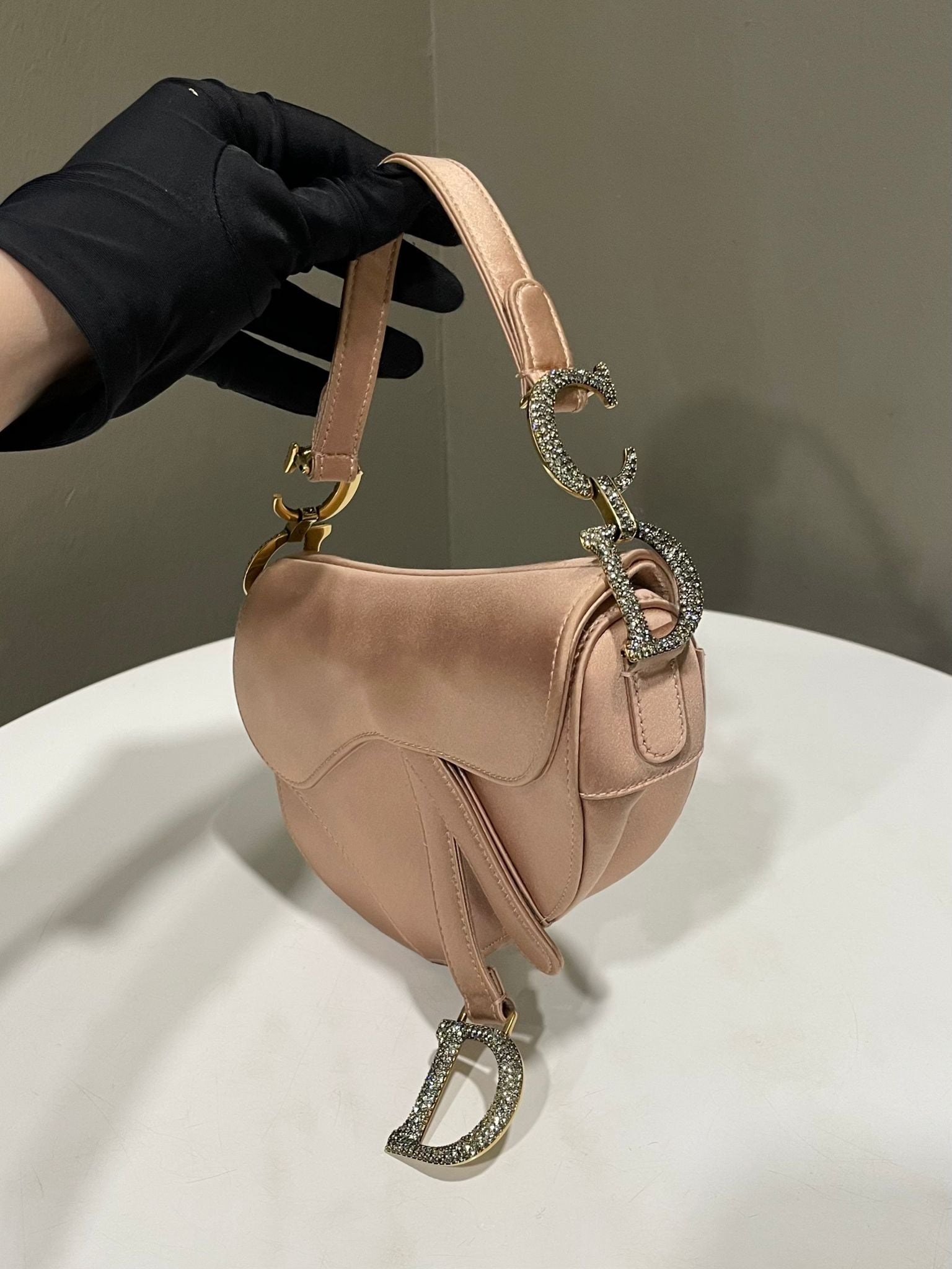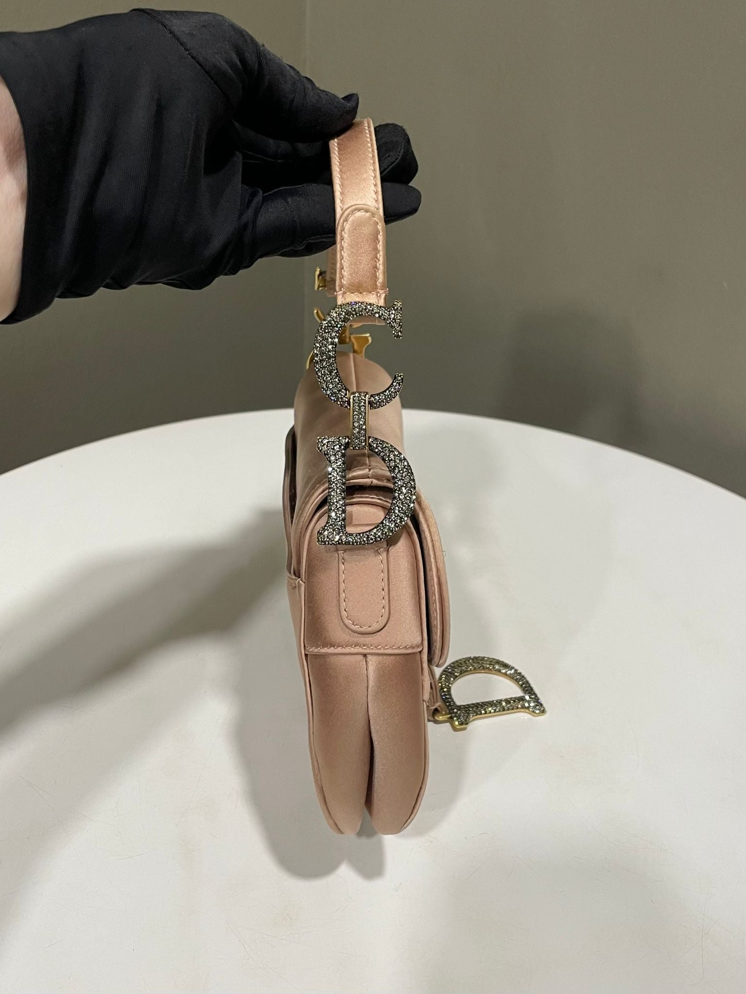 Dior Saddle Bag Pink Satin Crystal Embellished