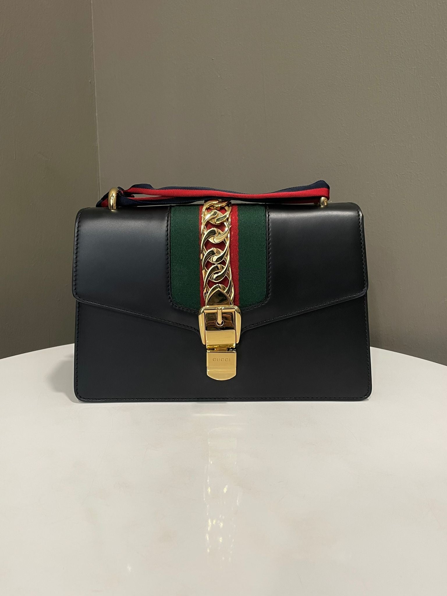 Gucci Sylvie Bag Black / Green / Red Calfskin
