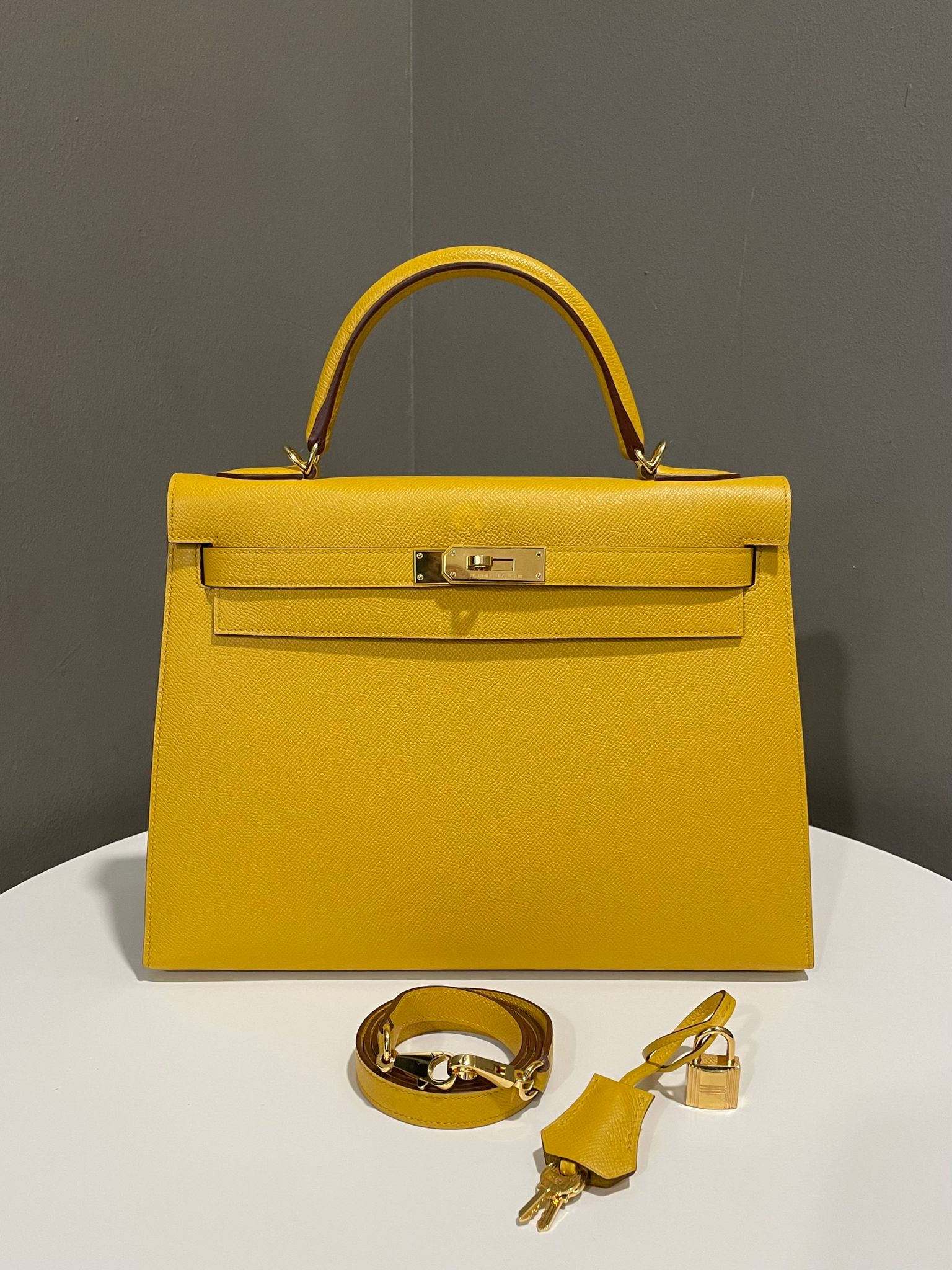 Hermes Kelly Sellier 32 Jaune Amber Epsom