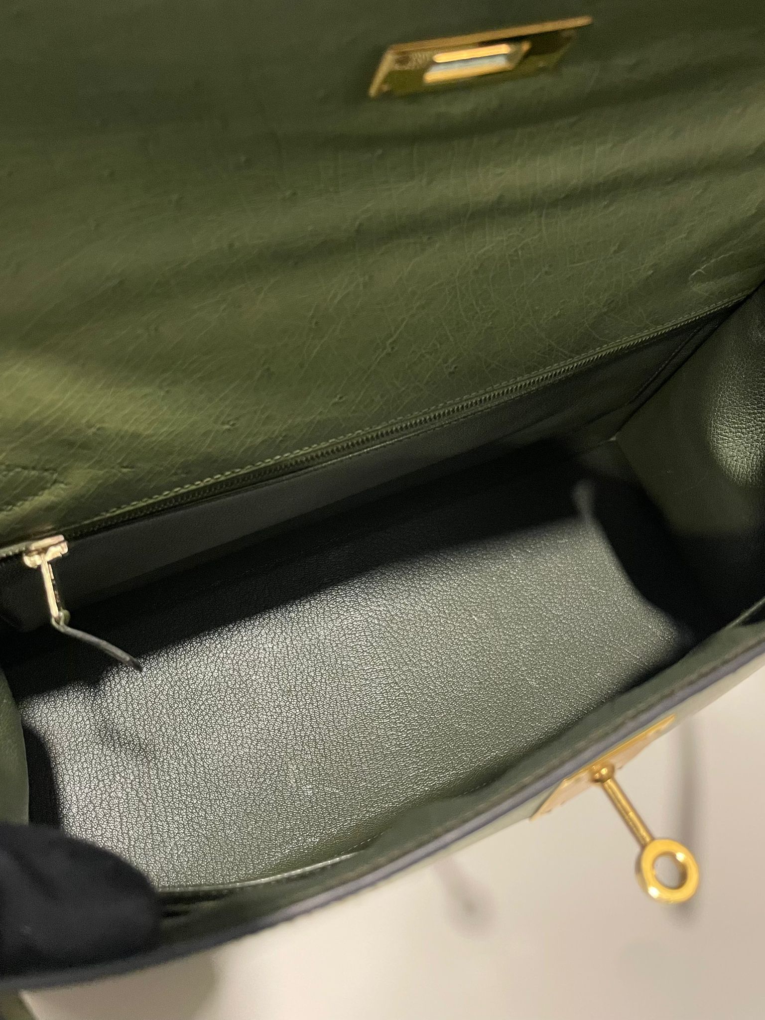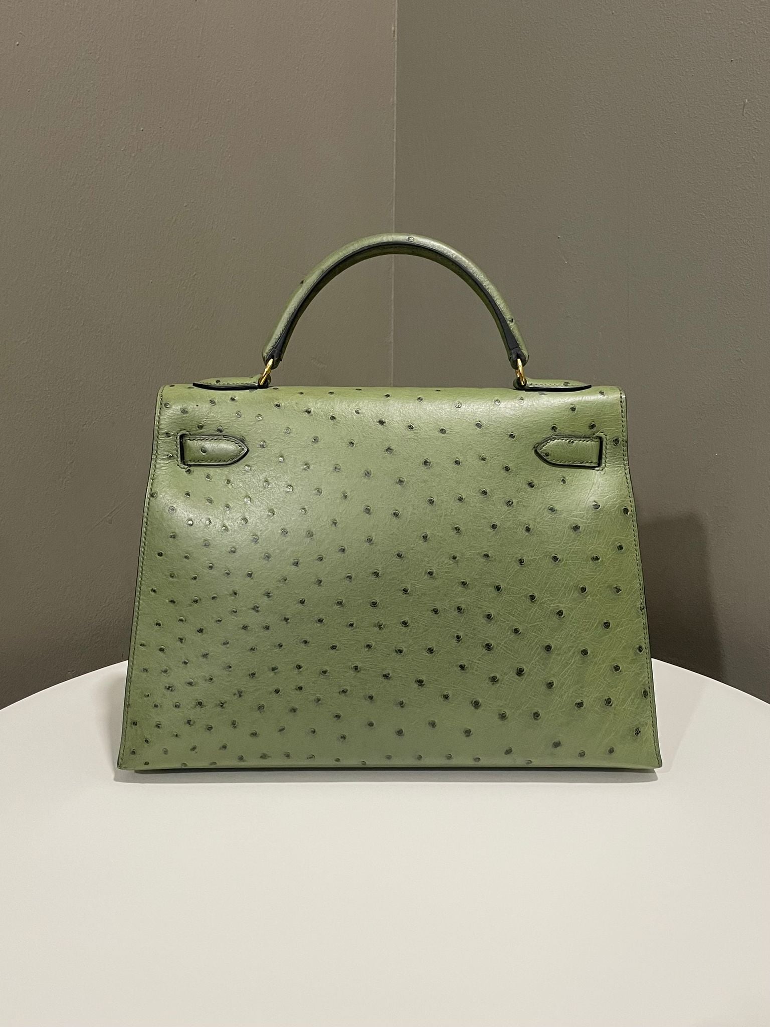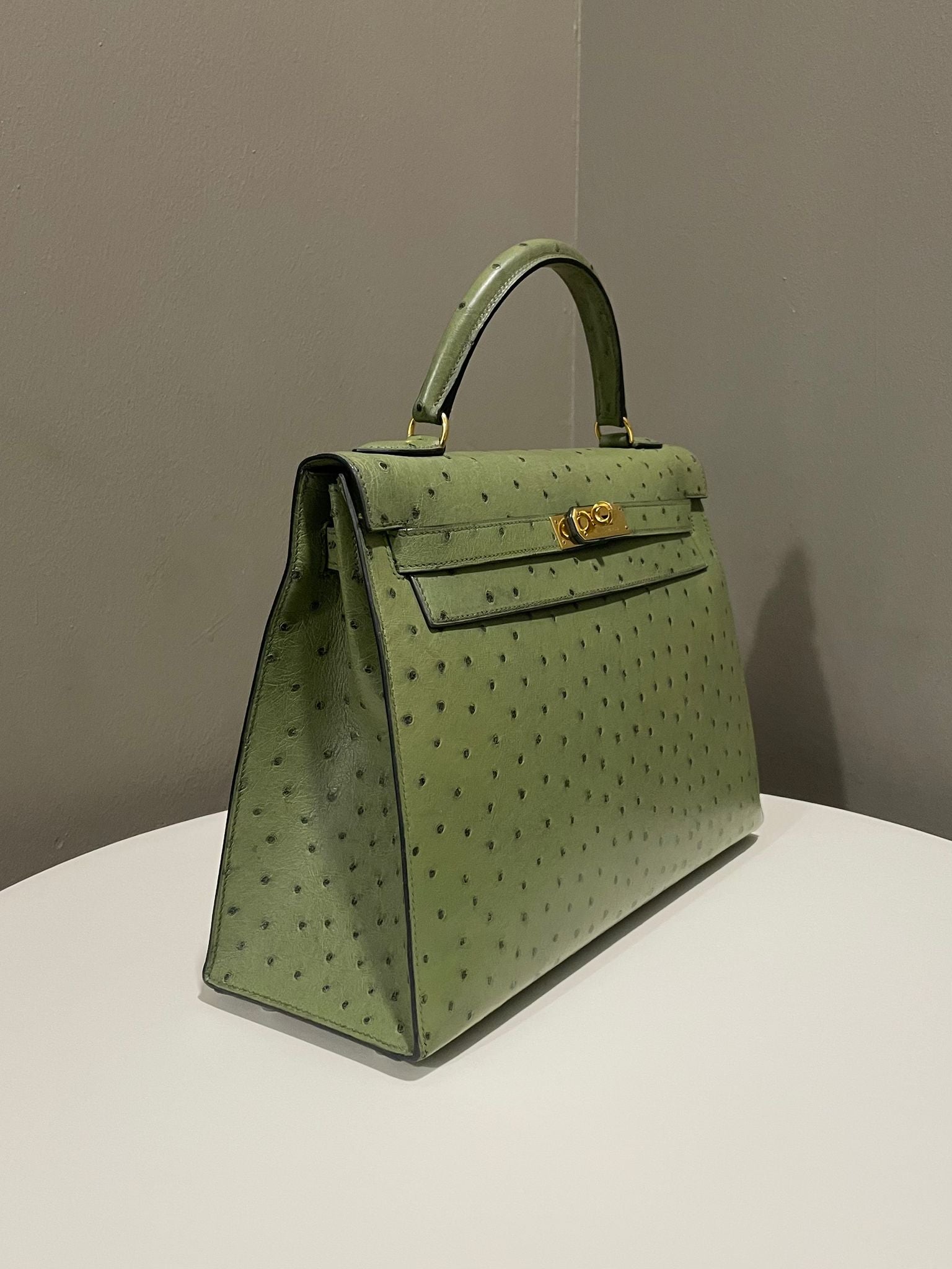 Hermes Vintage Kelly Sellier 32 Vert Olive Ostrich