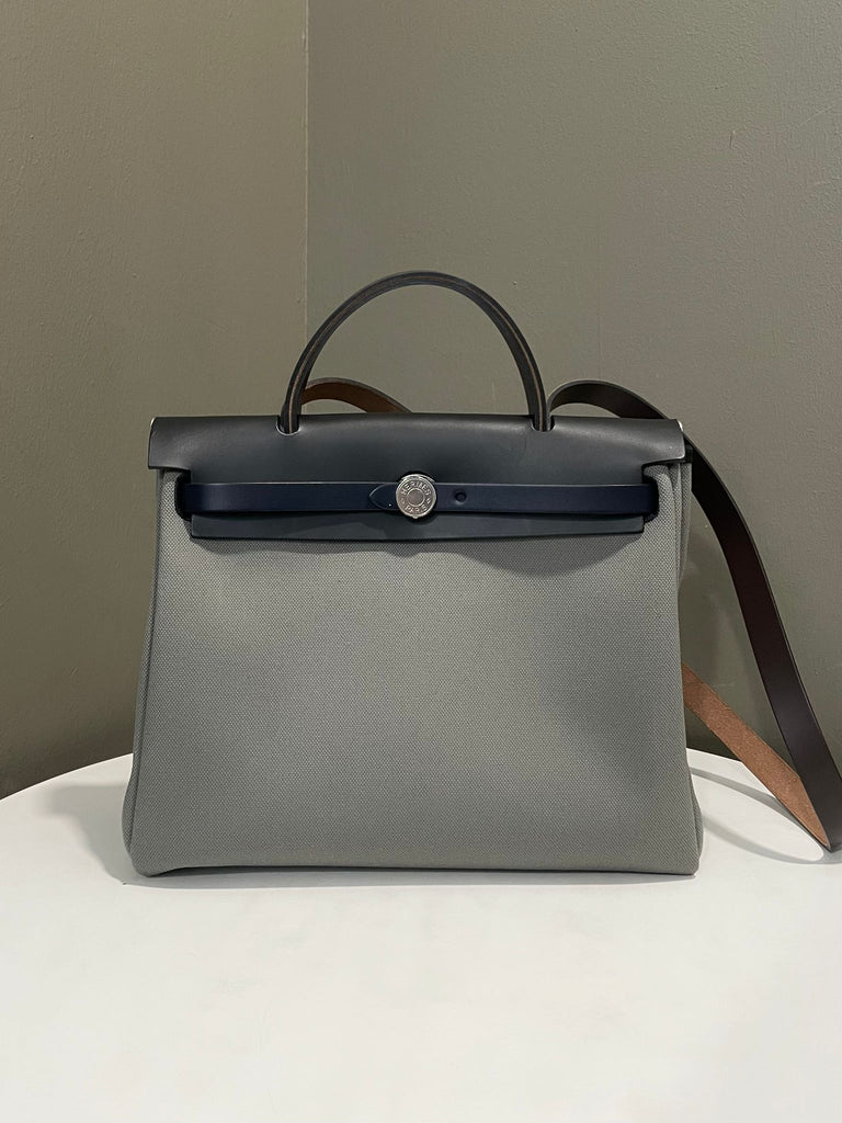 Hermes Herbag Zip 31 Gris Fume/ Ebene/ Noir/ Bl Indigo