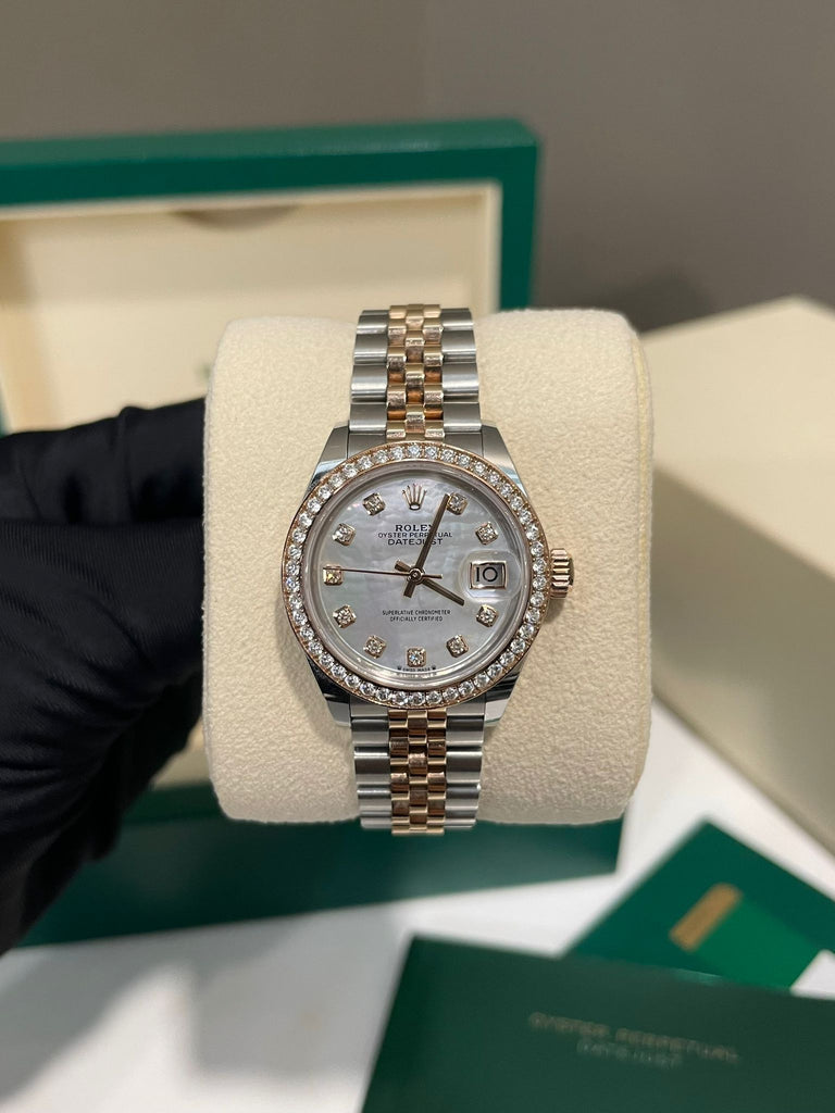 Rolex Oyster Lady Datejust 28 Watch White Mother of Pearl 18K Everose Gold