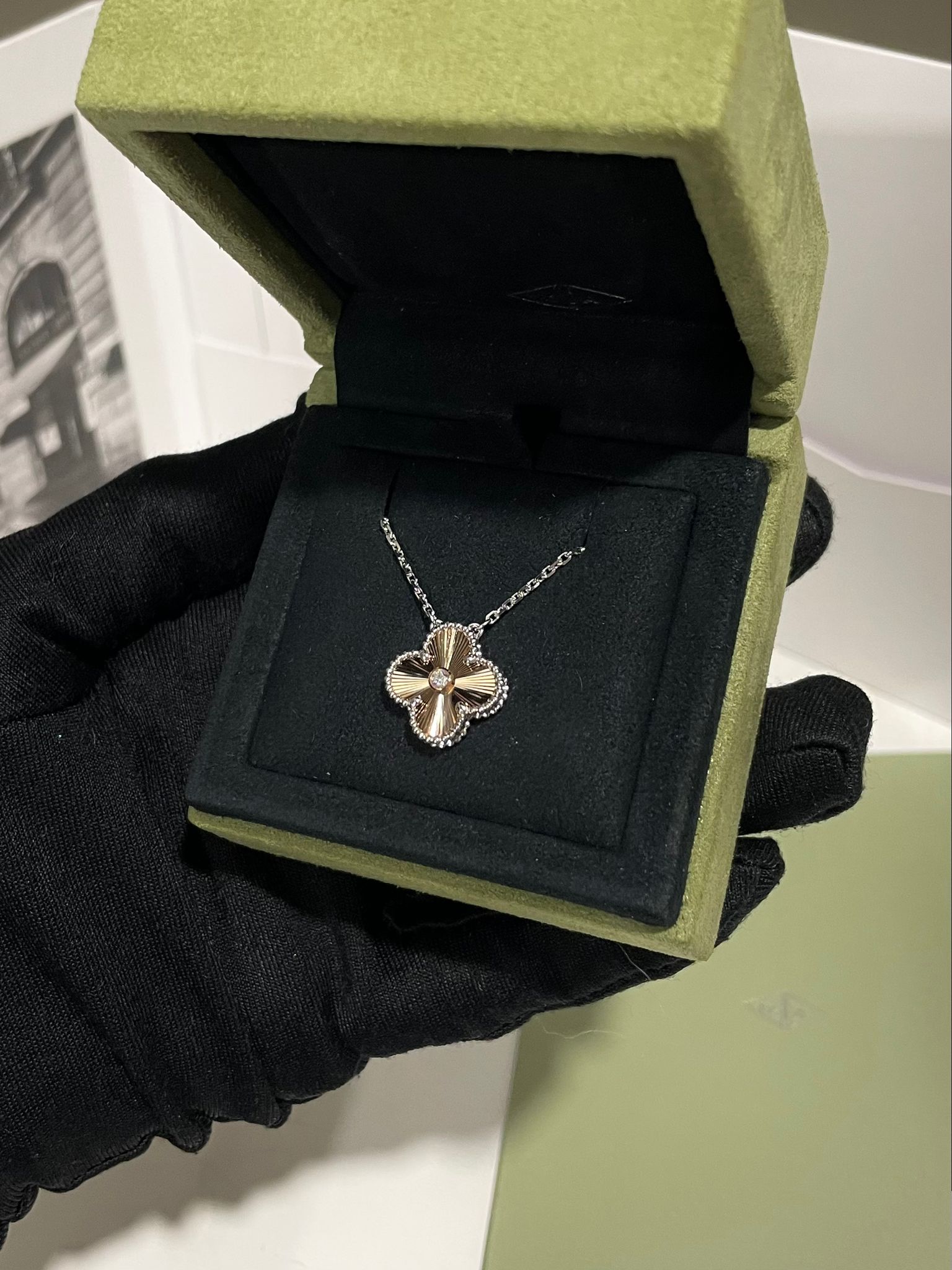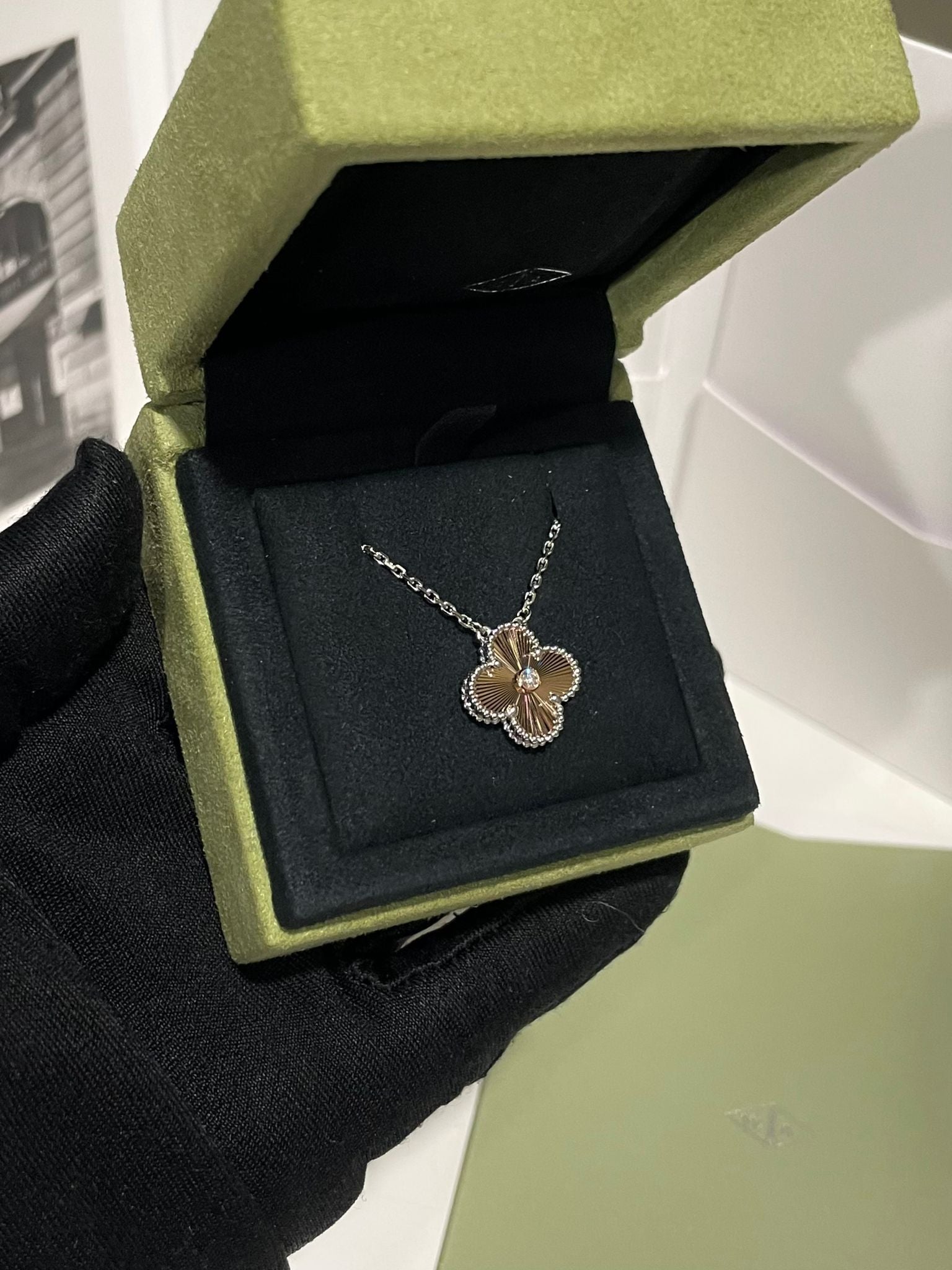 Van Cleef & Arpels Holiday Alhambra Necklace Guilloche 18K Rose Gold White Gold