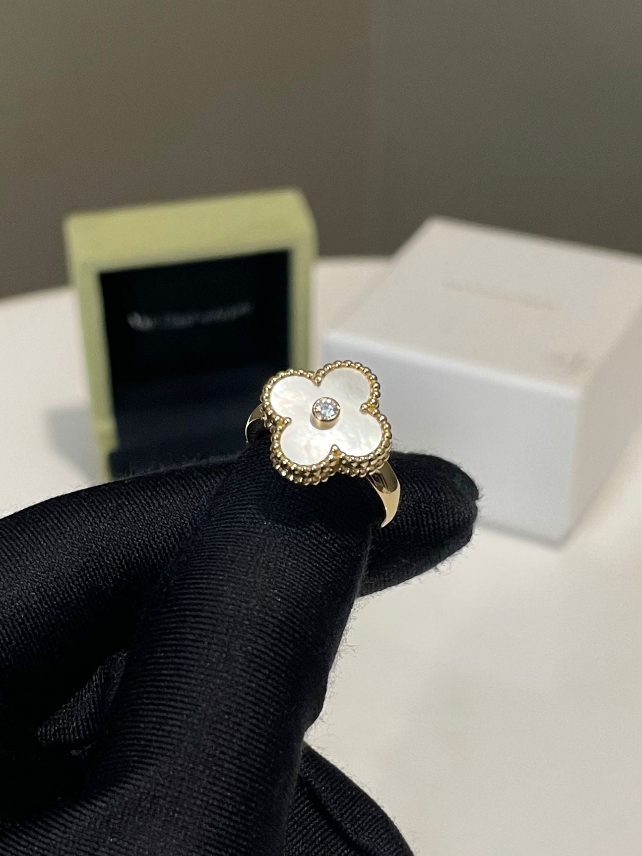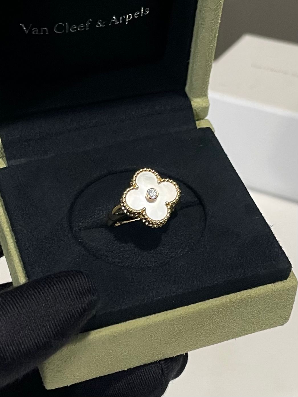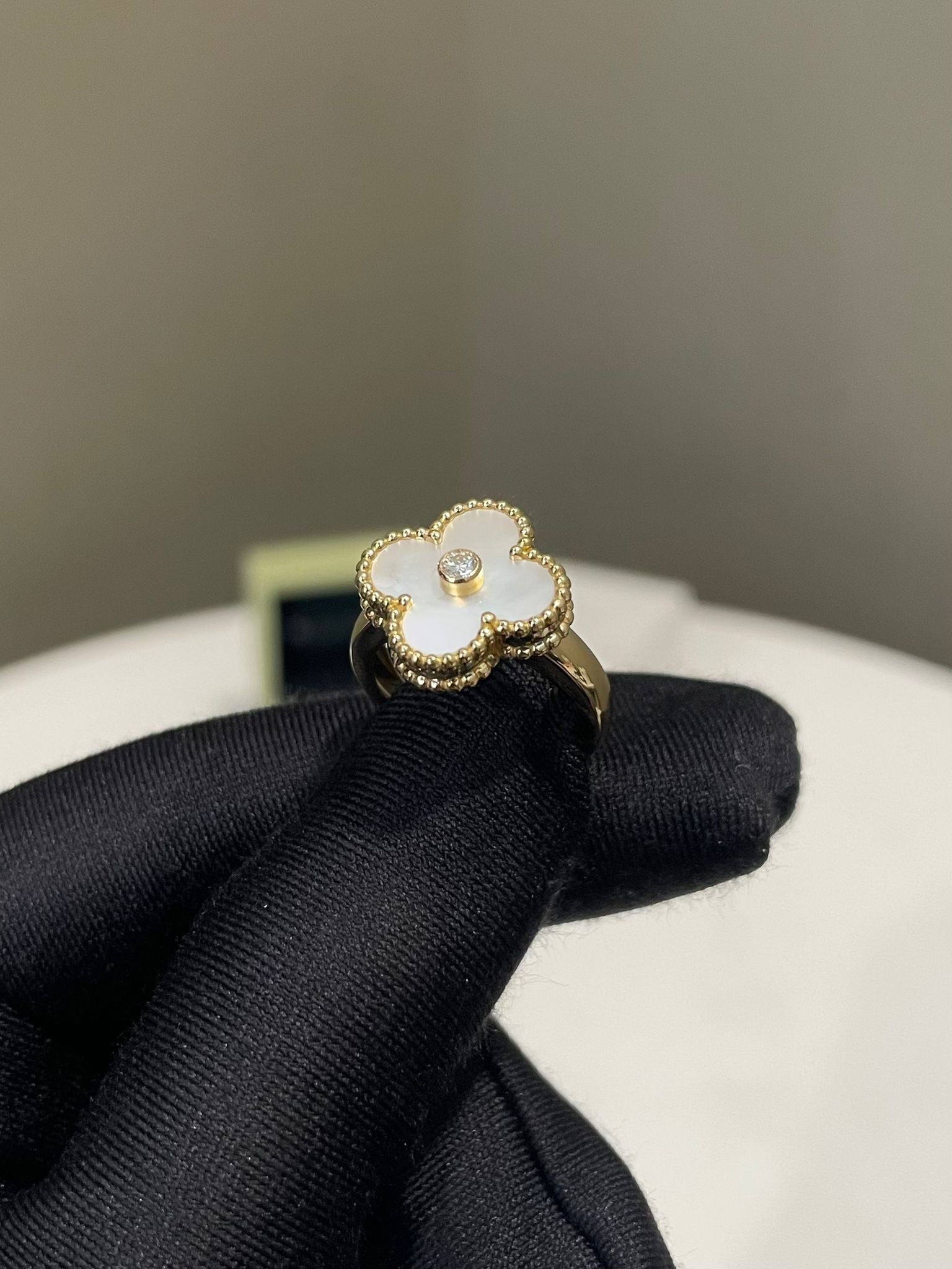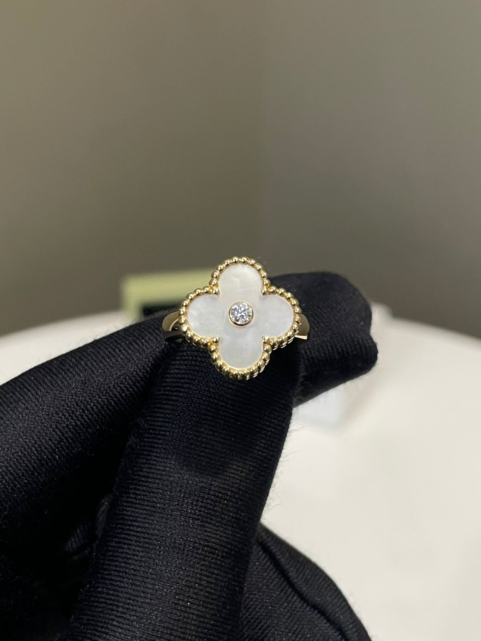 Van Cleef & Arpels Vintage Alhambra Ring White Mother of Pearl 18K Yellow Gold