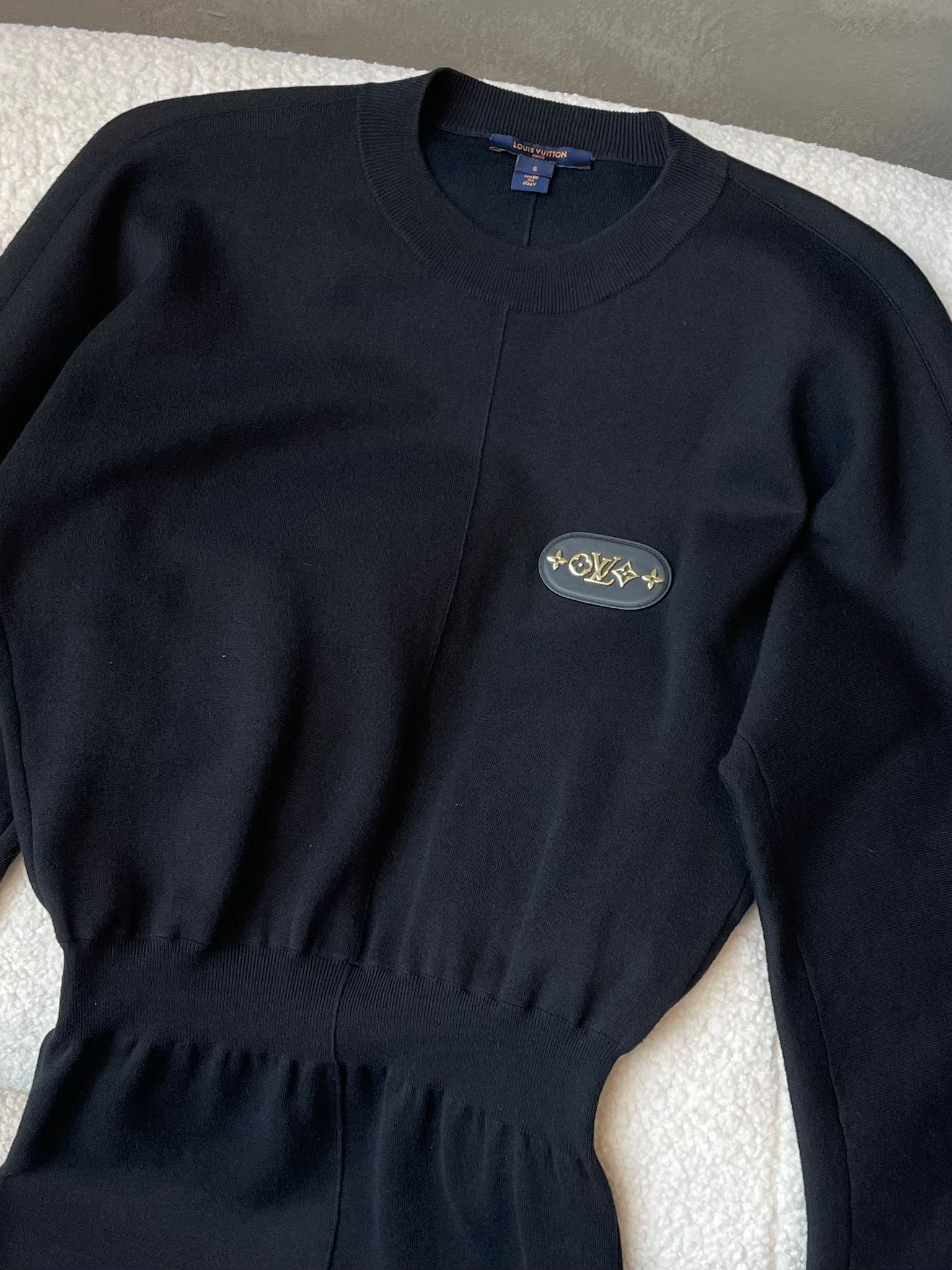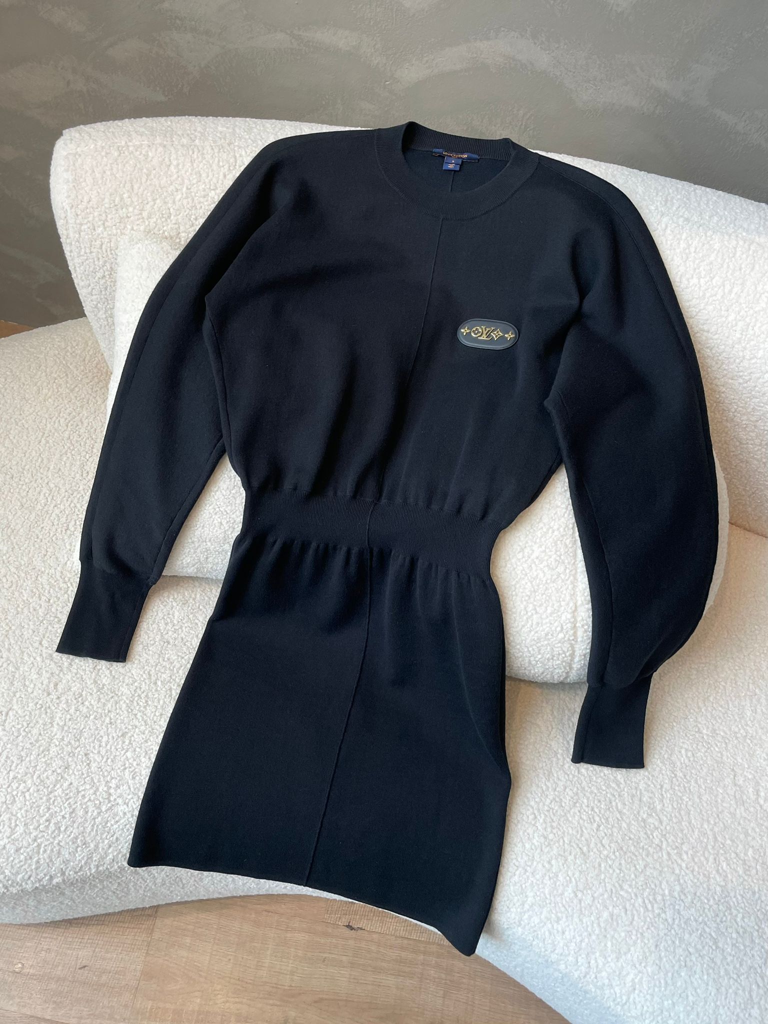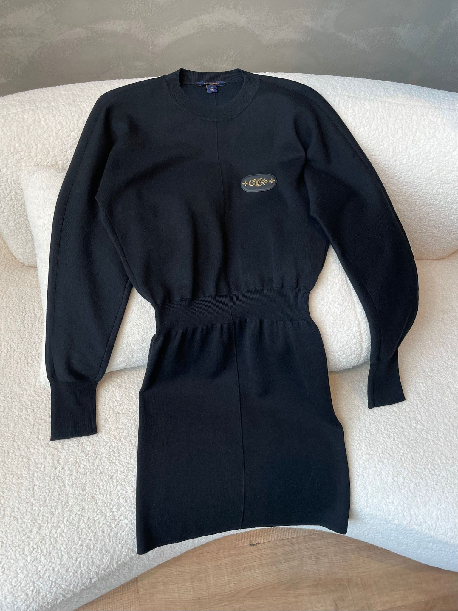 Louis Vuitton Long Sleeve Knitted Dress Black Mix Cotton