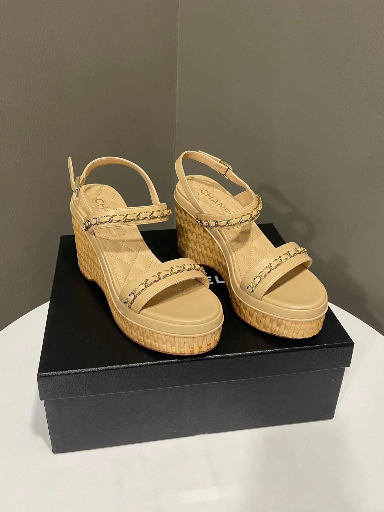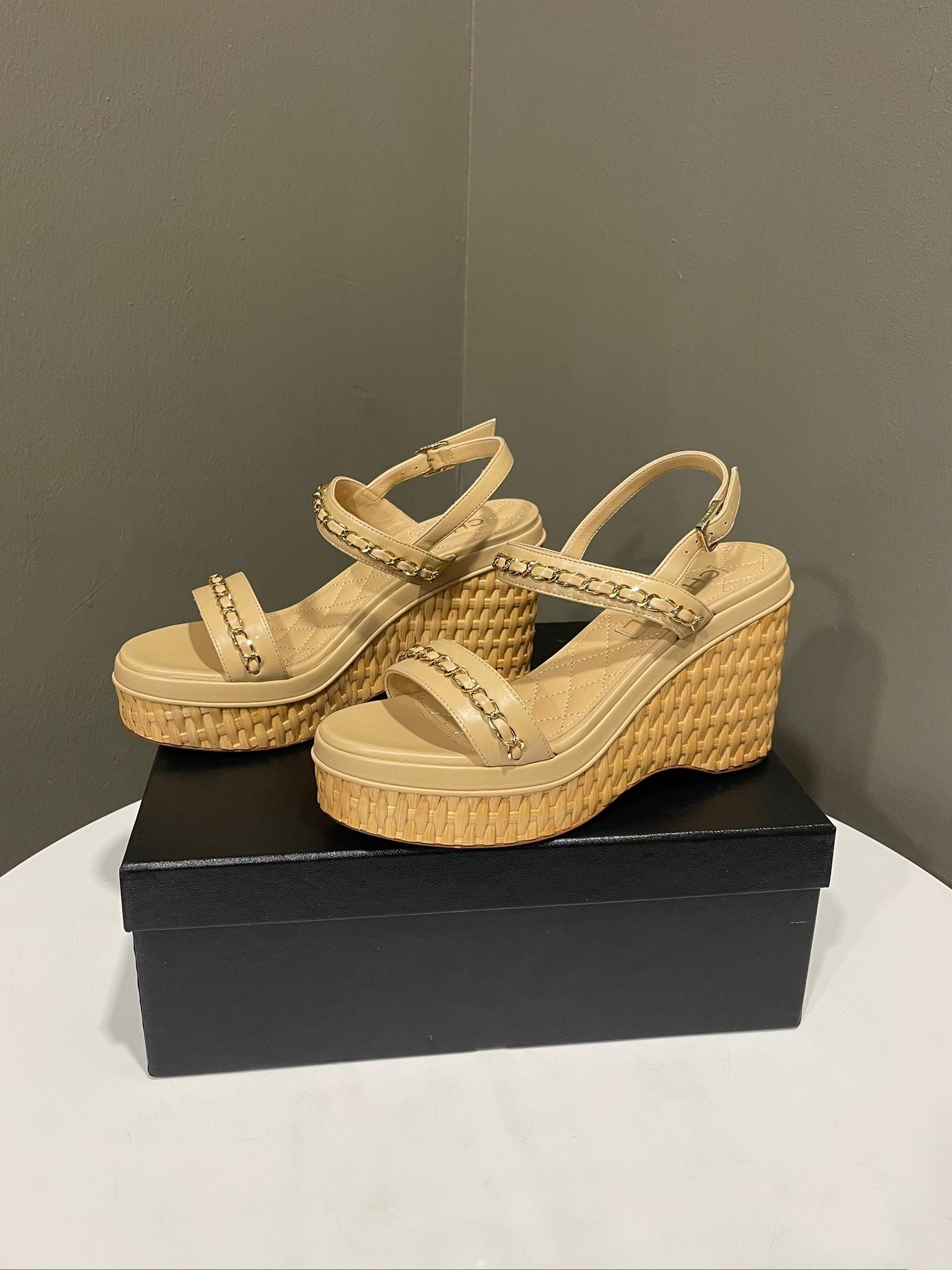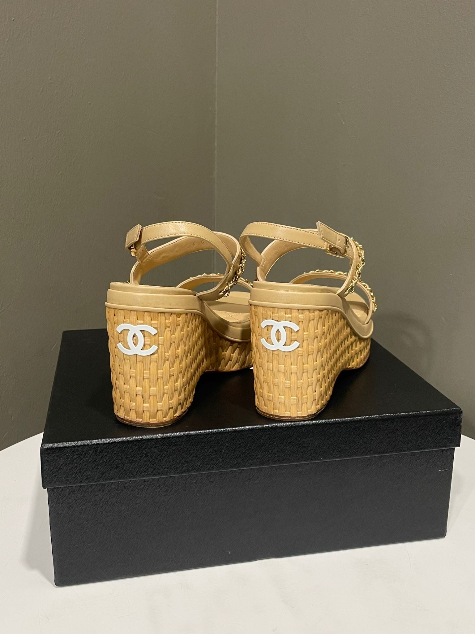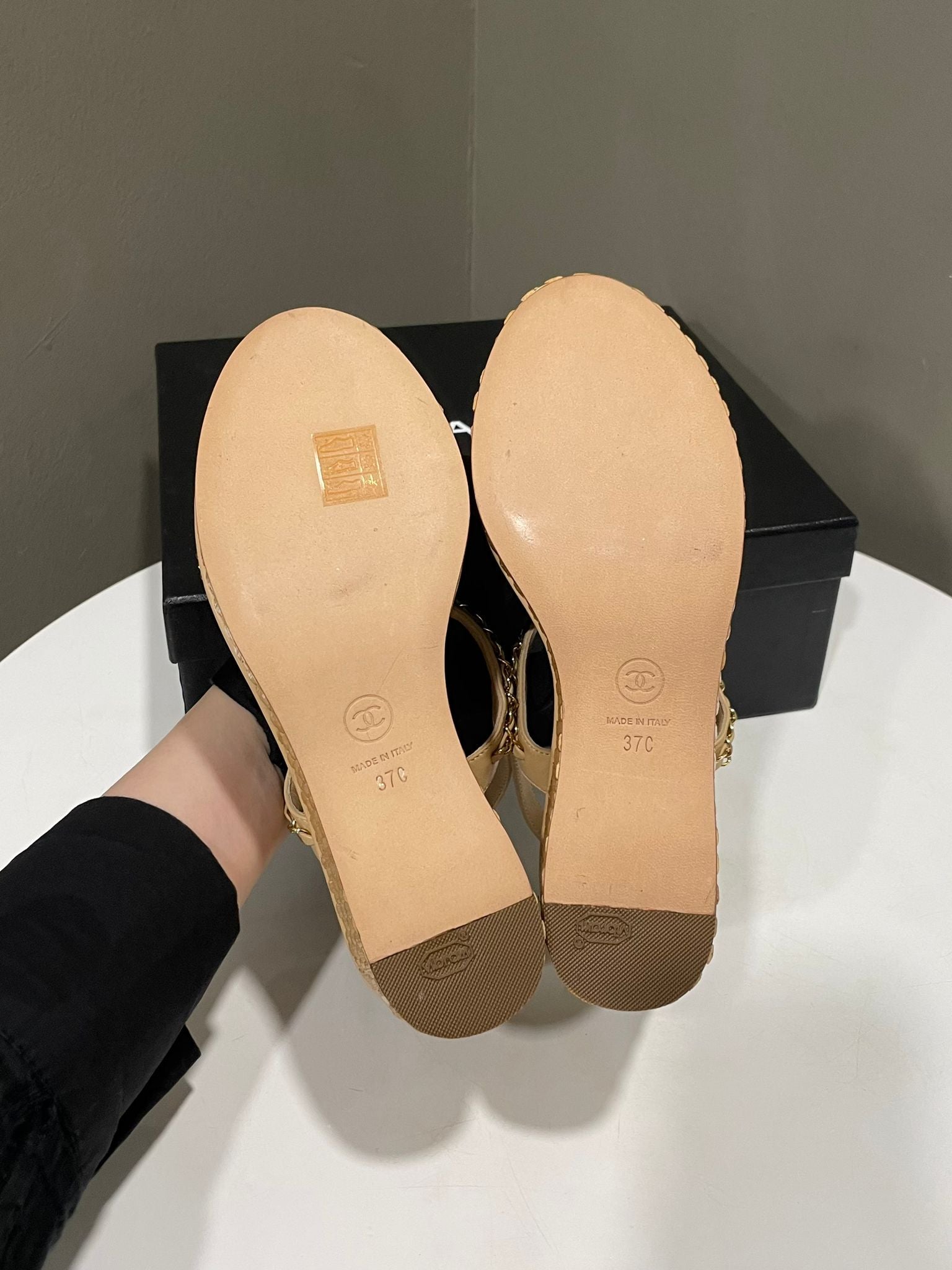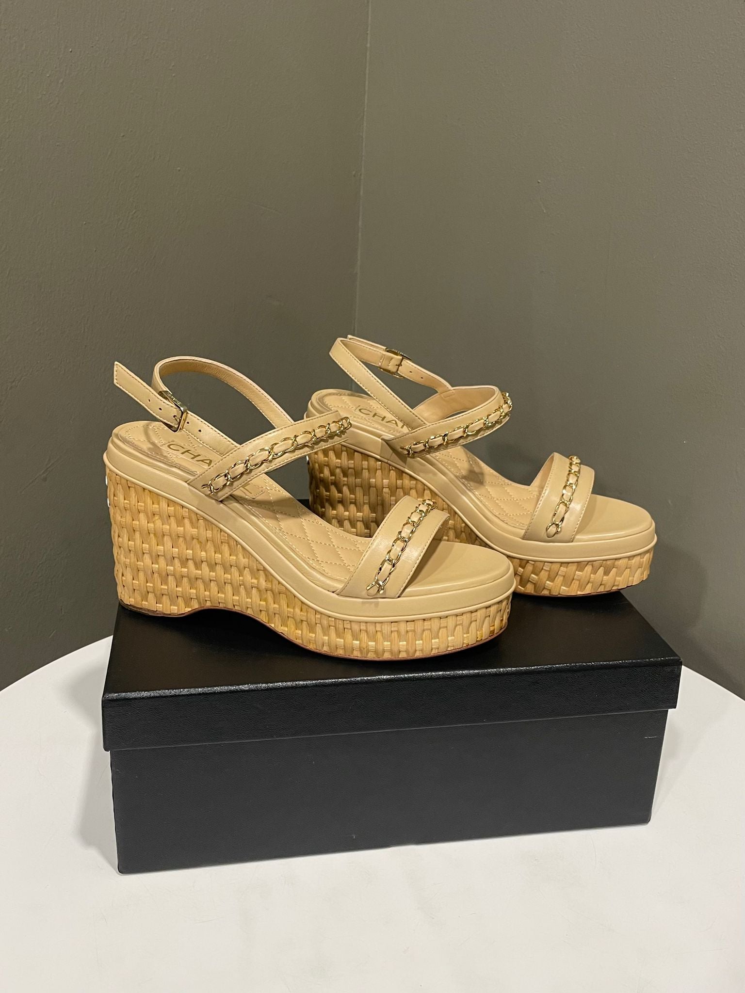 Chanel 20C Cc Chain Wedge Beige Size 37C