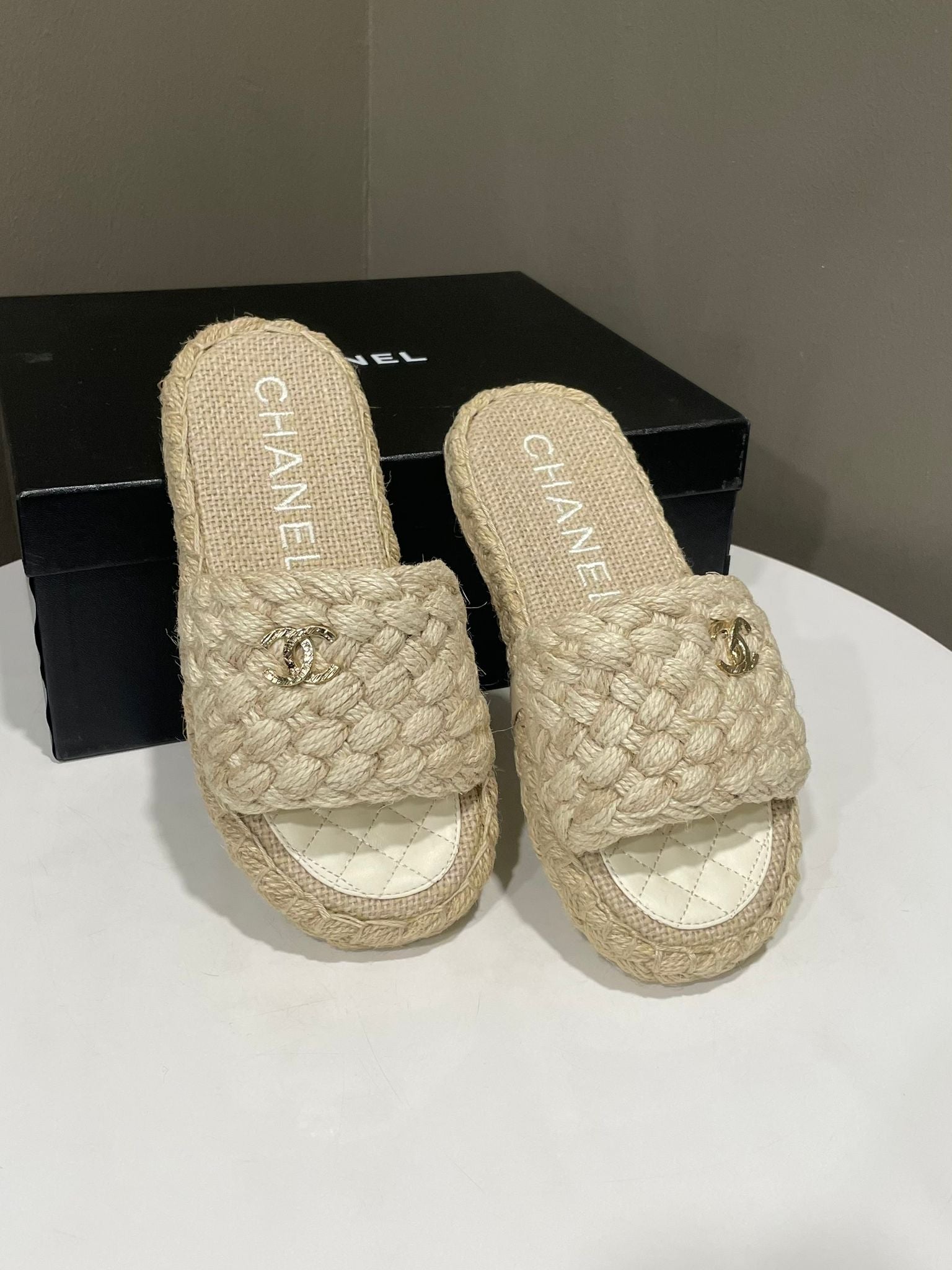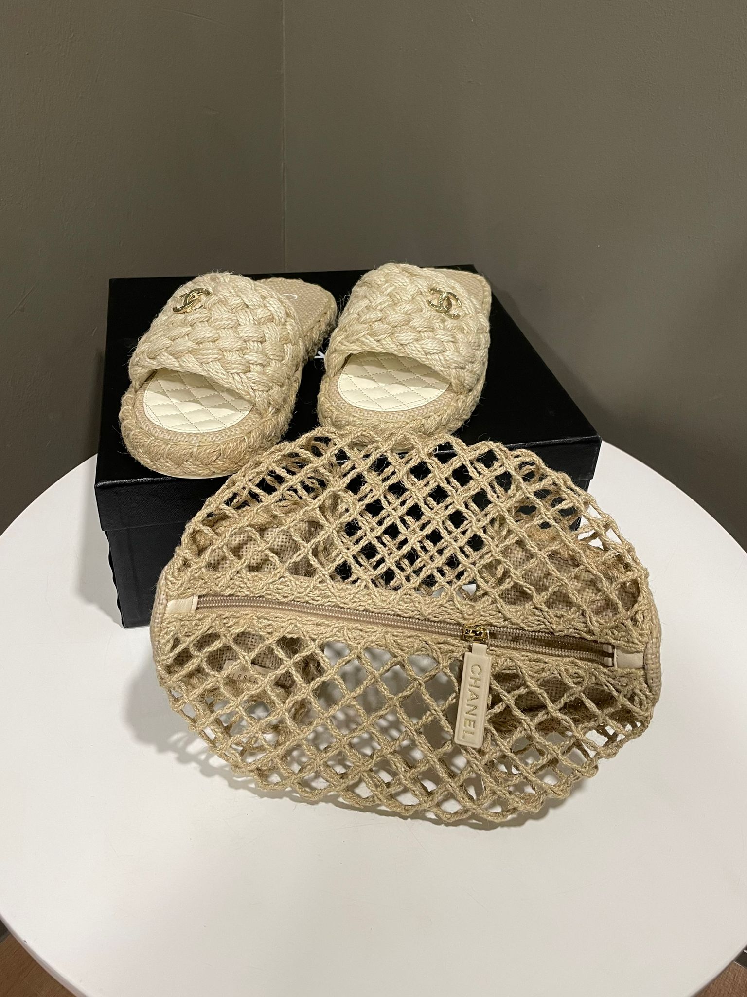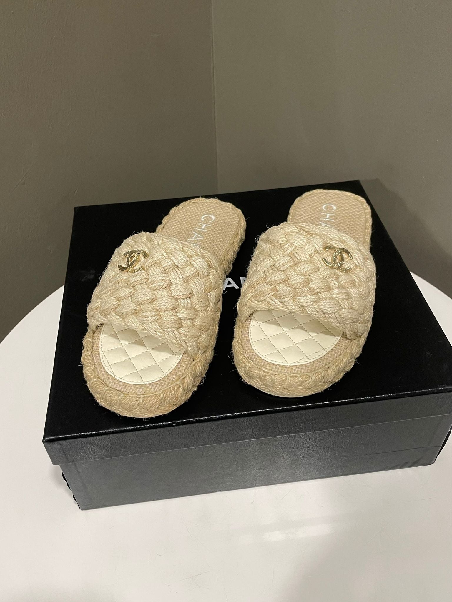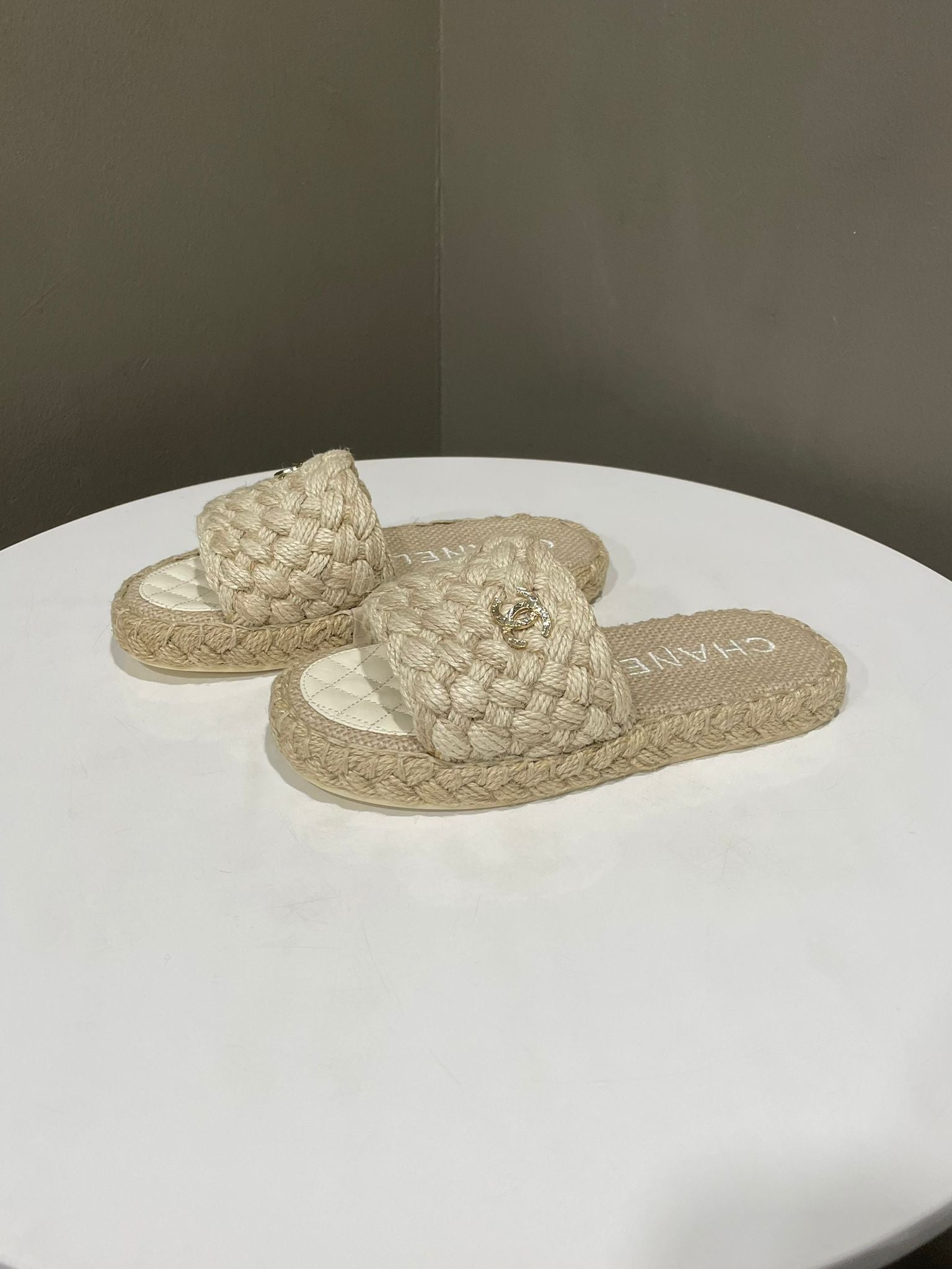 Chanel 22P Braided Cord Mules Beige Raffia Size 37