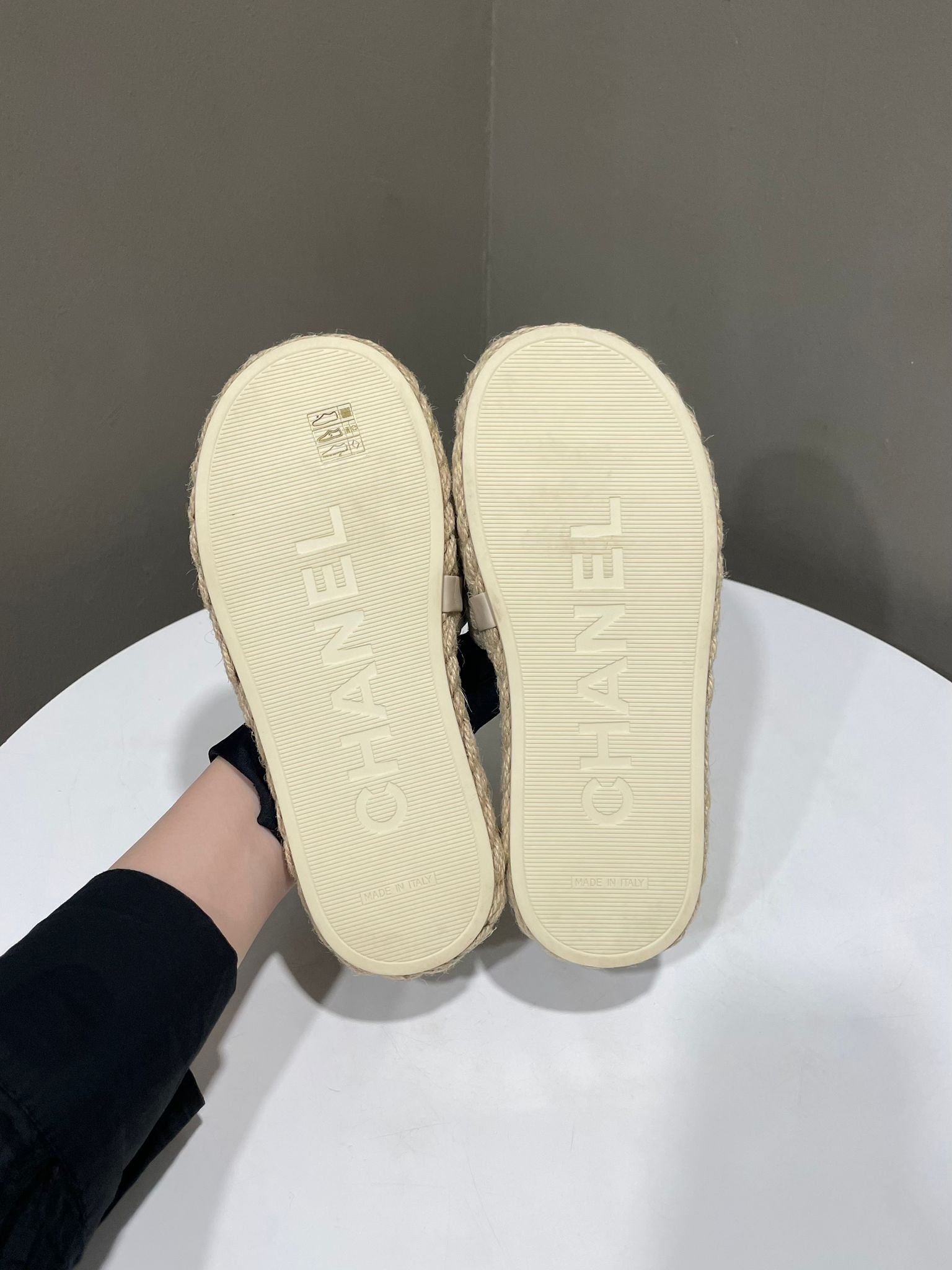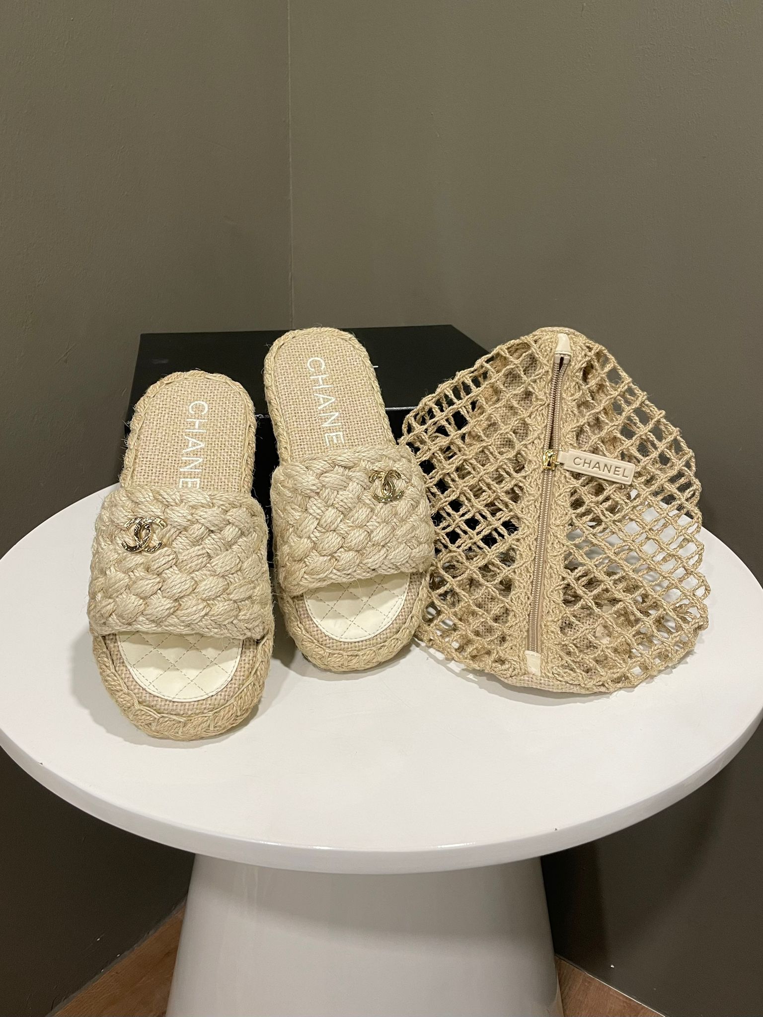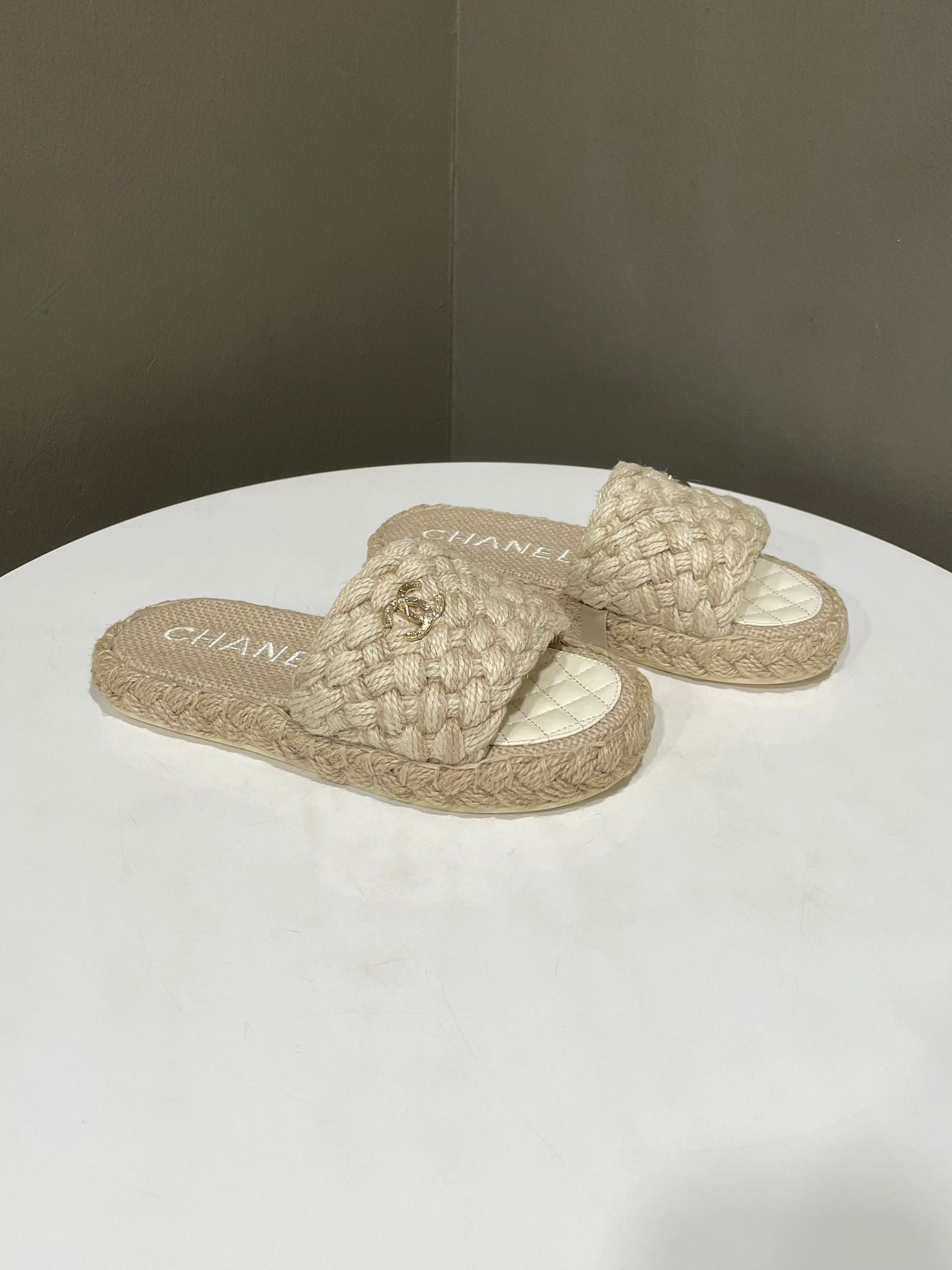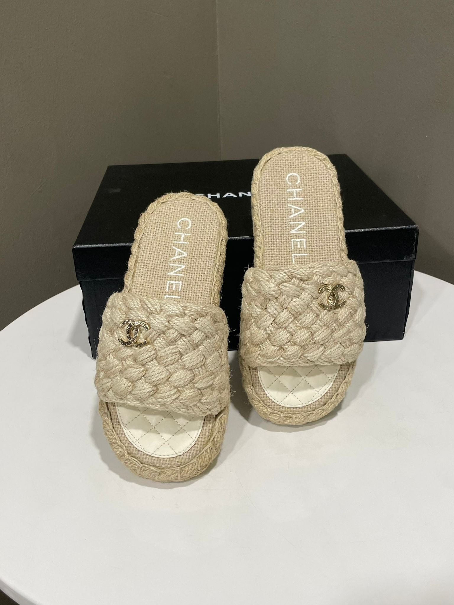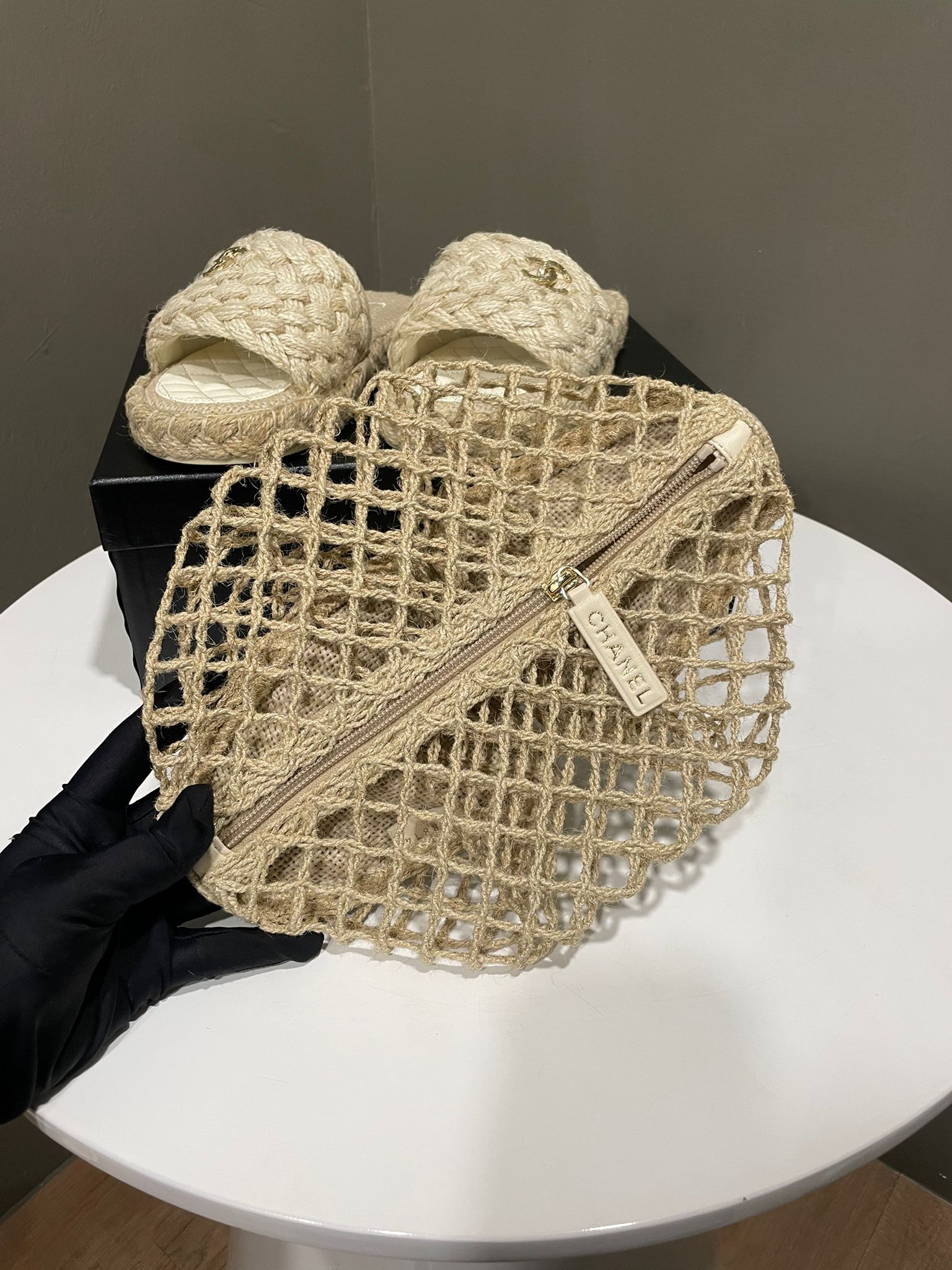 Chanel 22P Braided Cord Mules Beige Raffia Size 37