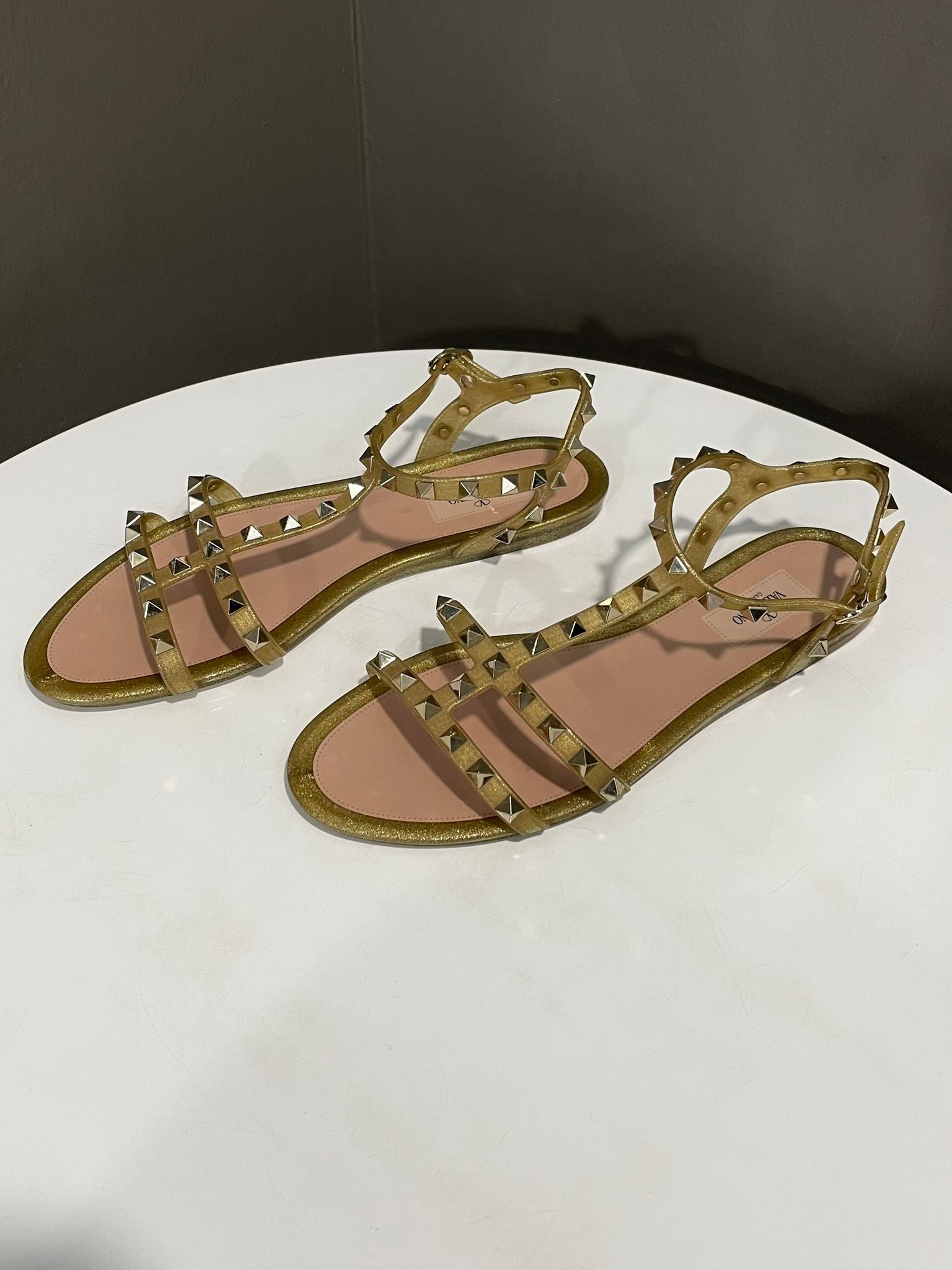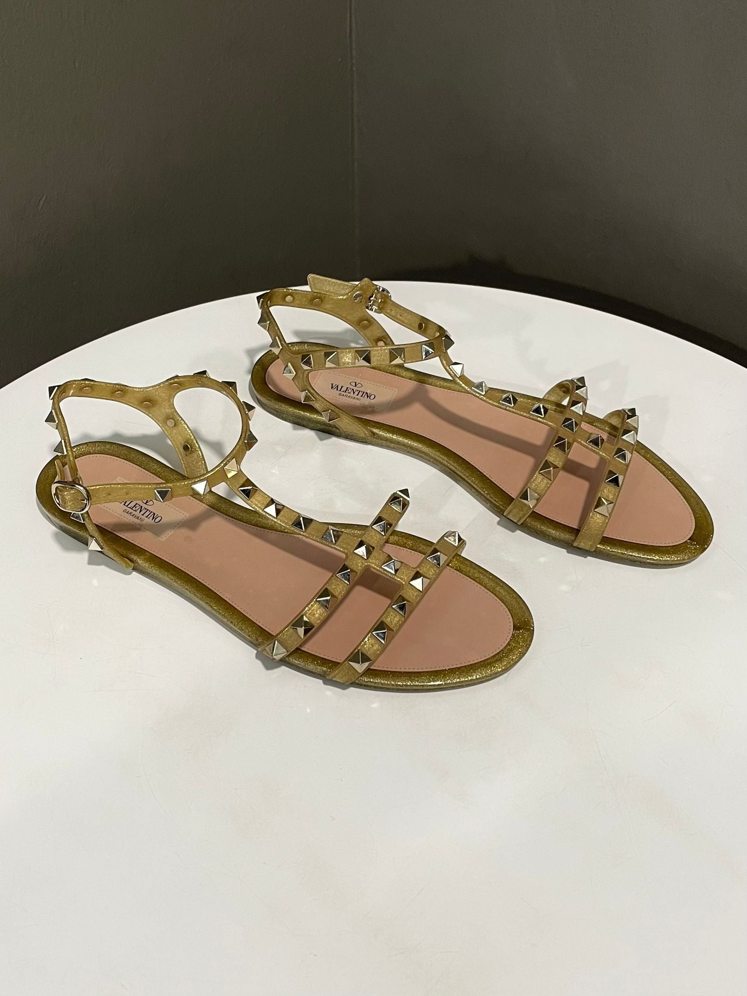 Valentino Garavani Rockstud Rubber Sandal Gold Glitter SHW Size 40