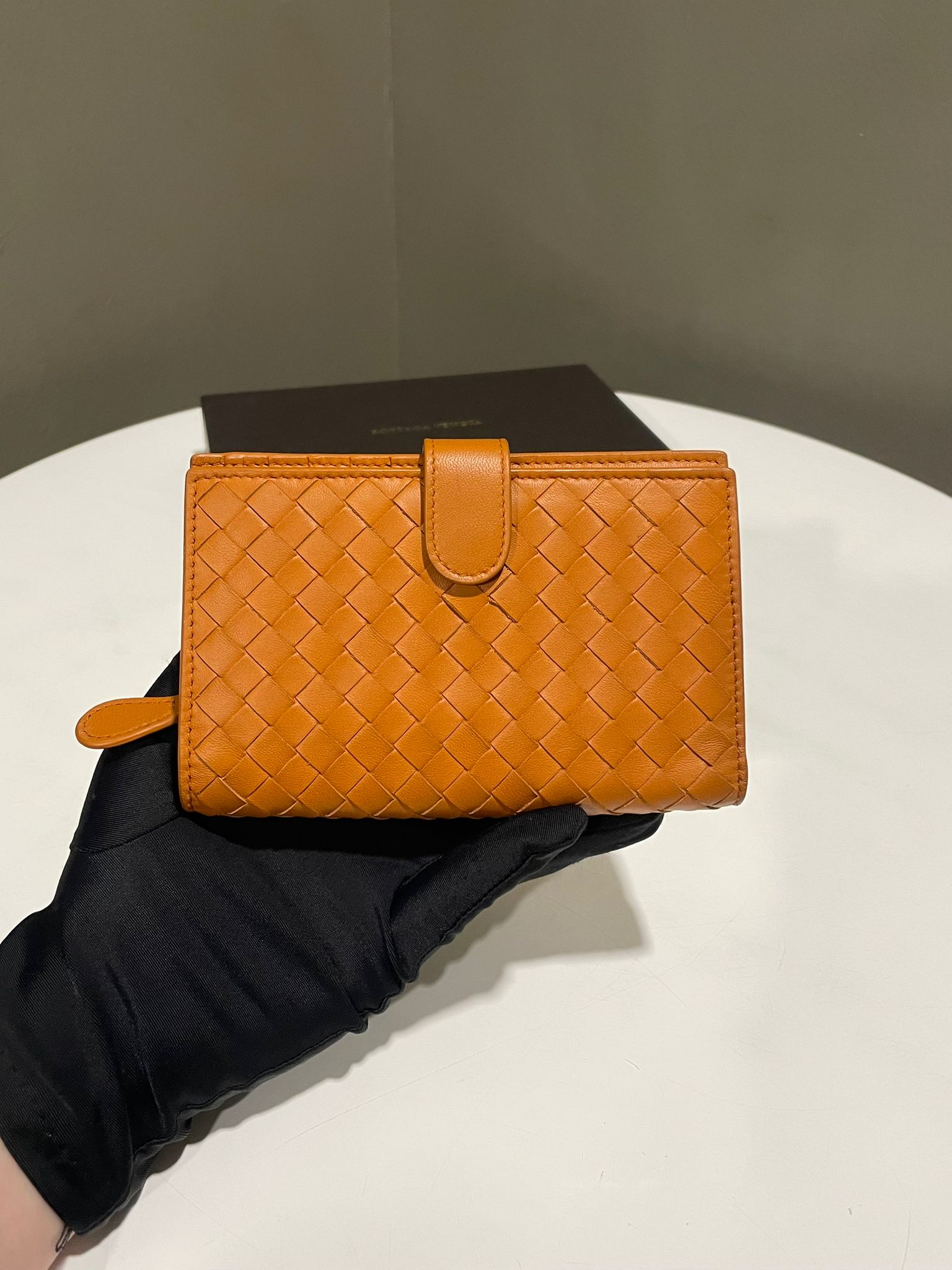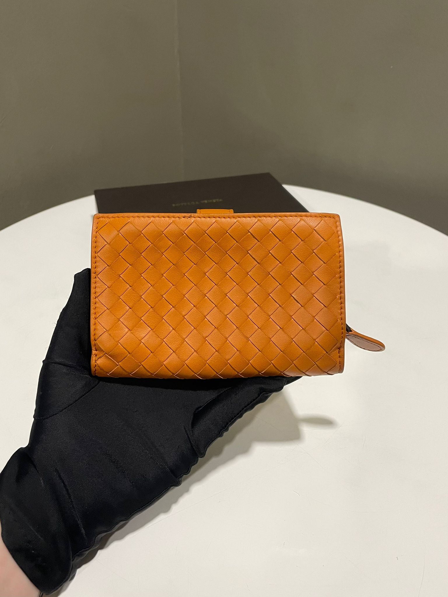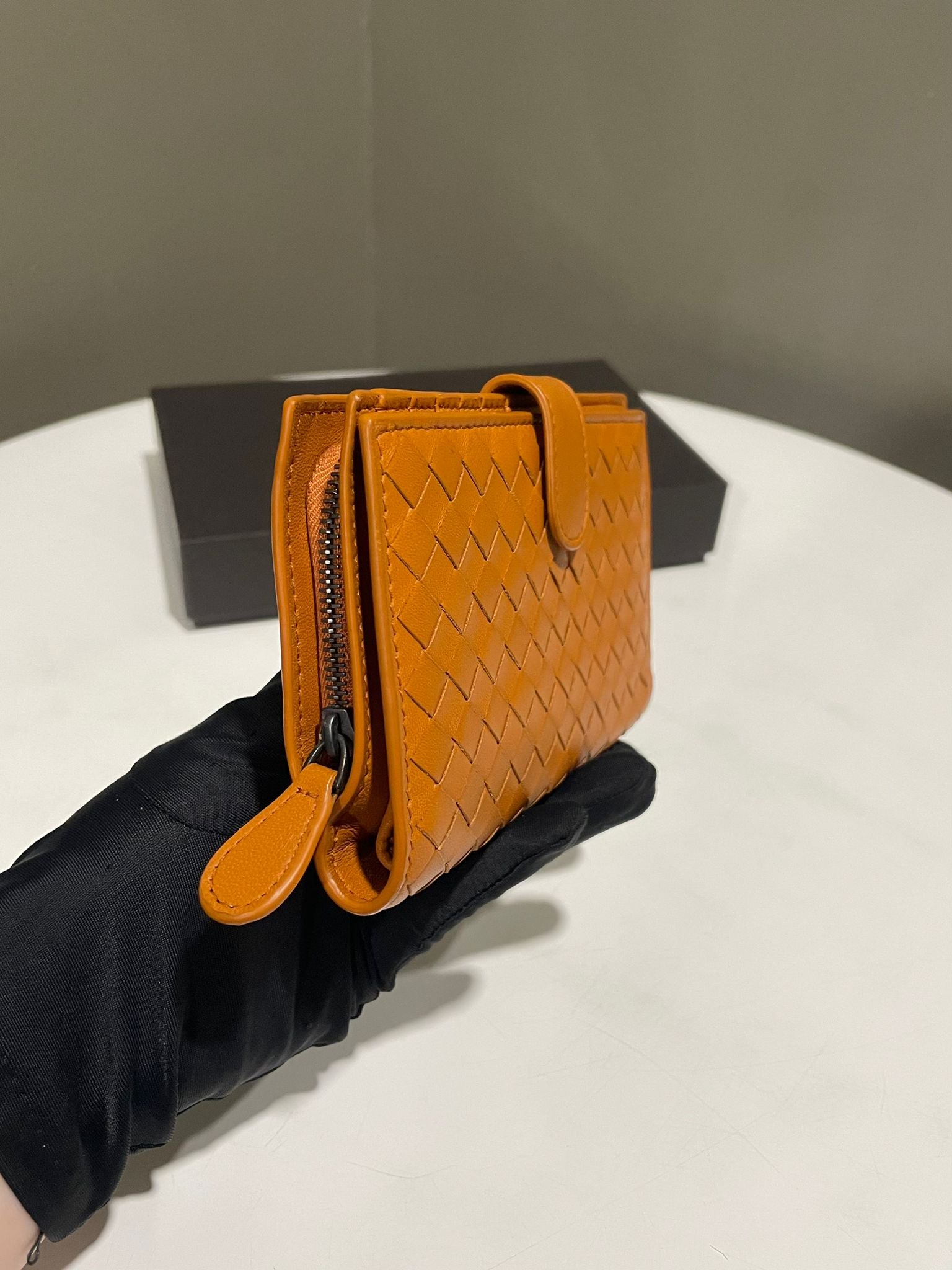 Bottega Veneta Intrecciato Zip Bifold Wallet Caremel Intrecciato