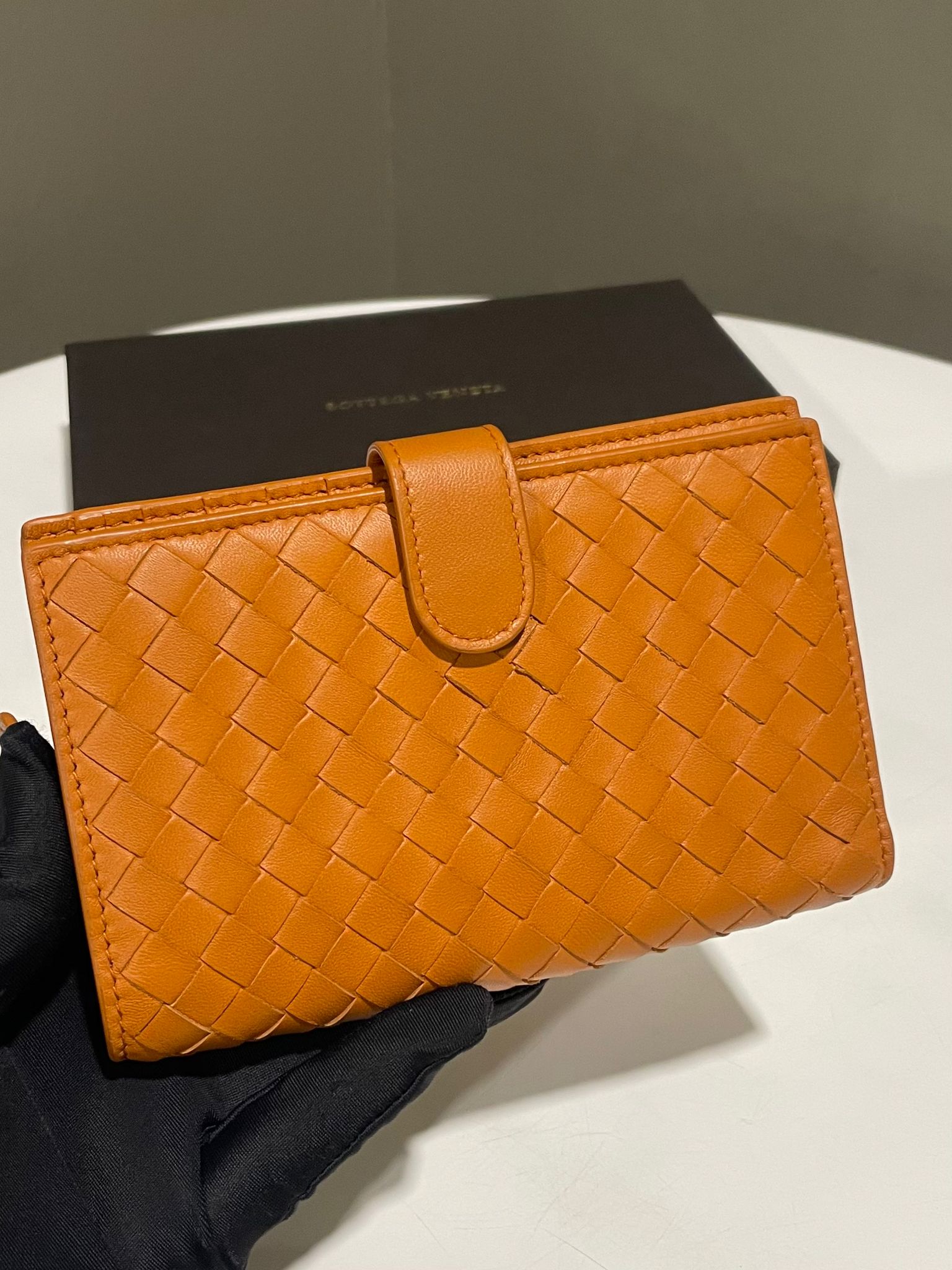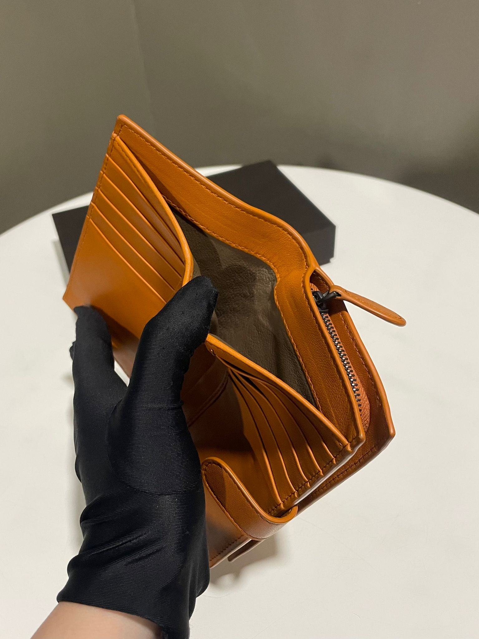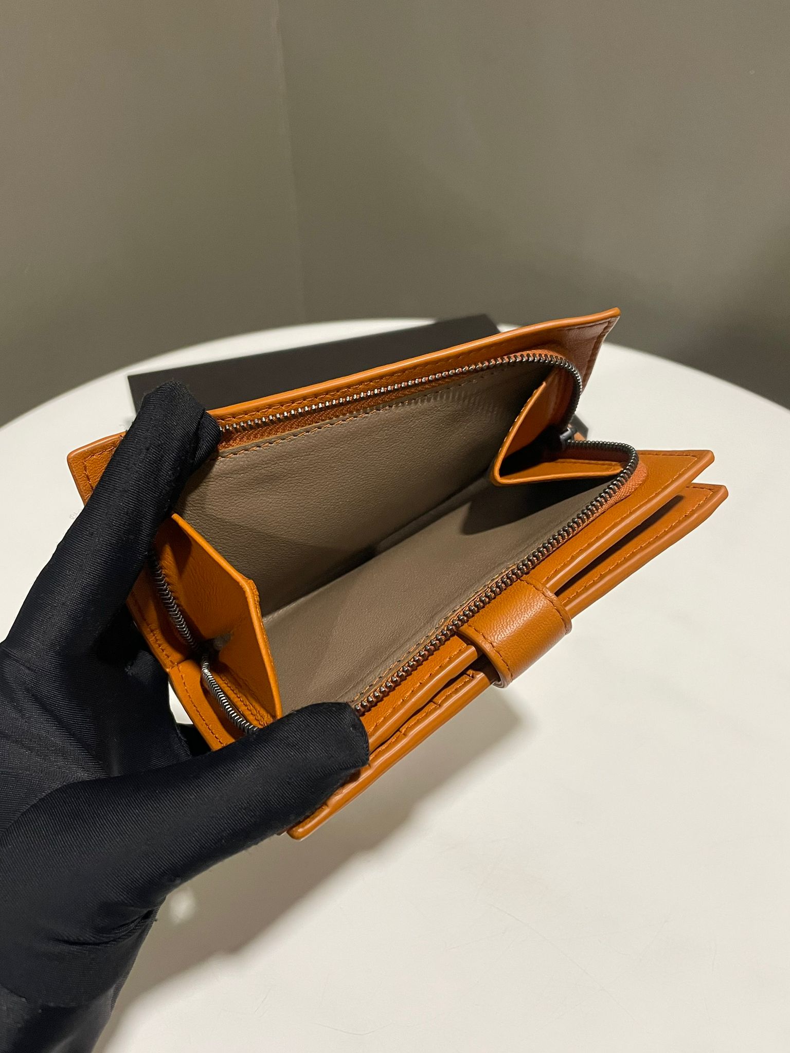 Bottega Veneta Intrecciato Zip Bifold Wallet Caremel Intrecciato