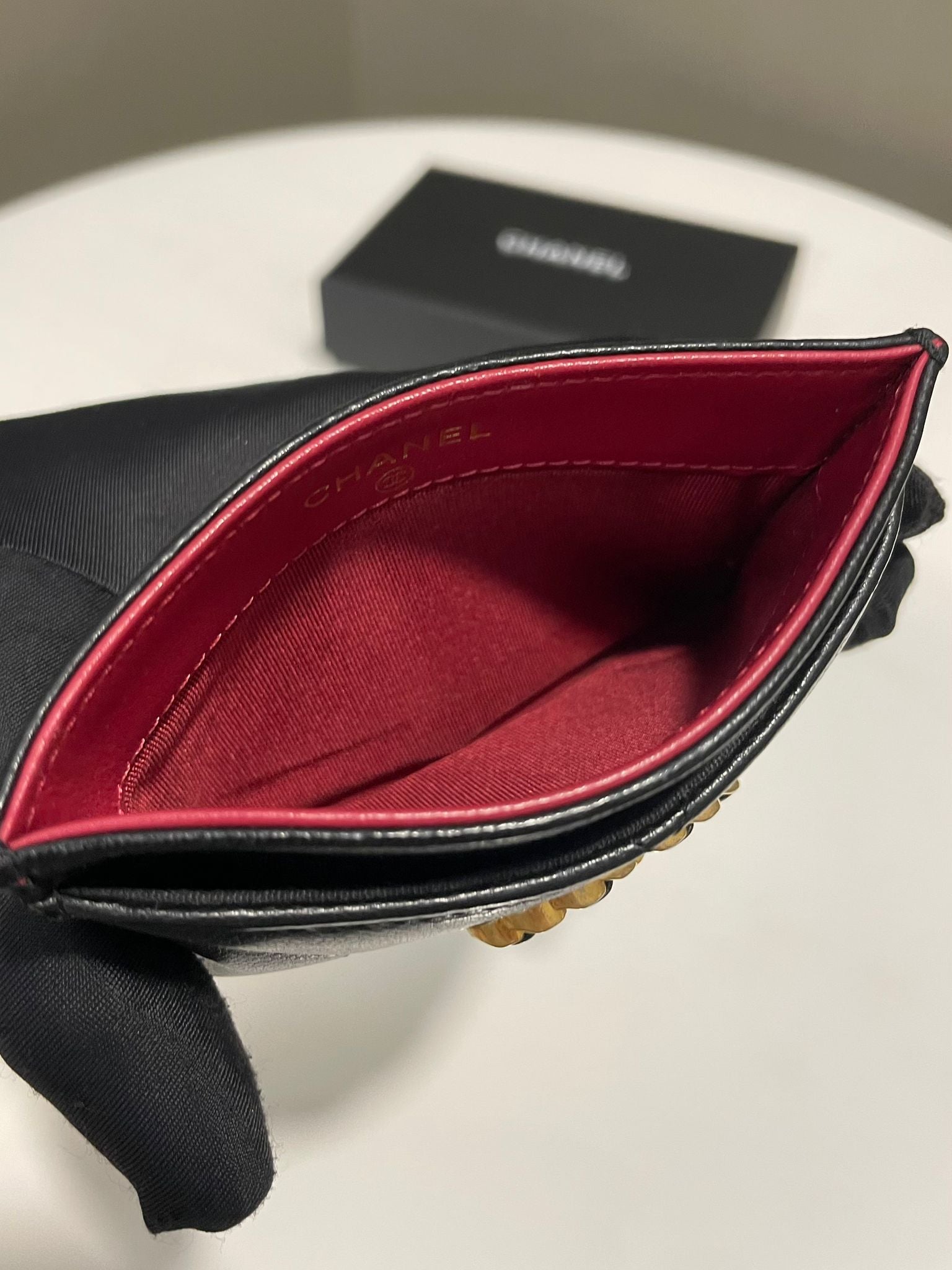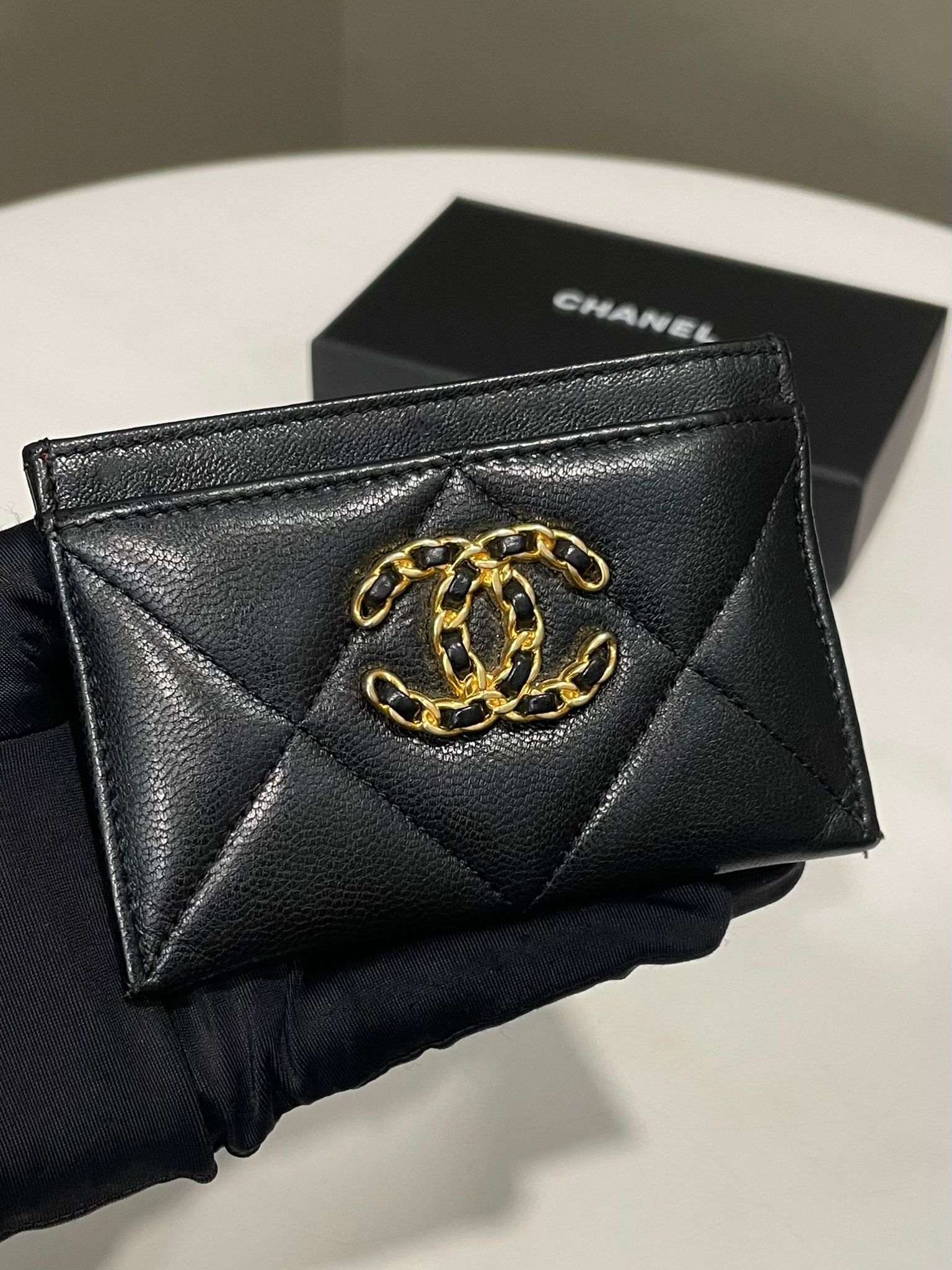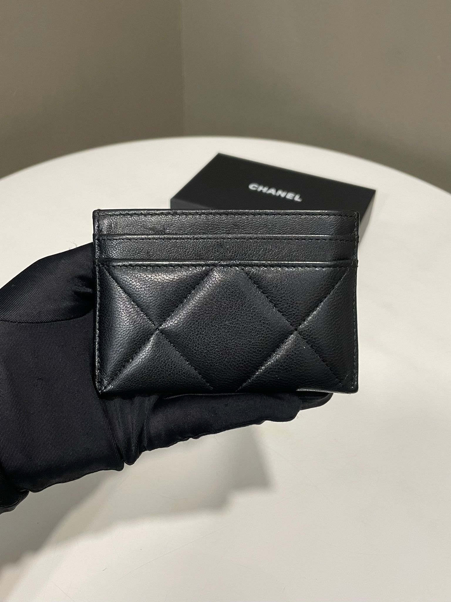 Chanel 19 Quilted Cc Logo Card Holder Black Lambskin