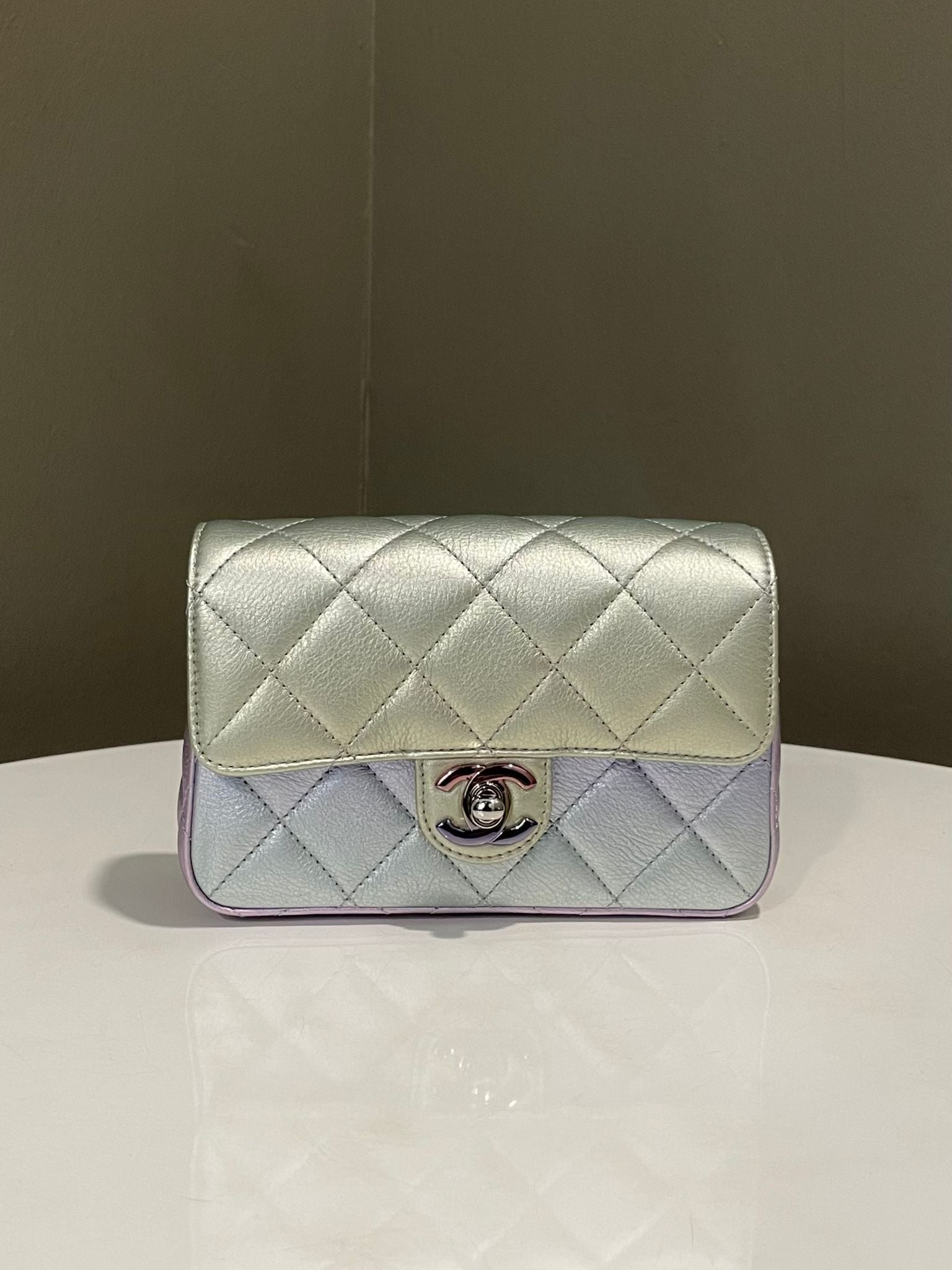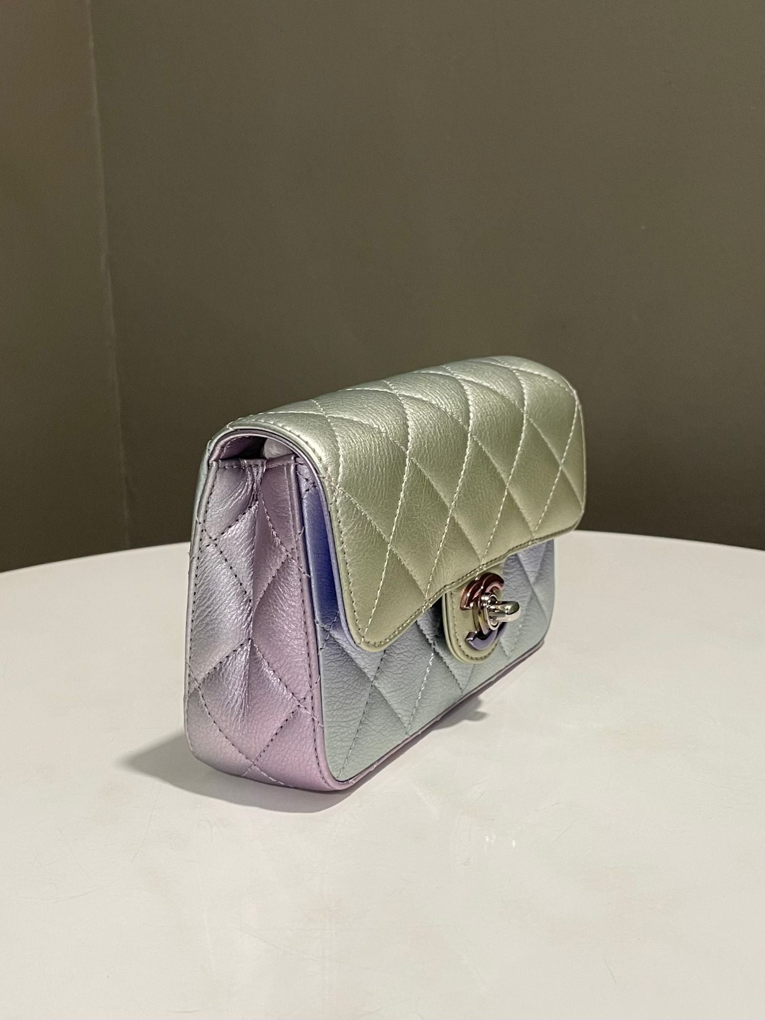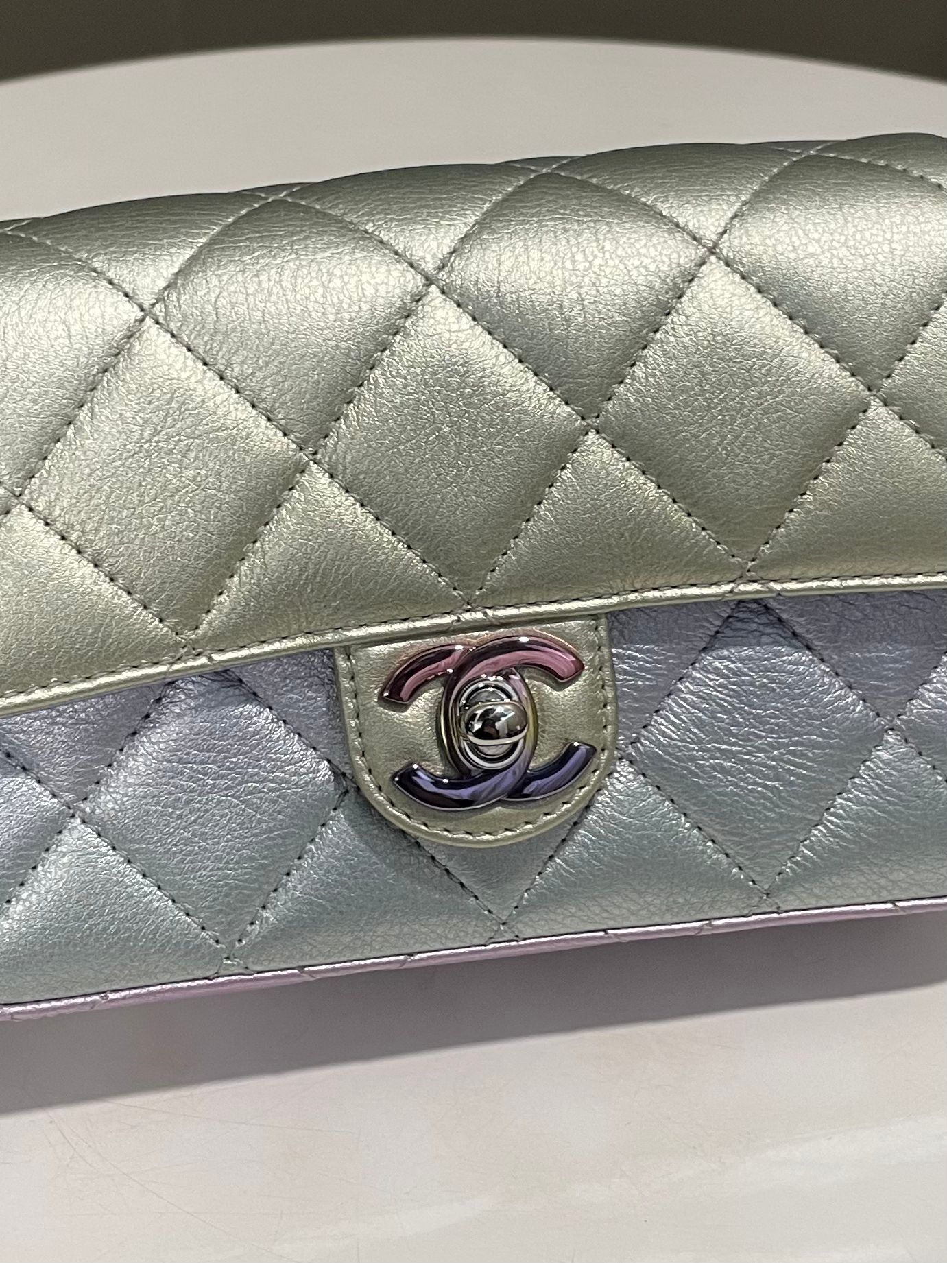 Chanel 21K Cc Flap Clutch Ombre Mermaid iridescent Rainbow