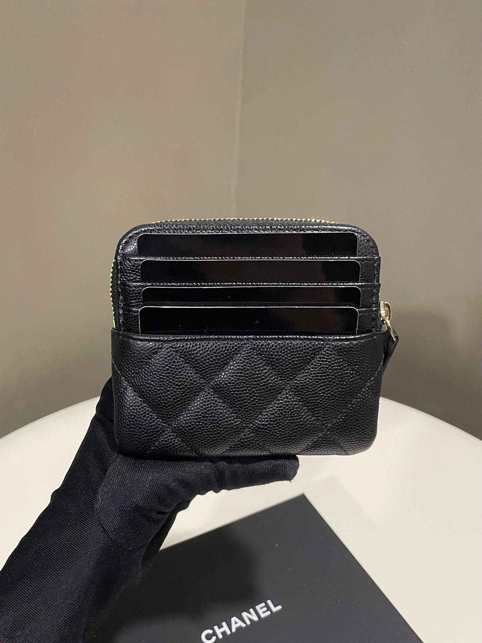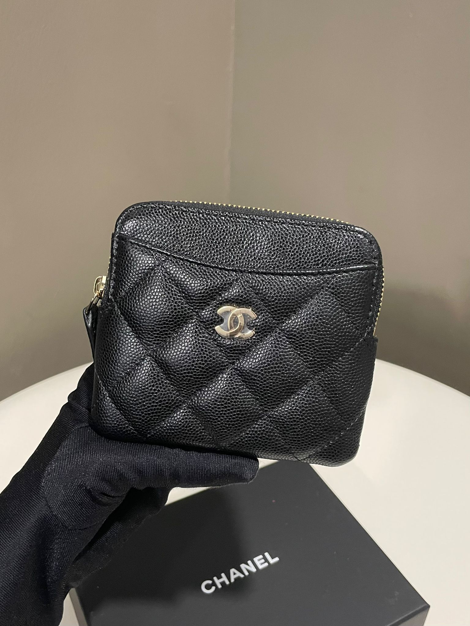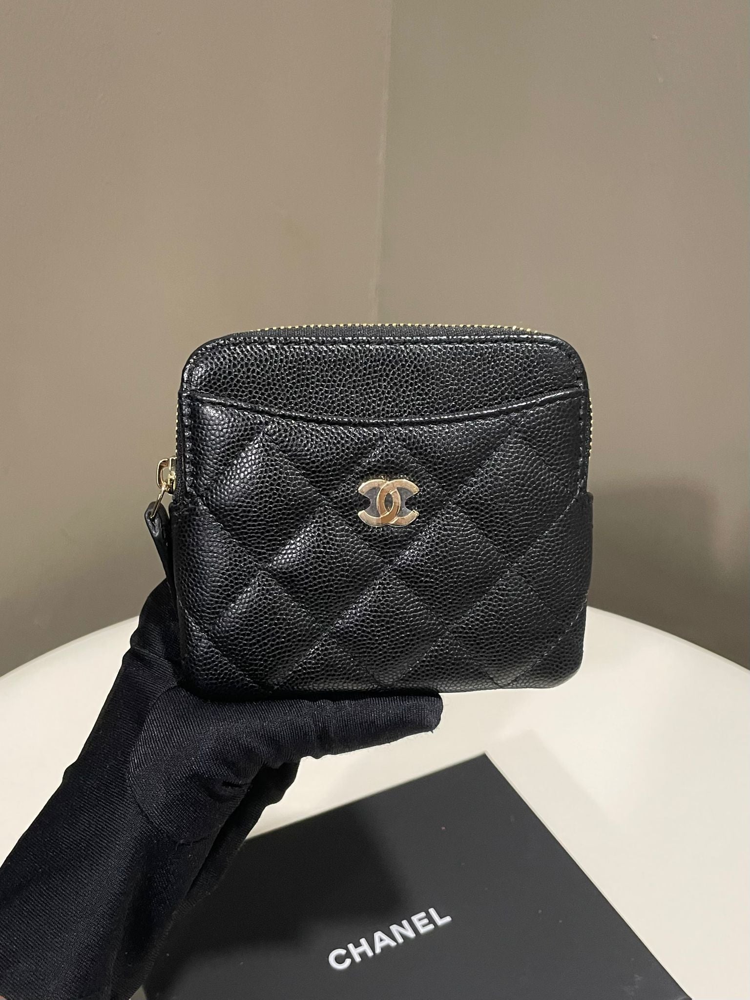 Chanel 21P Zip Coin Card Holder Purse Black Caviar