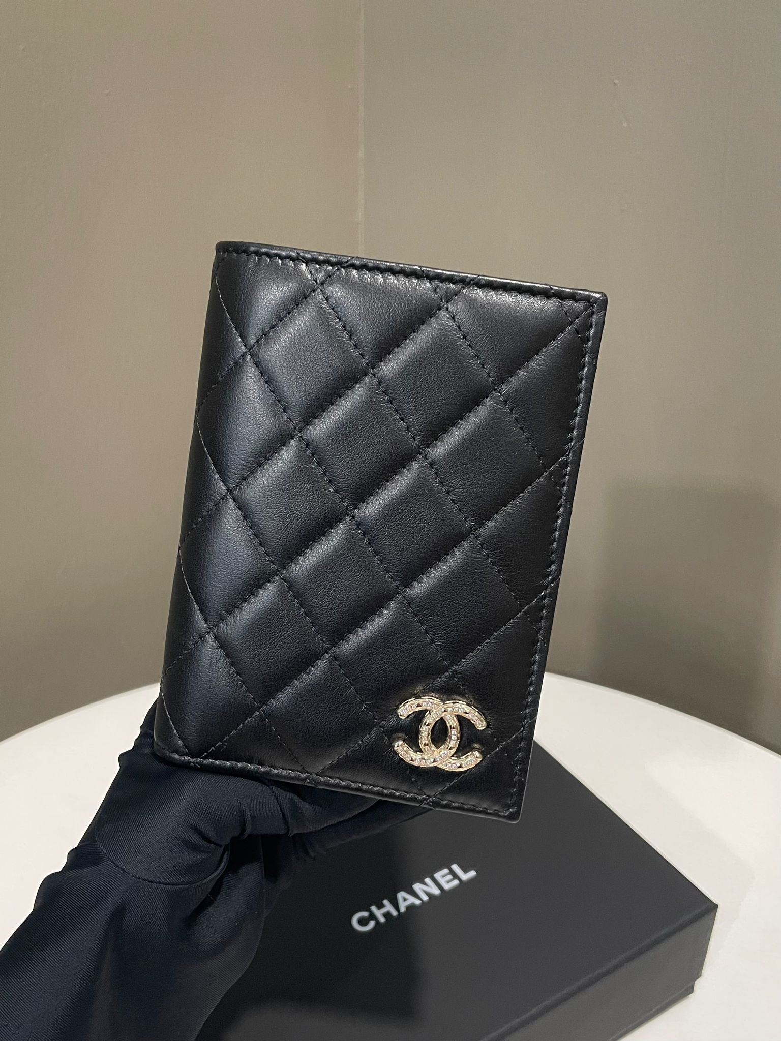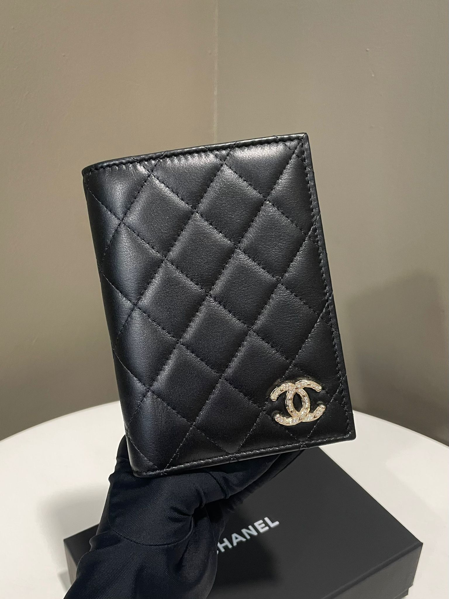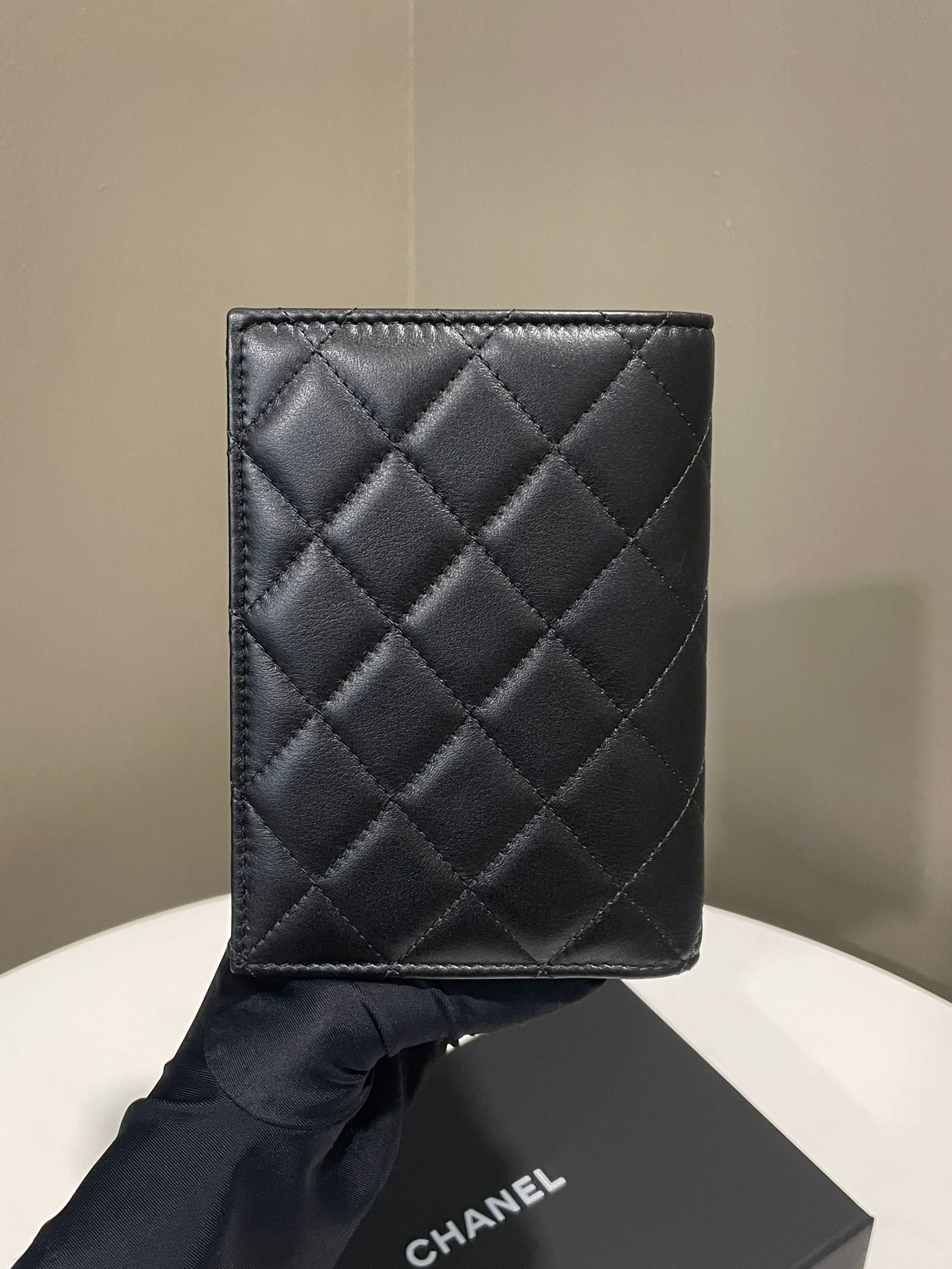 Chanel CC Quilted Passport Card Holder Black Lambskin