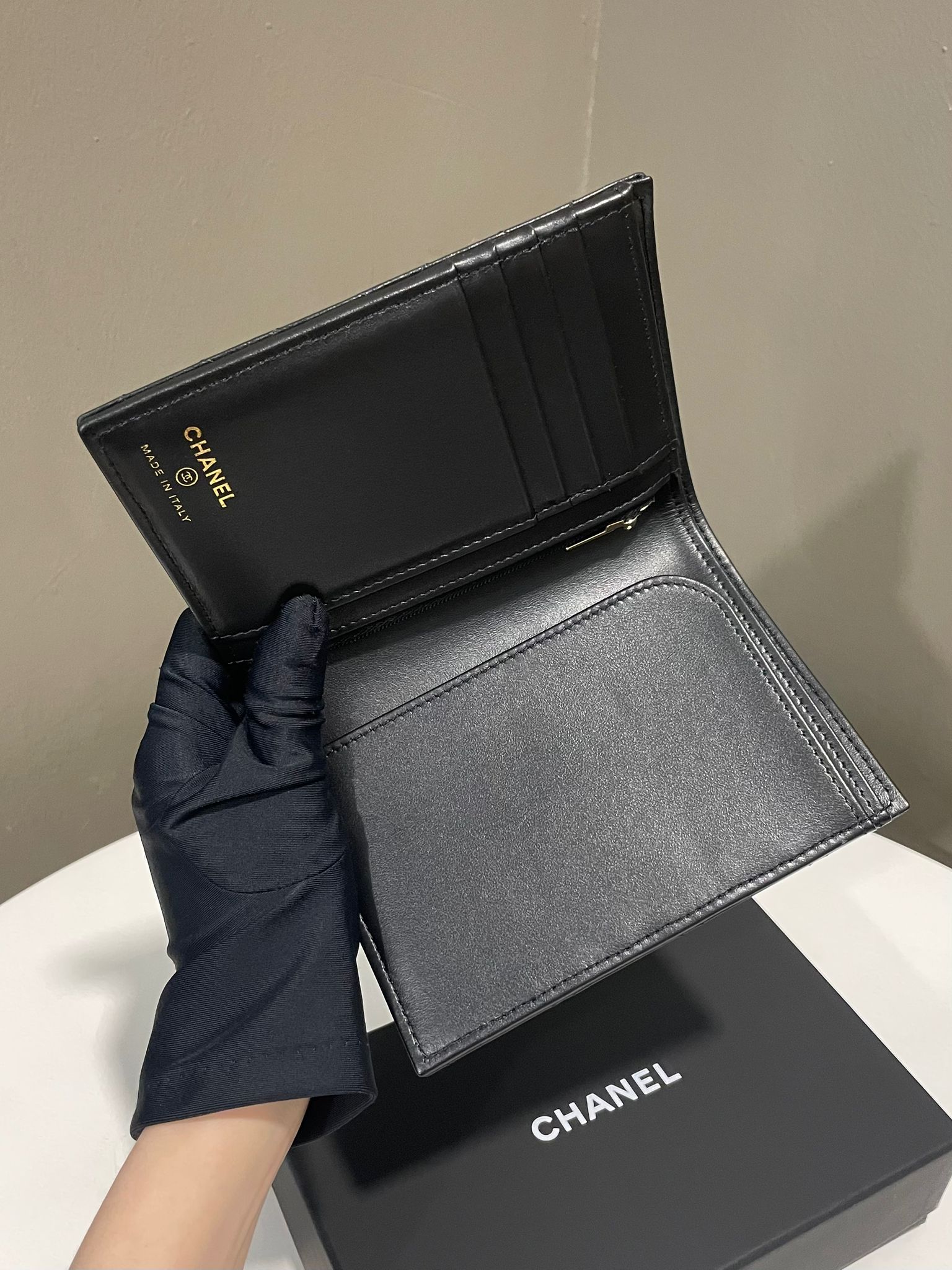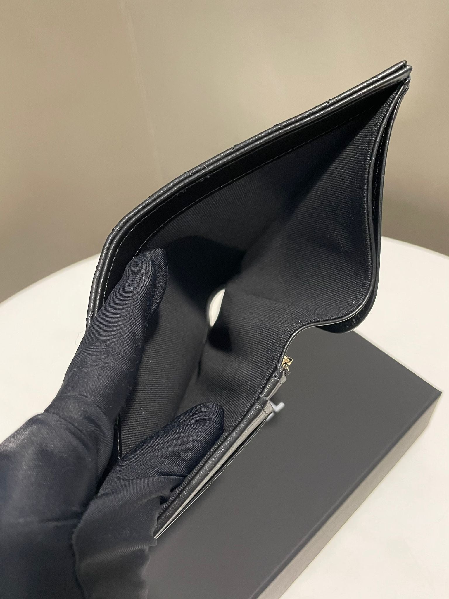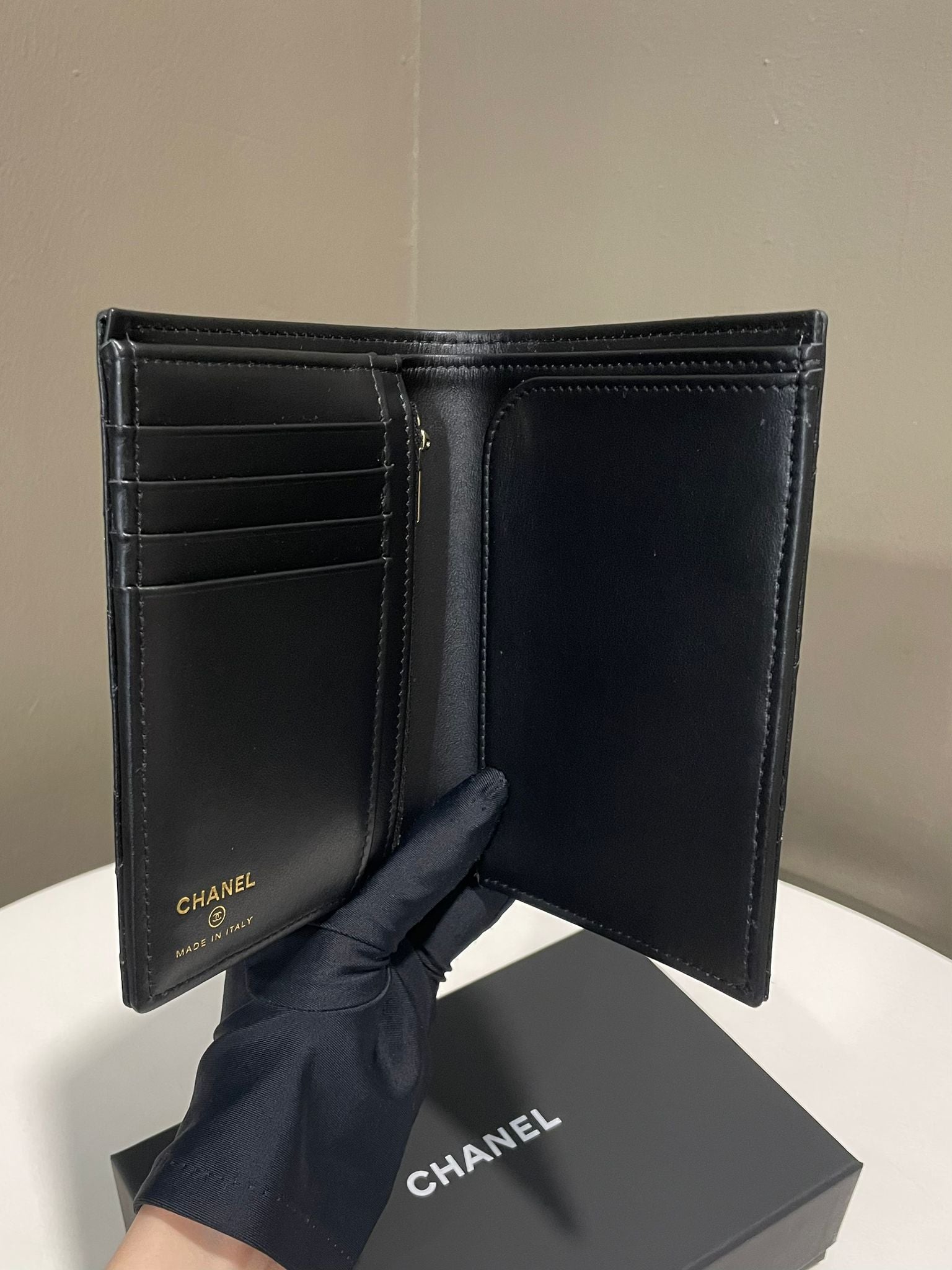 Chanel CC Quilted Passport Card Holder Black Lambskin