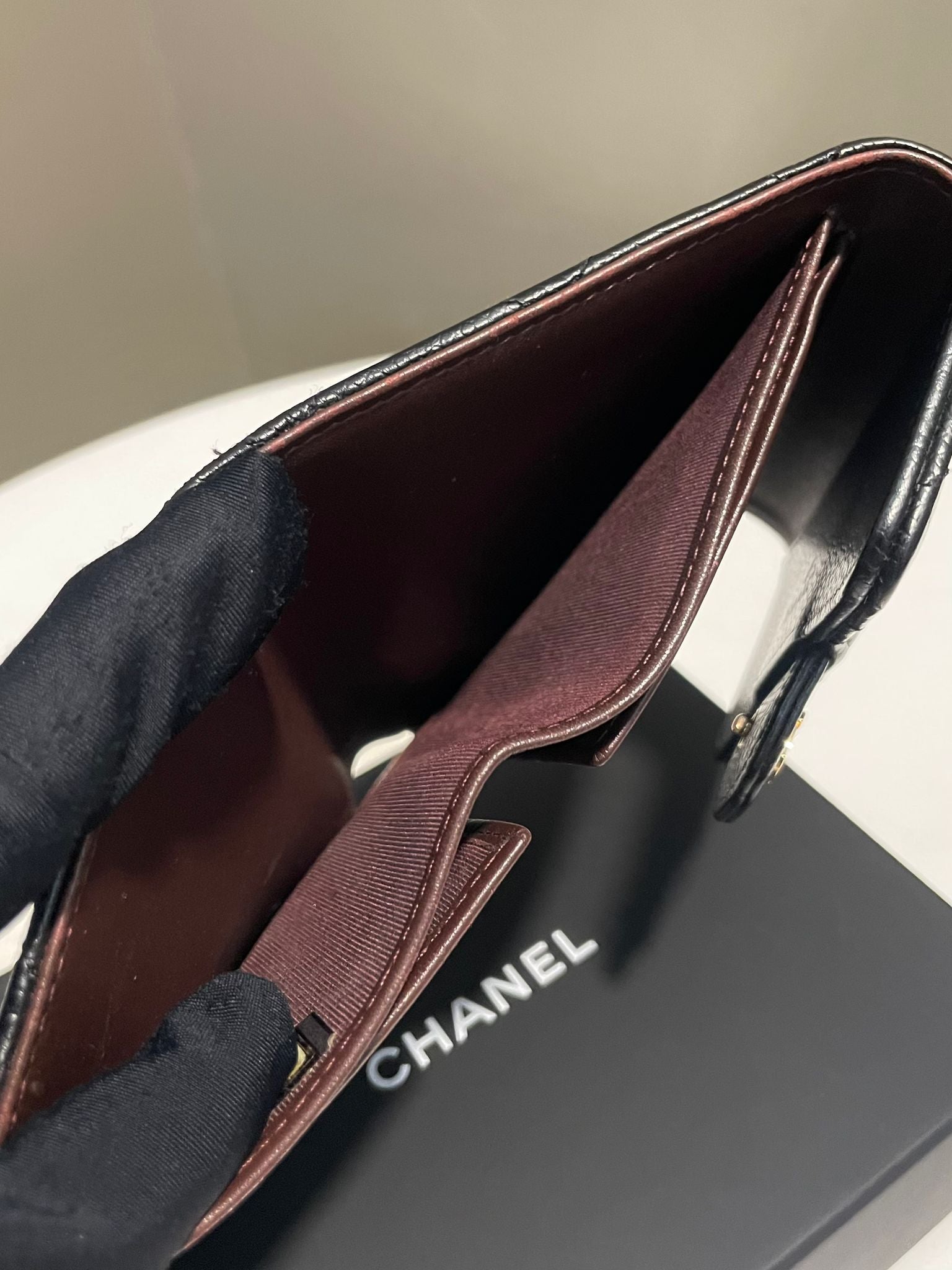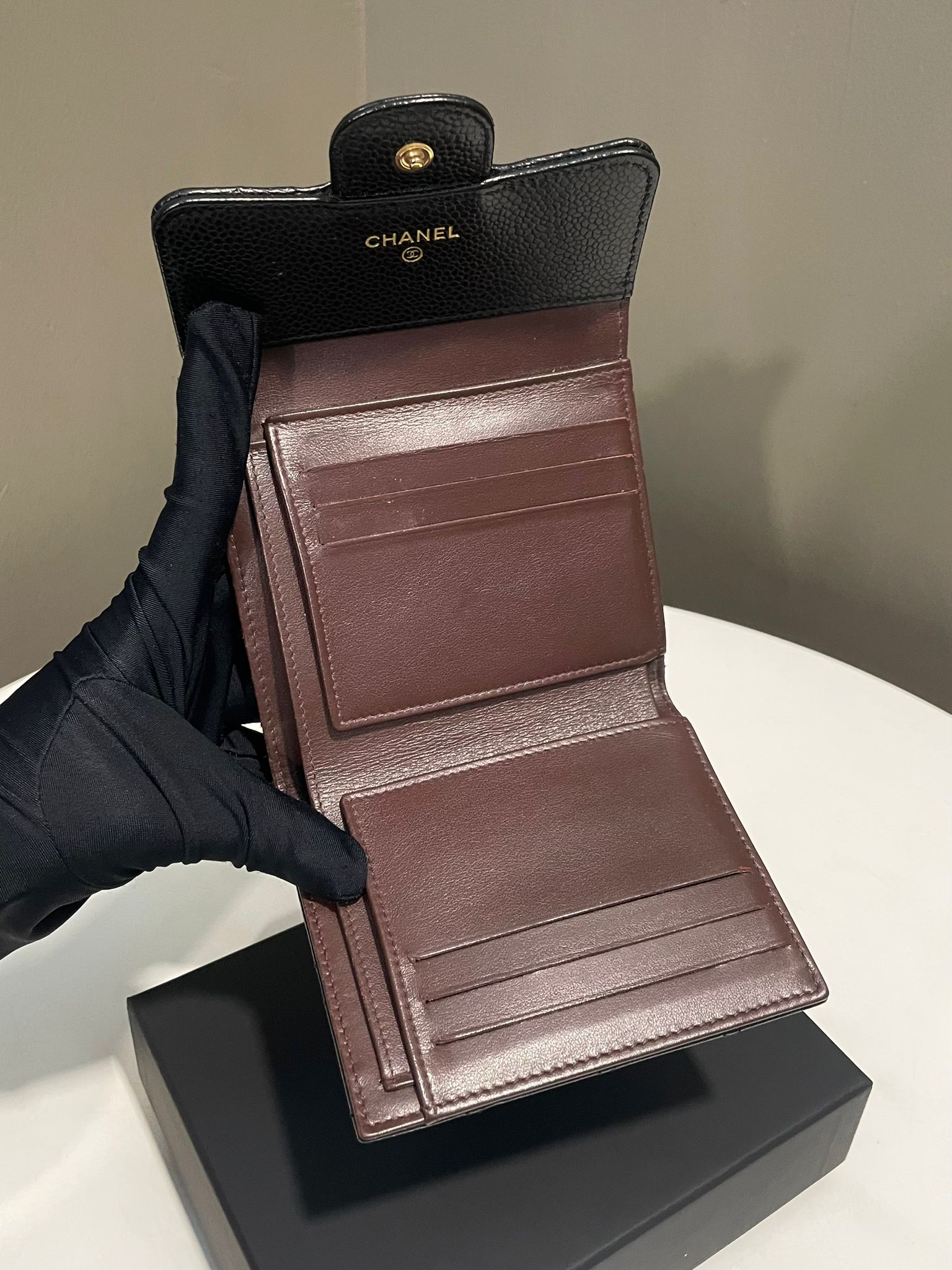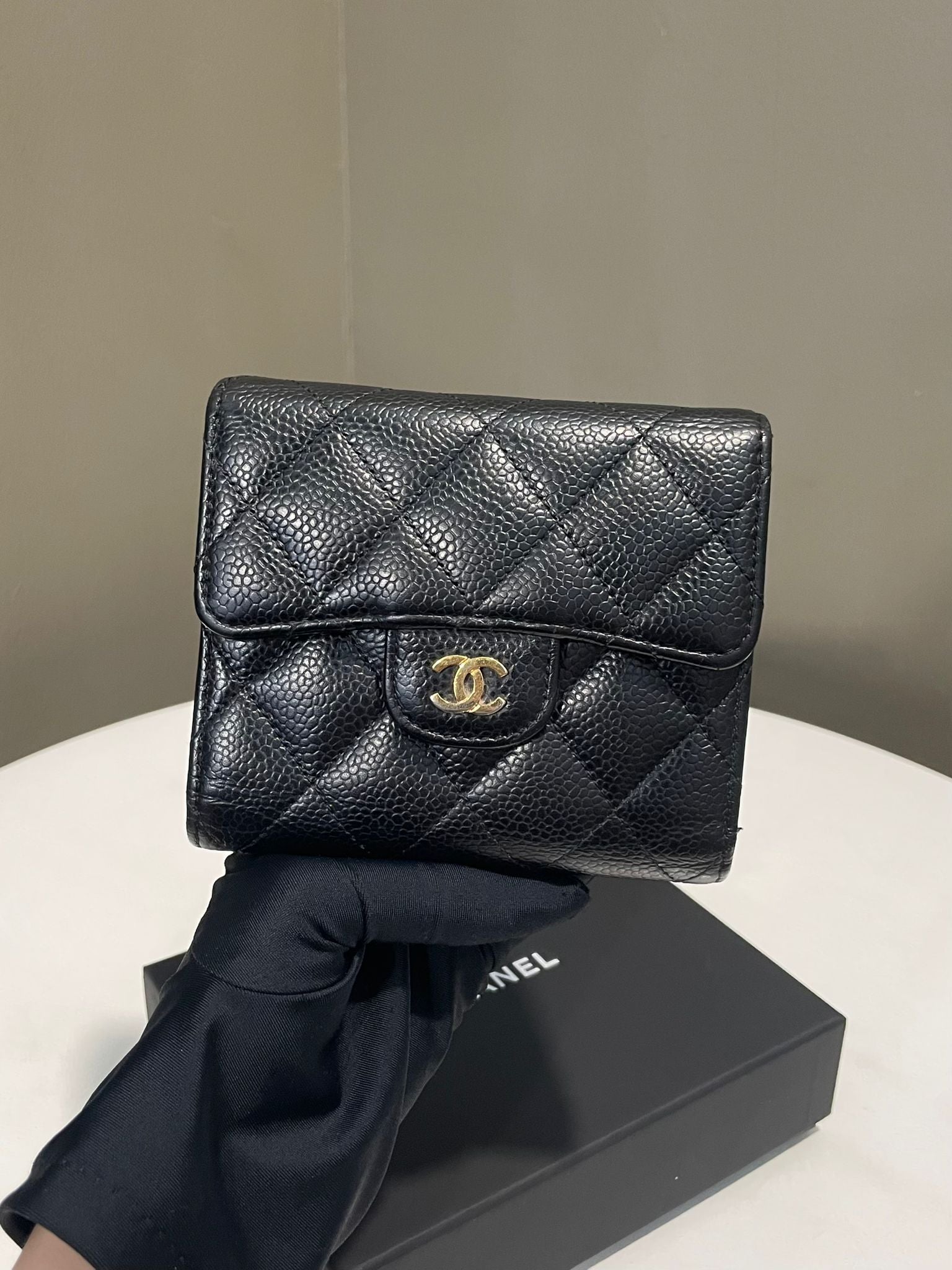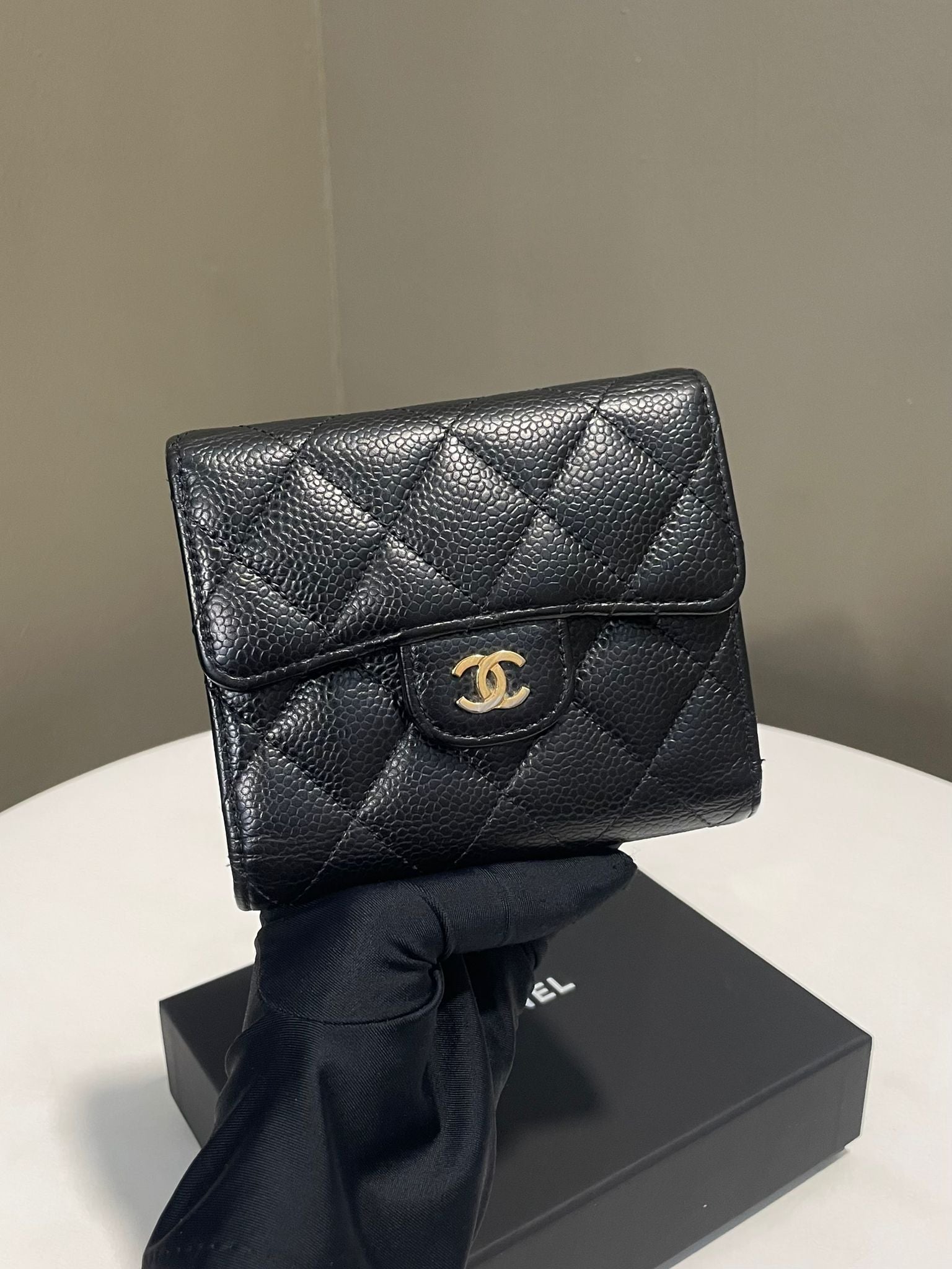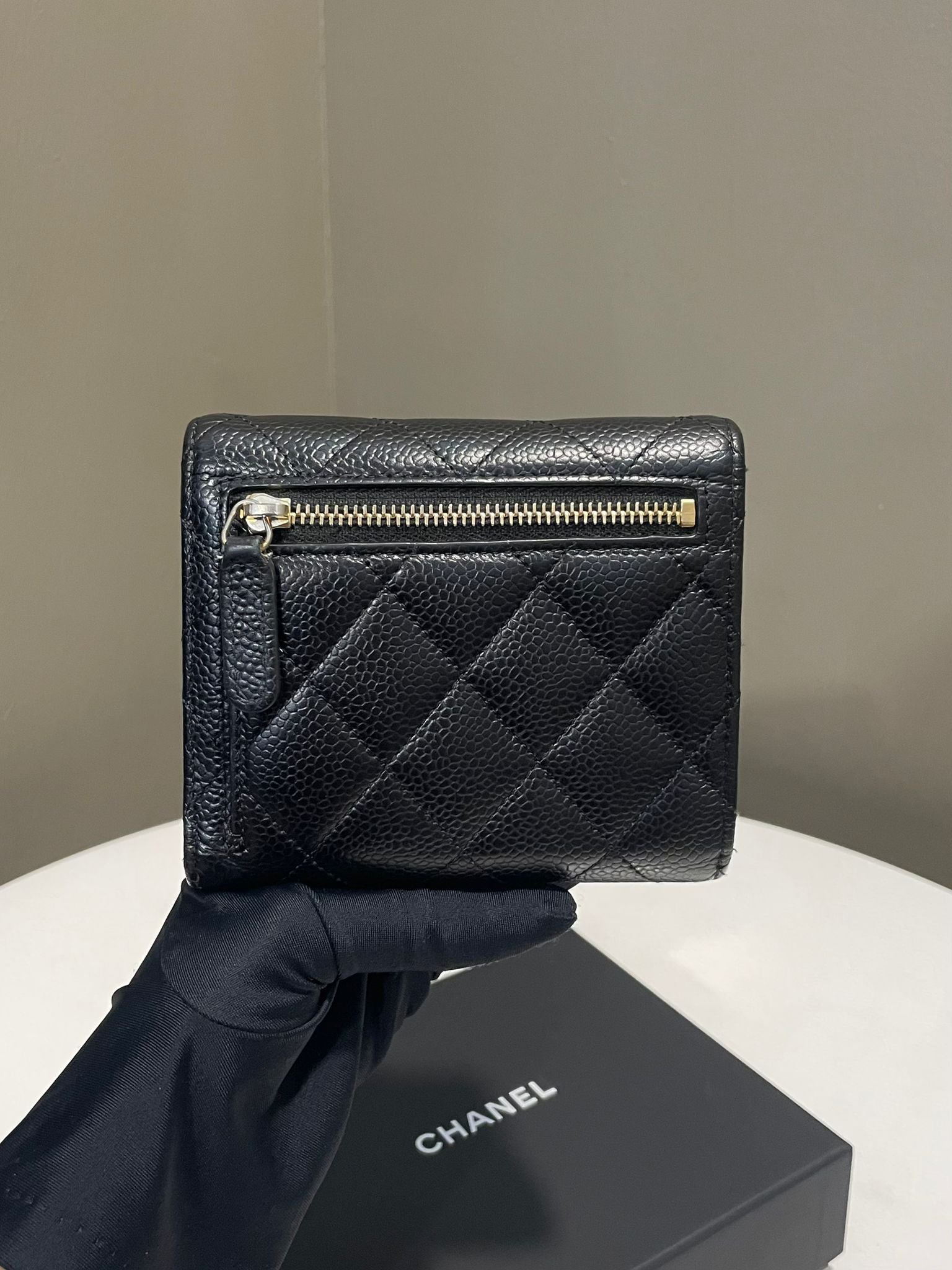 Chanel Classic Quilted Compact Wallet Black Caviar