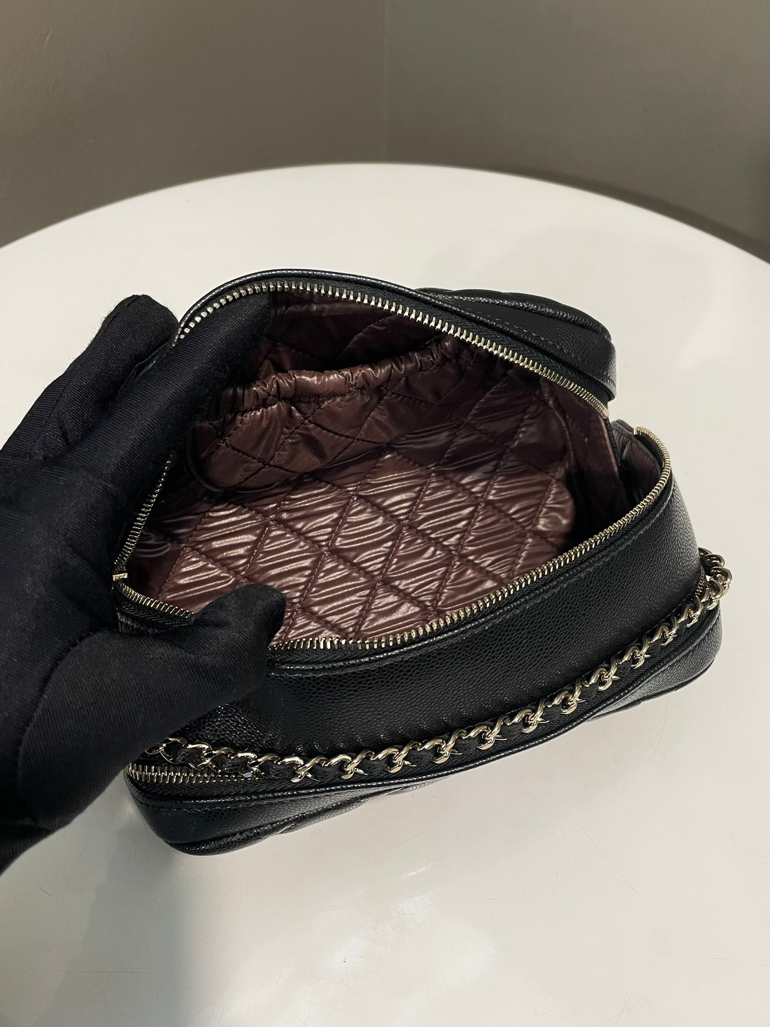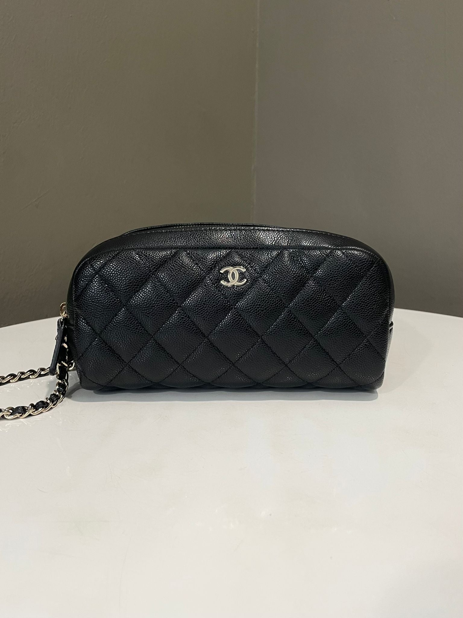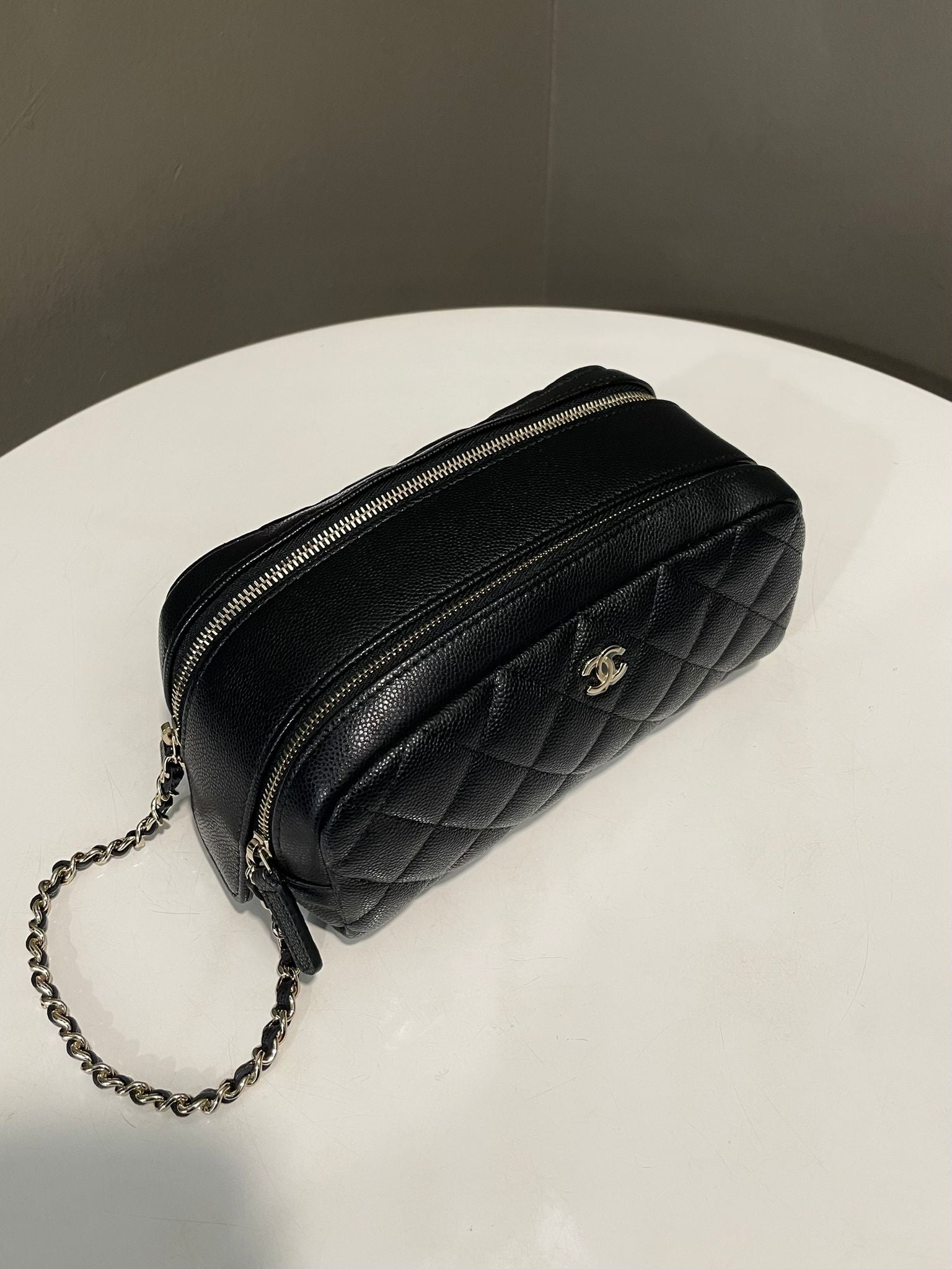 Chanel Quilted Double Zip Cc Cosmetic Pouch Black Caviar