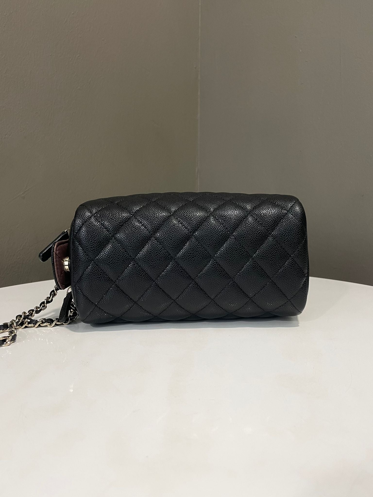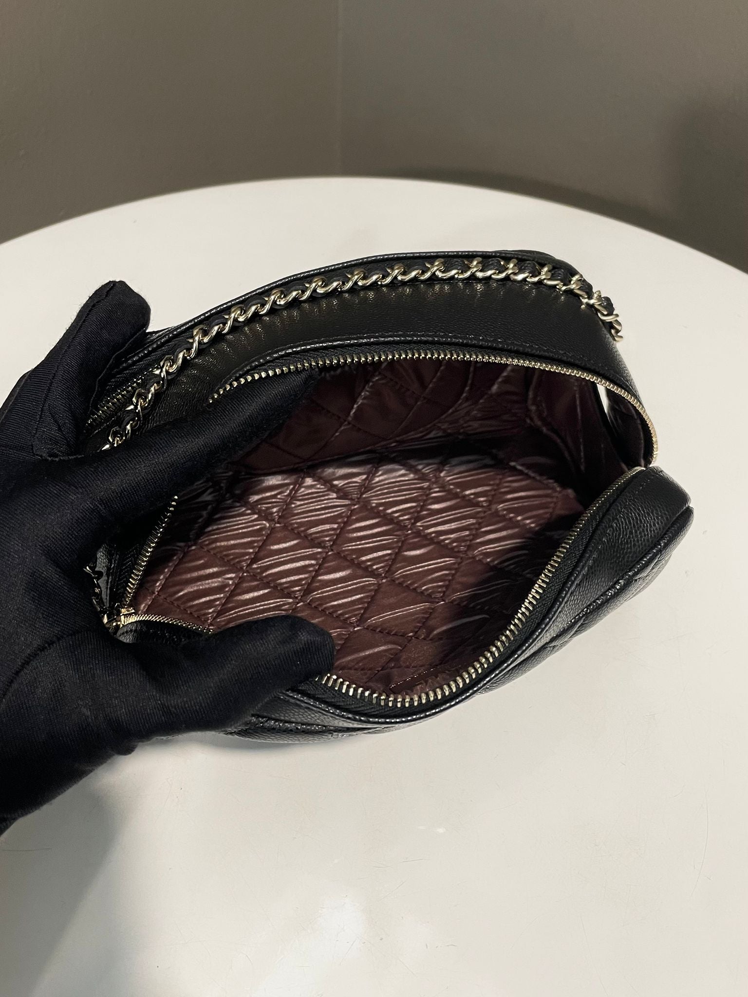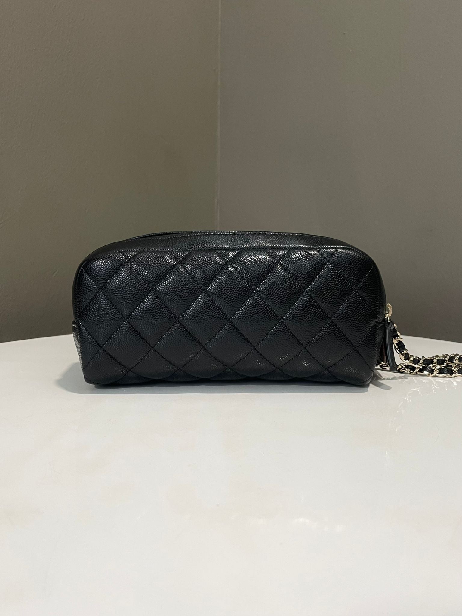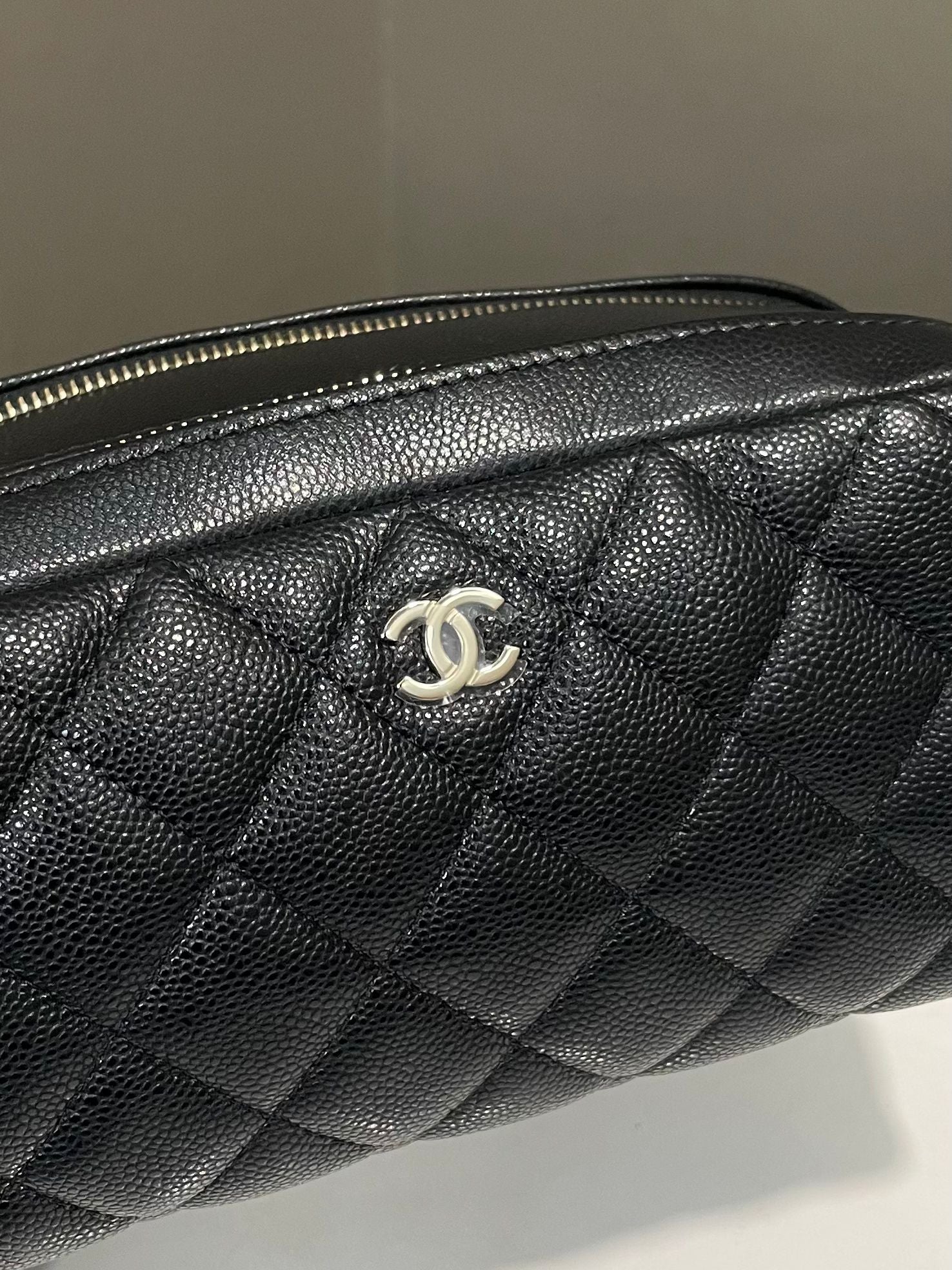 Chanel Quilted Double Zip Cc Cosmetic Pouch Black Caviar