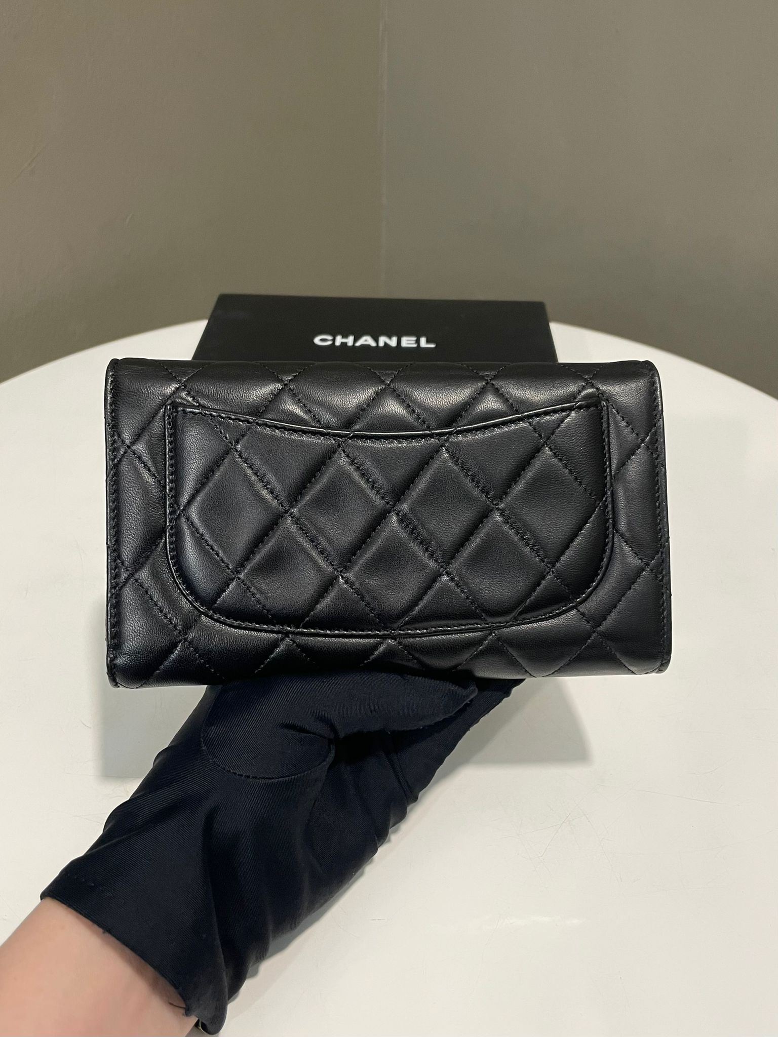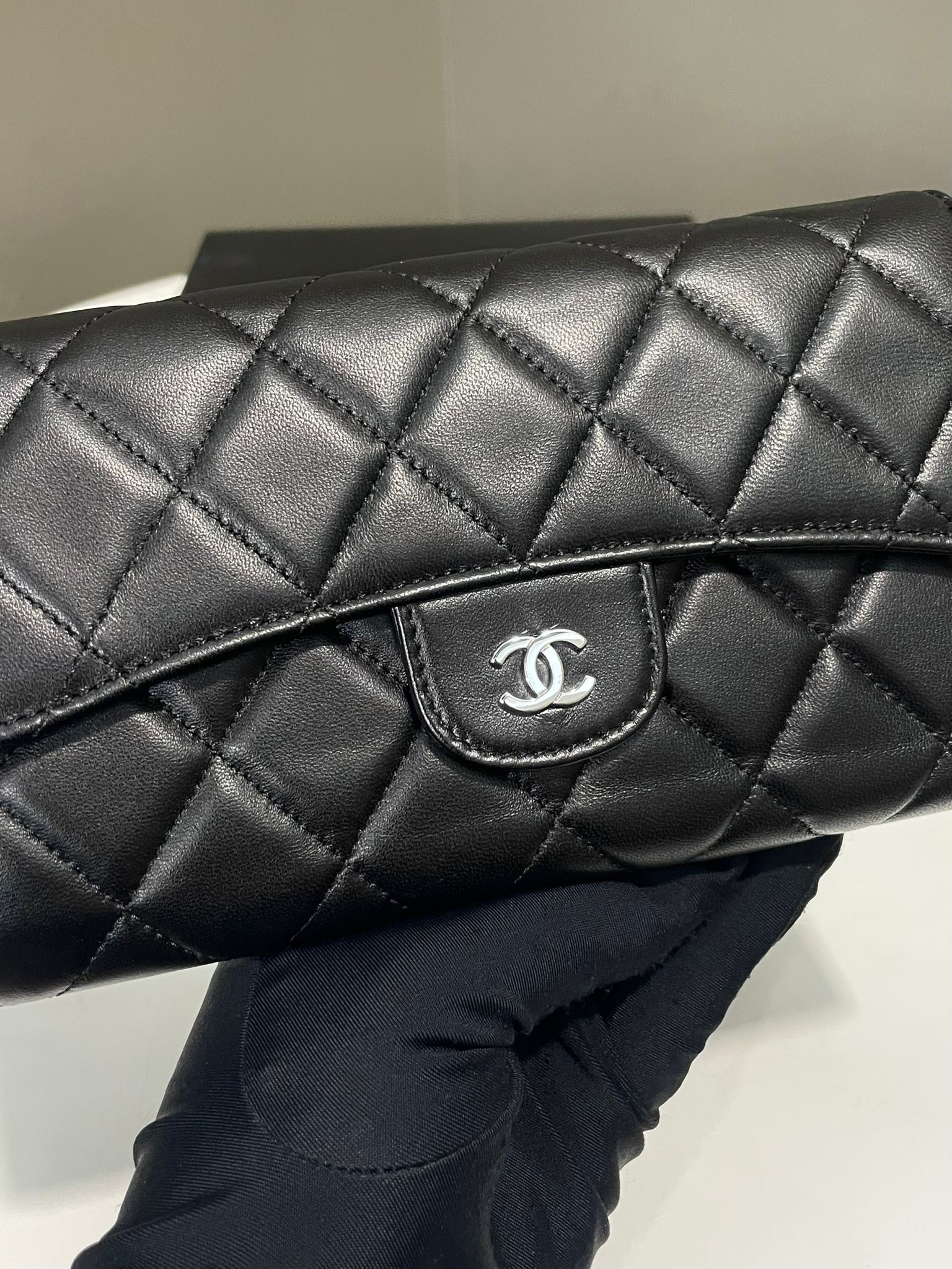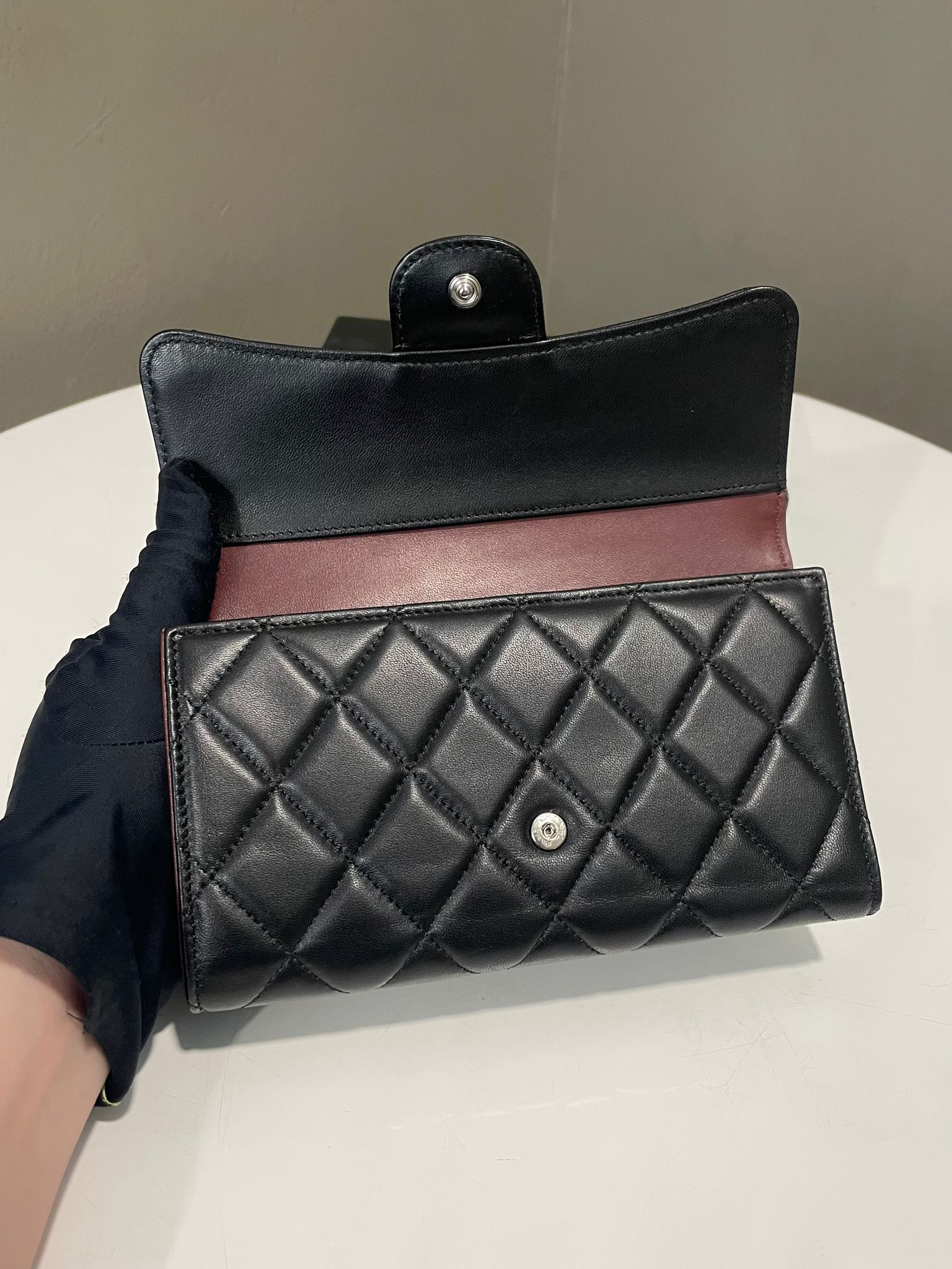 Chanel Quilted Long Flap Wallet Black Lambskin
