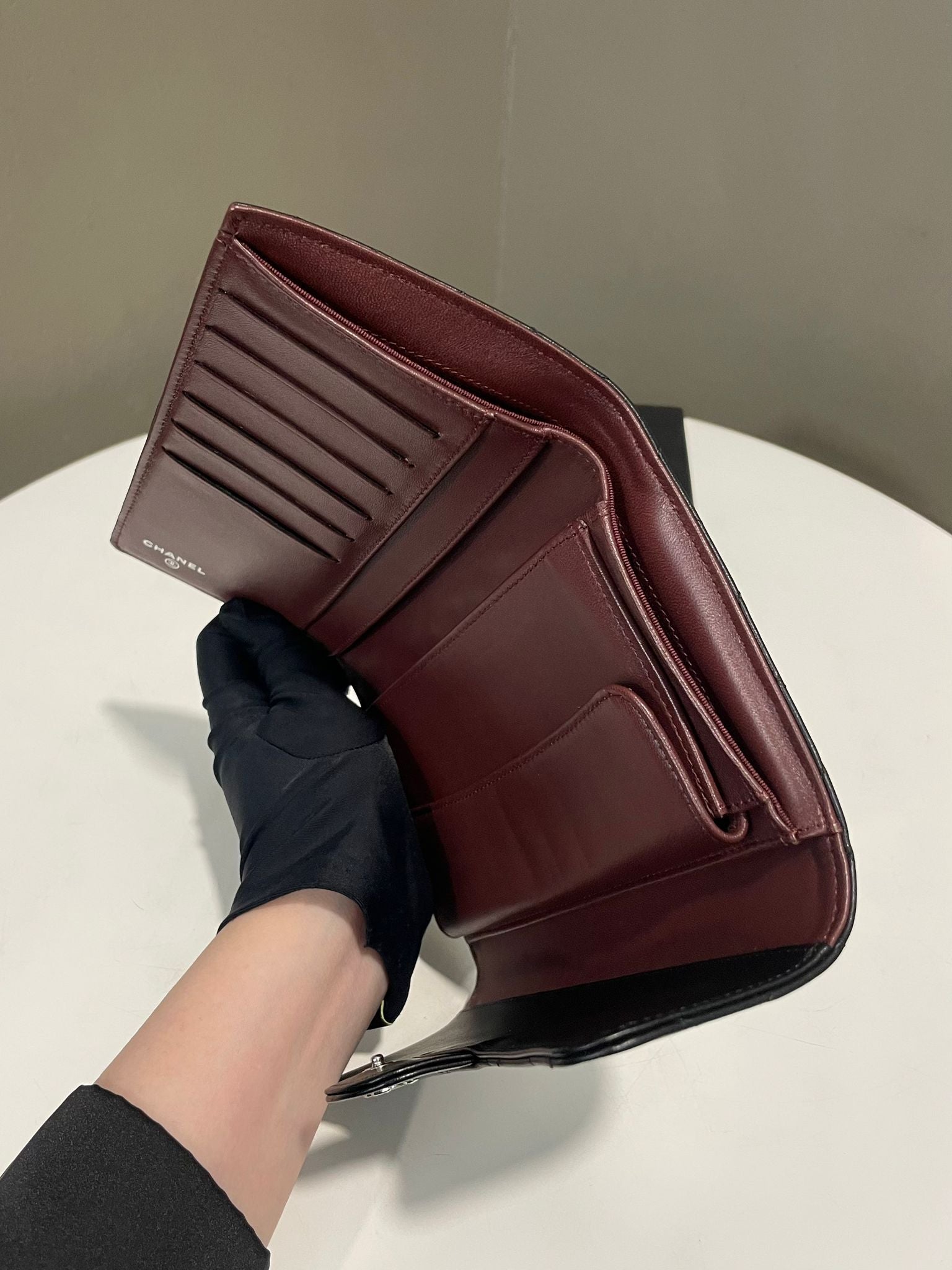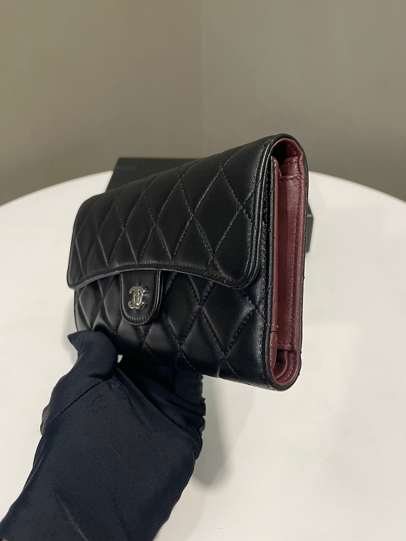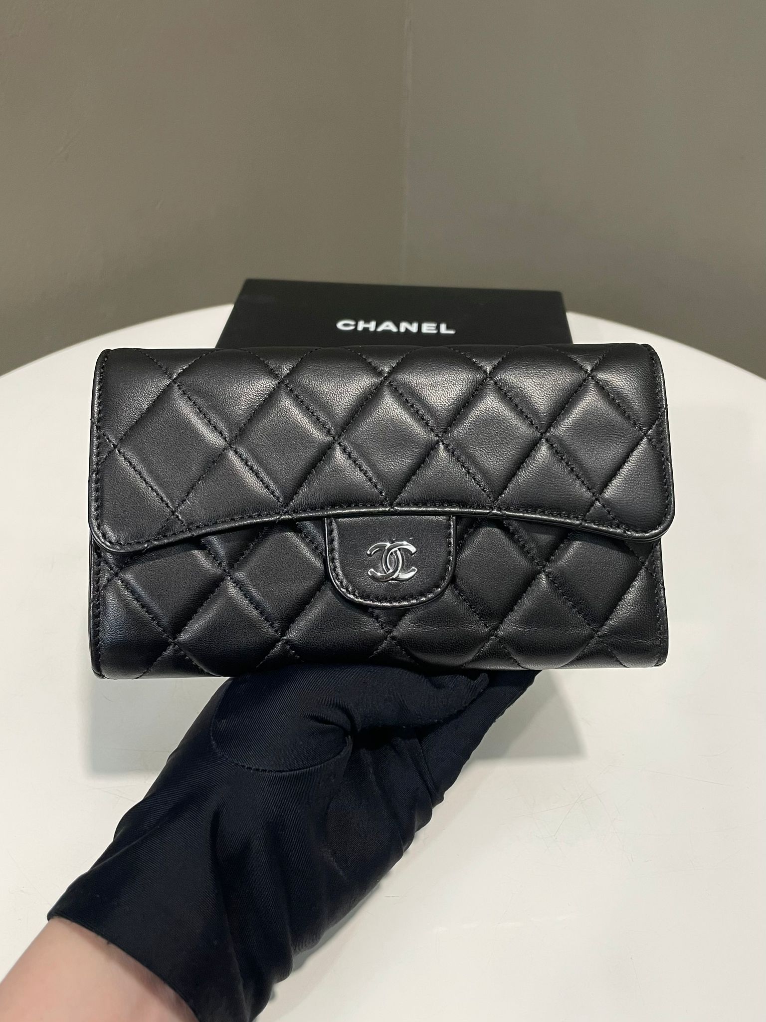 Chanel Quilted Long Flap Wallet Black Lambskin