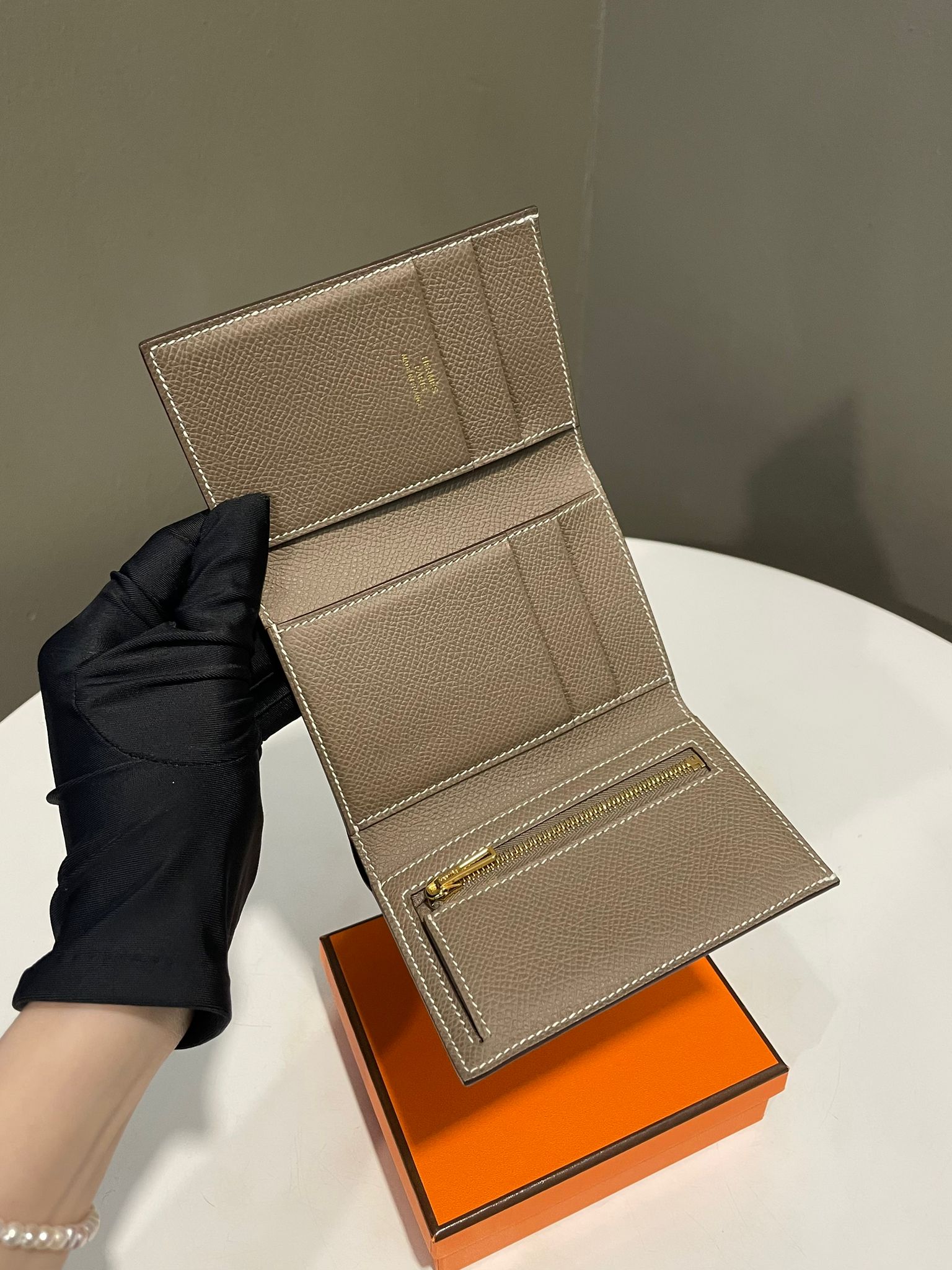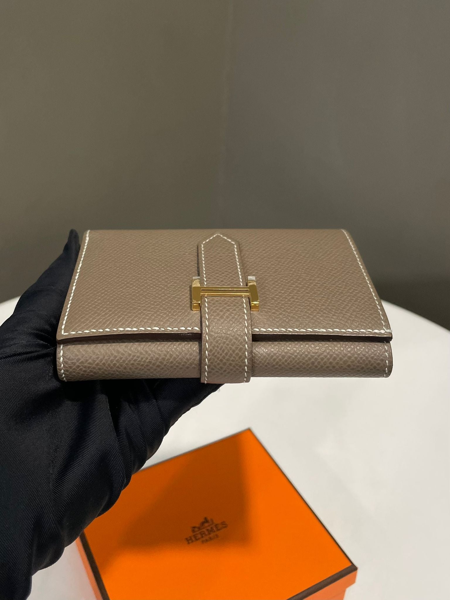 Hermes Bearn Compact Wallet Etoupe Epsom