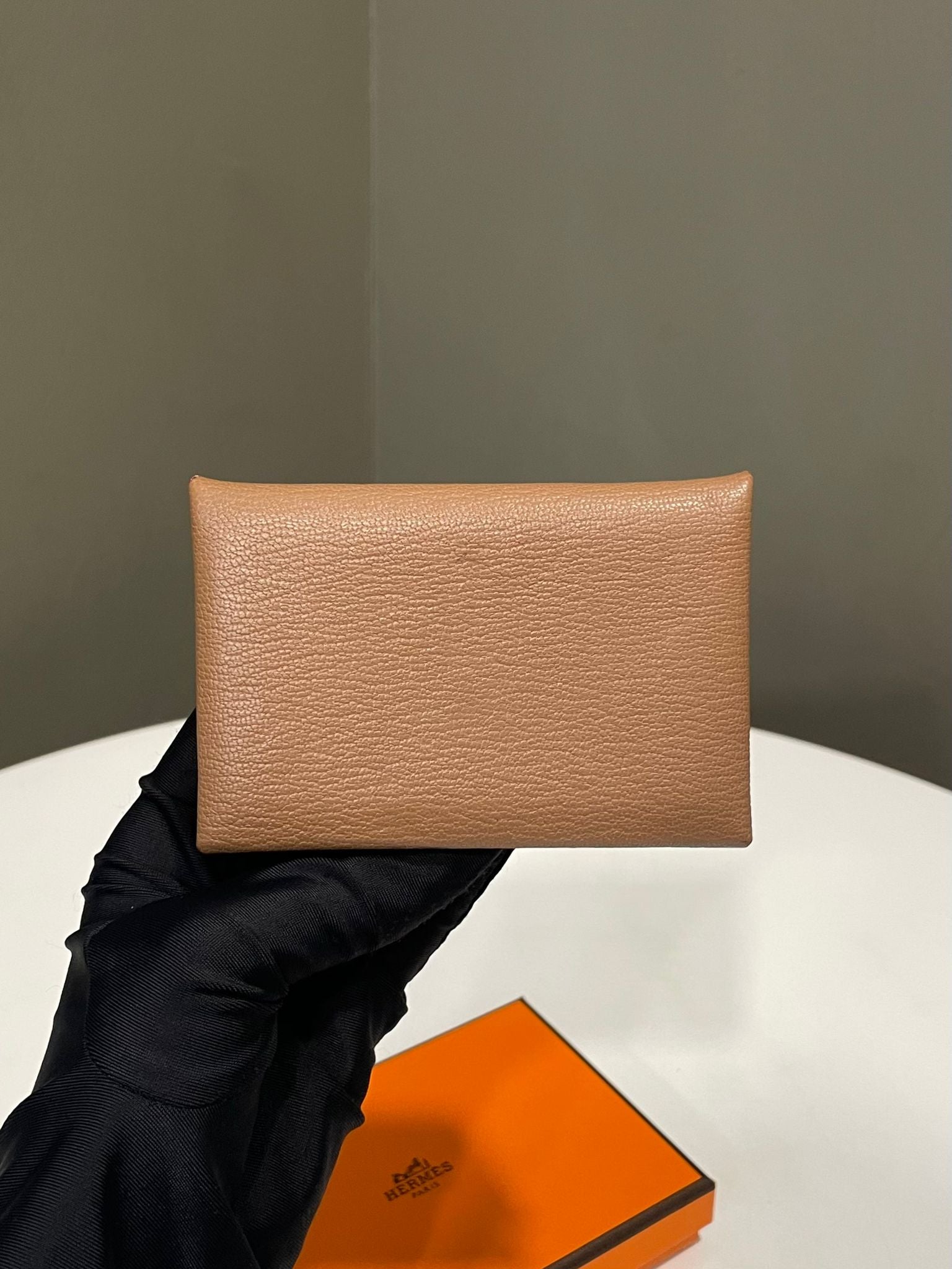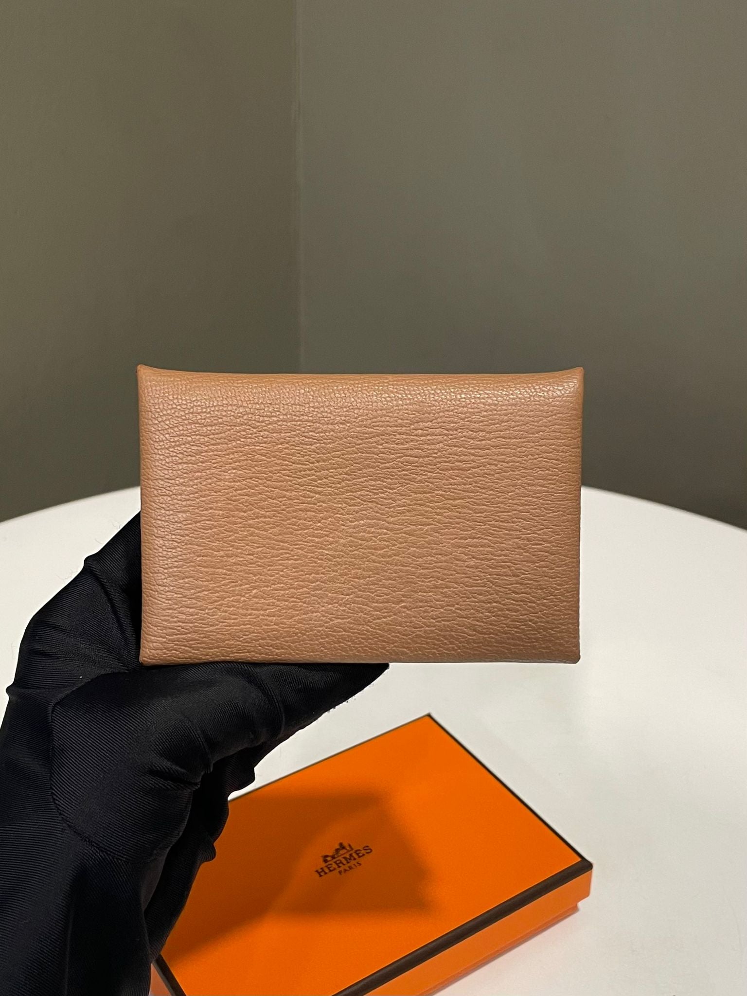 Hermes Calvi Card Holder Marron Alezan Chevre