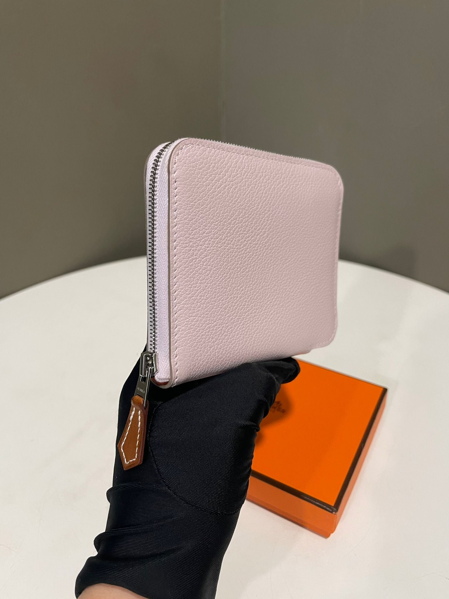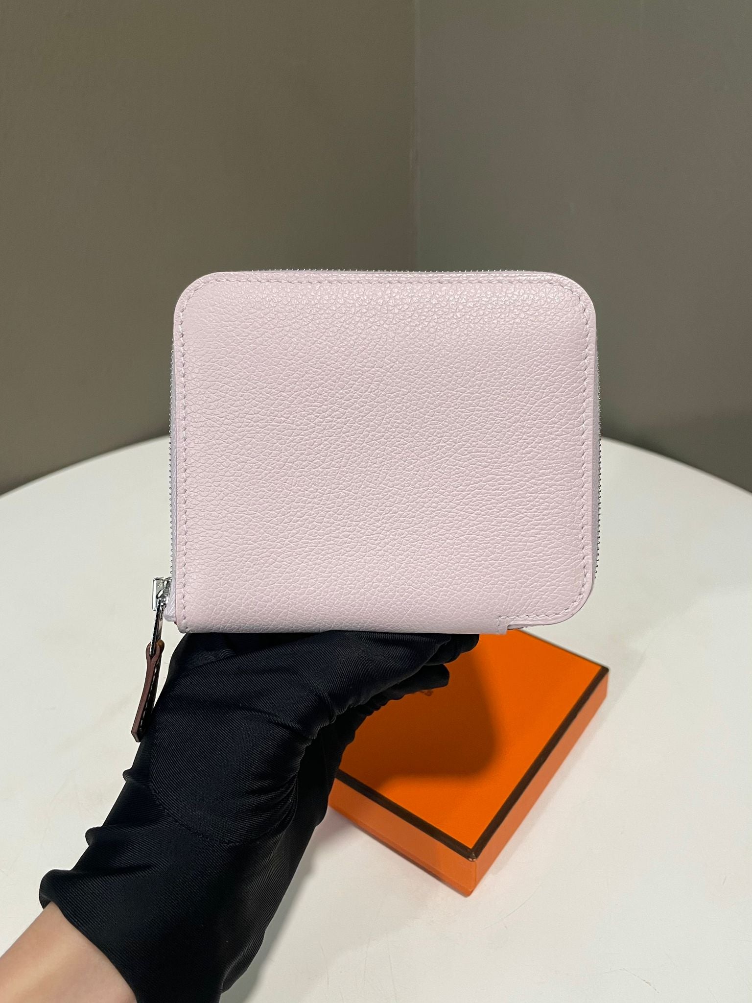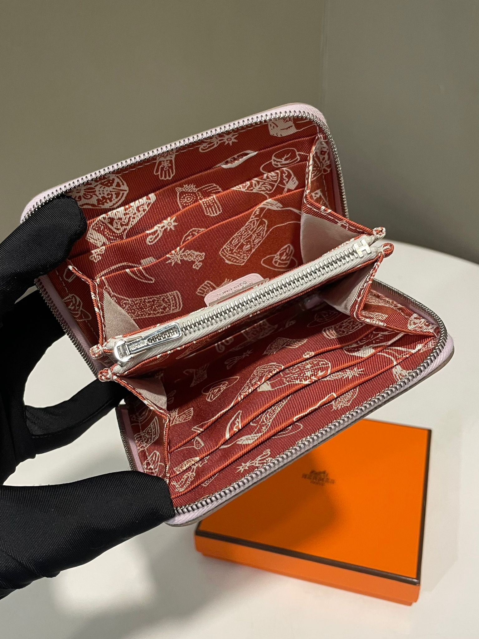 Hermes Silk In Compact Wallet Mauve Pale / Paprika