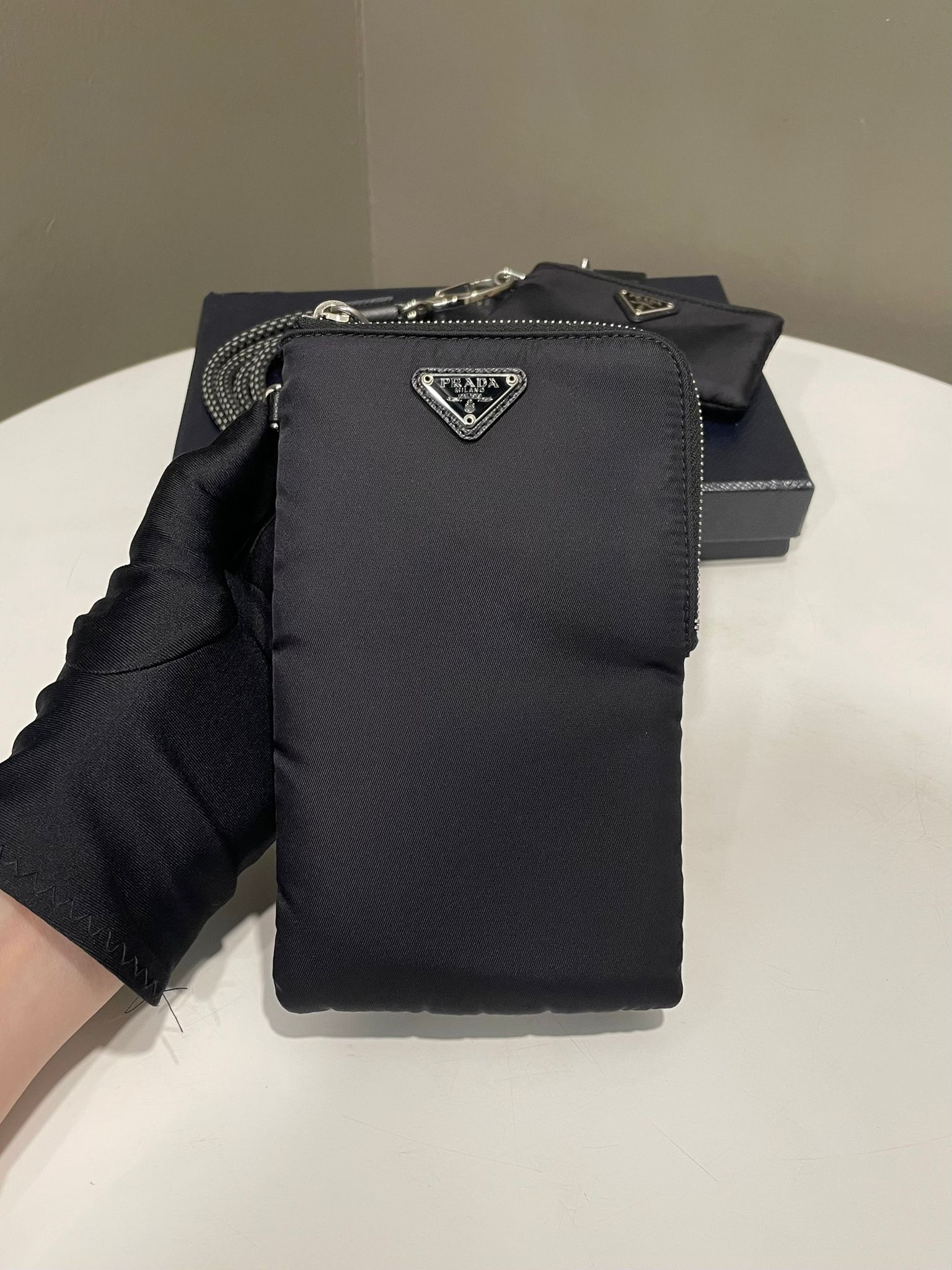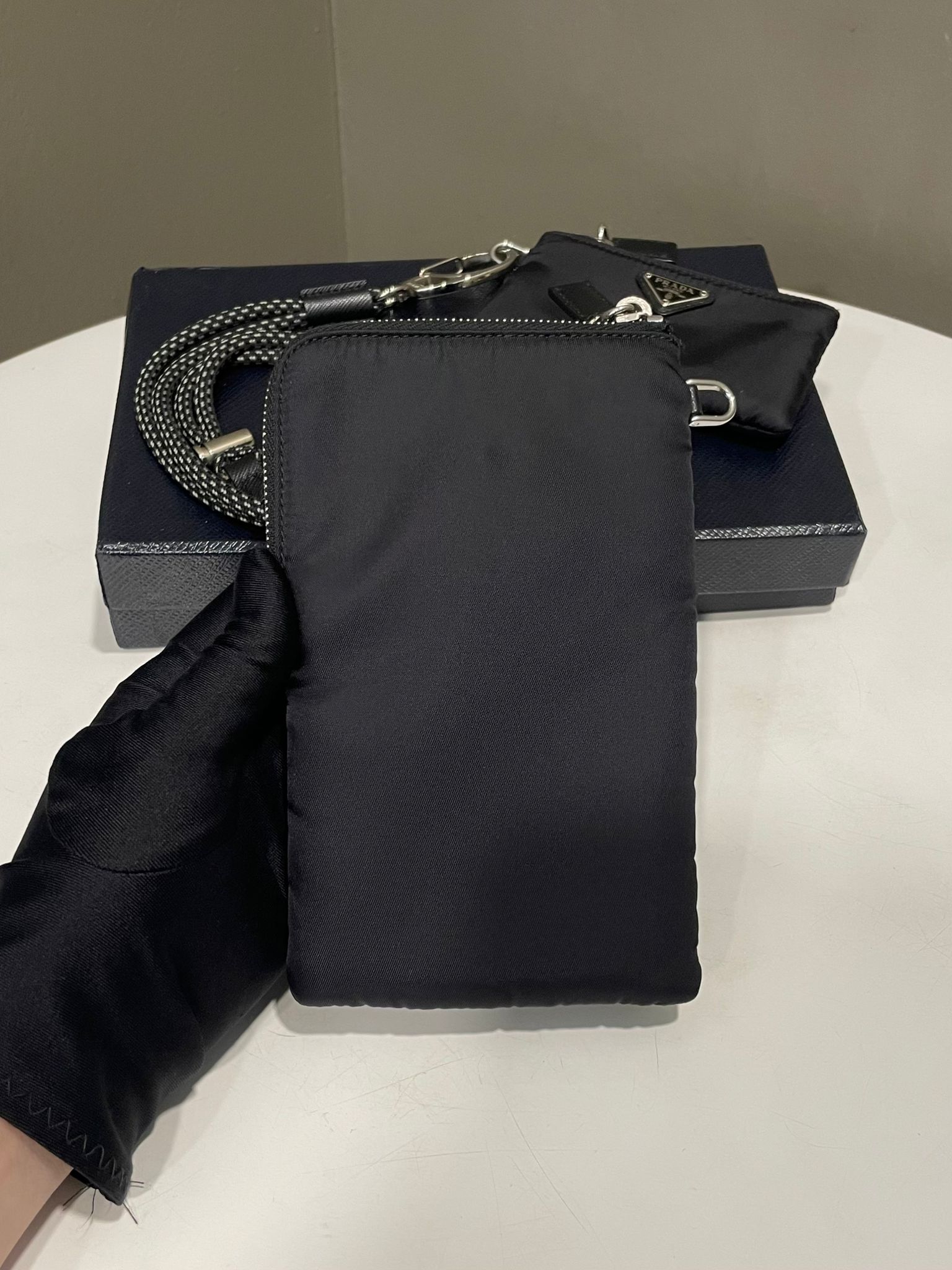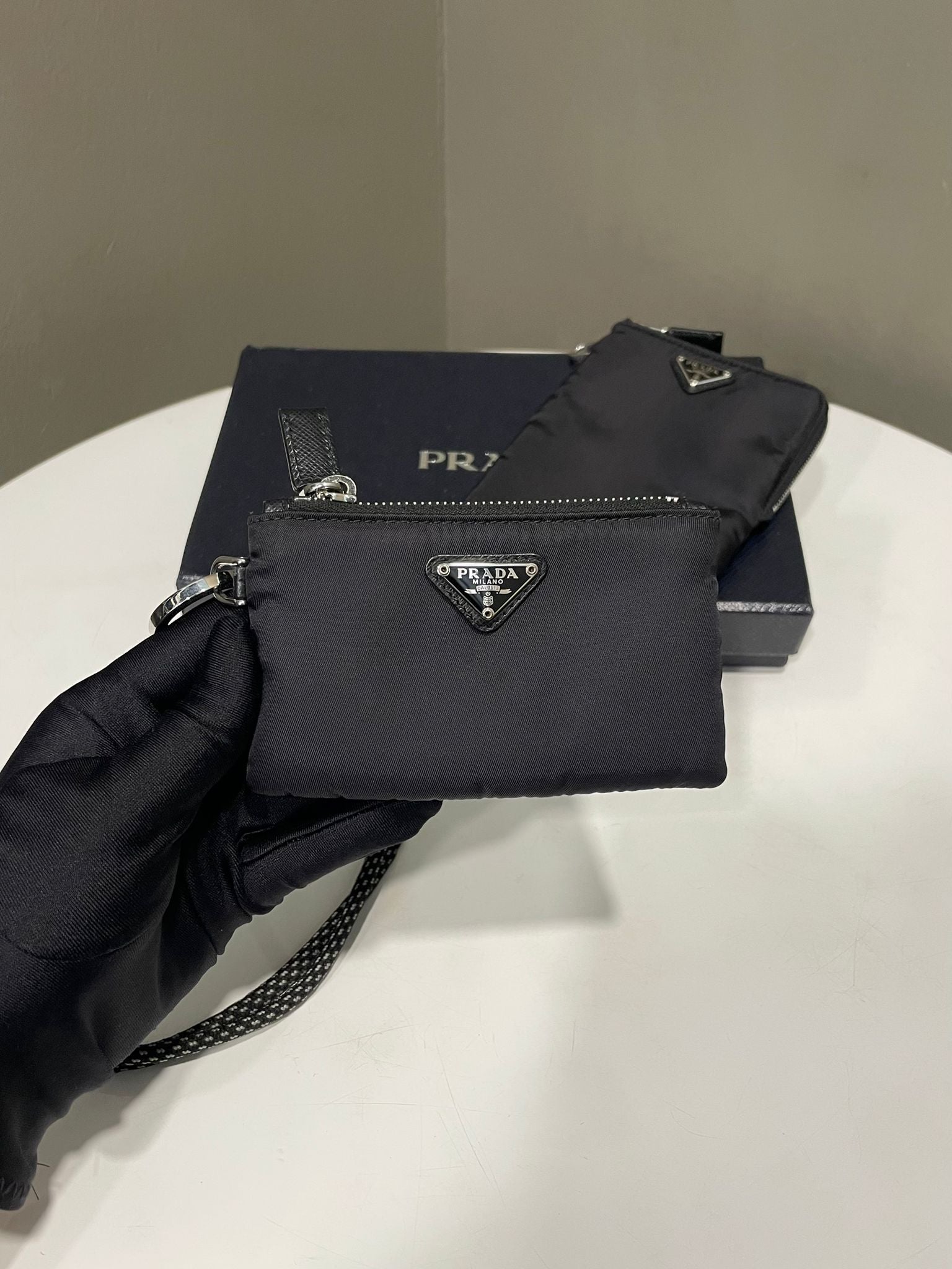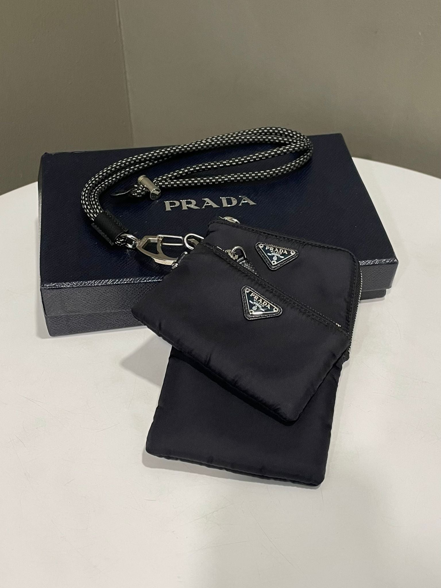 Prada Re-Nylon Lanyard Pouches Black Nylon