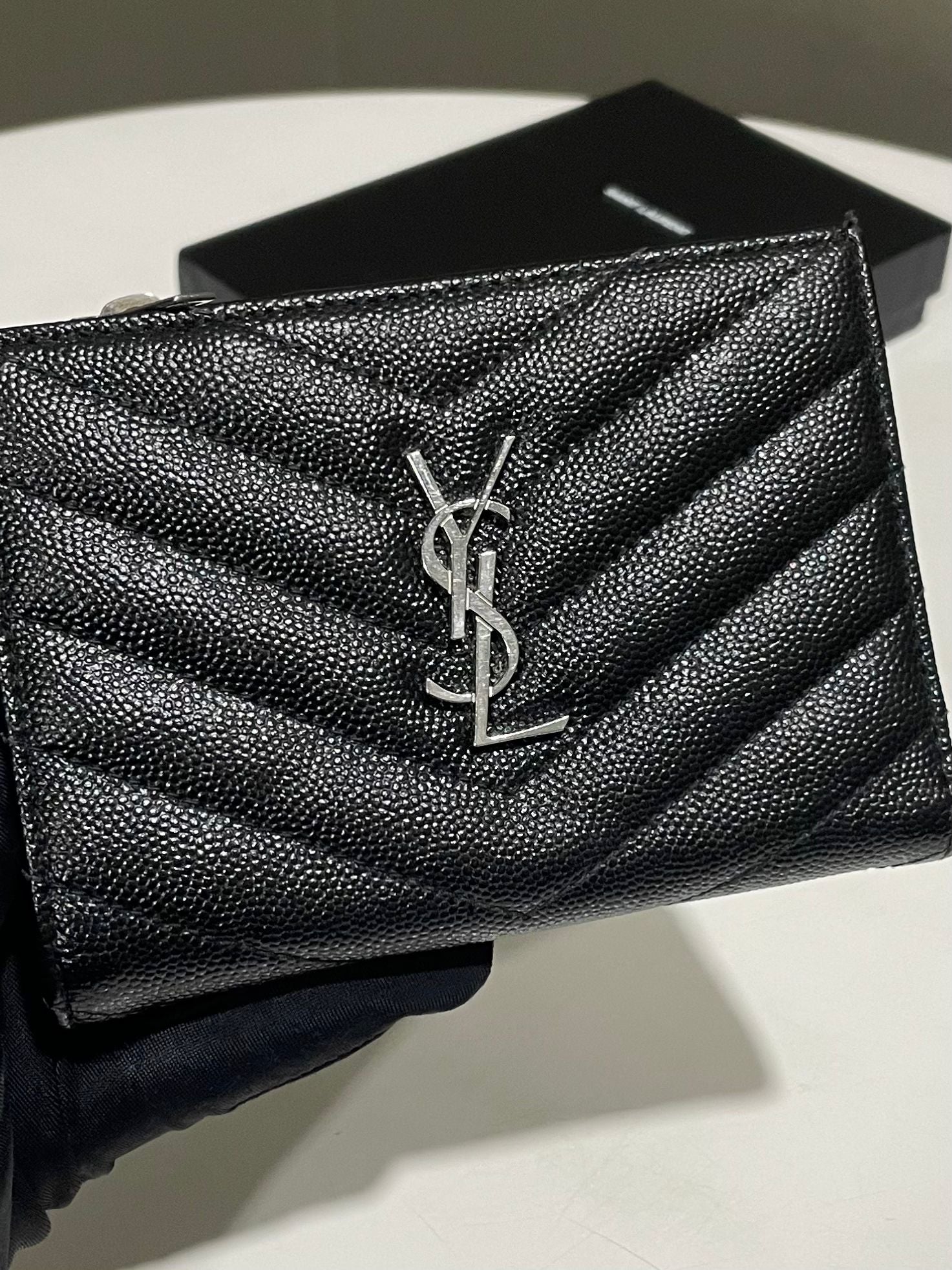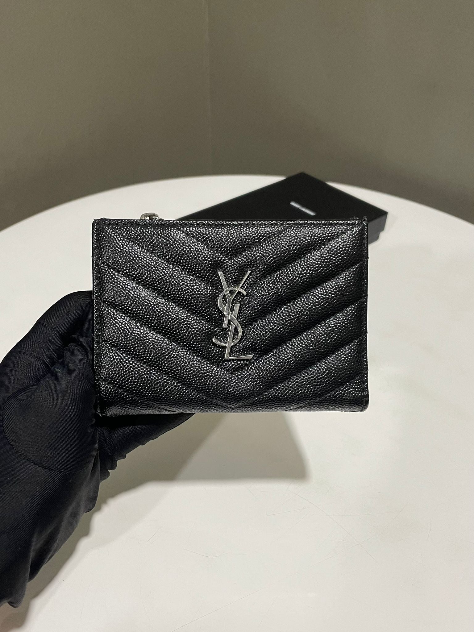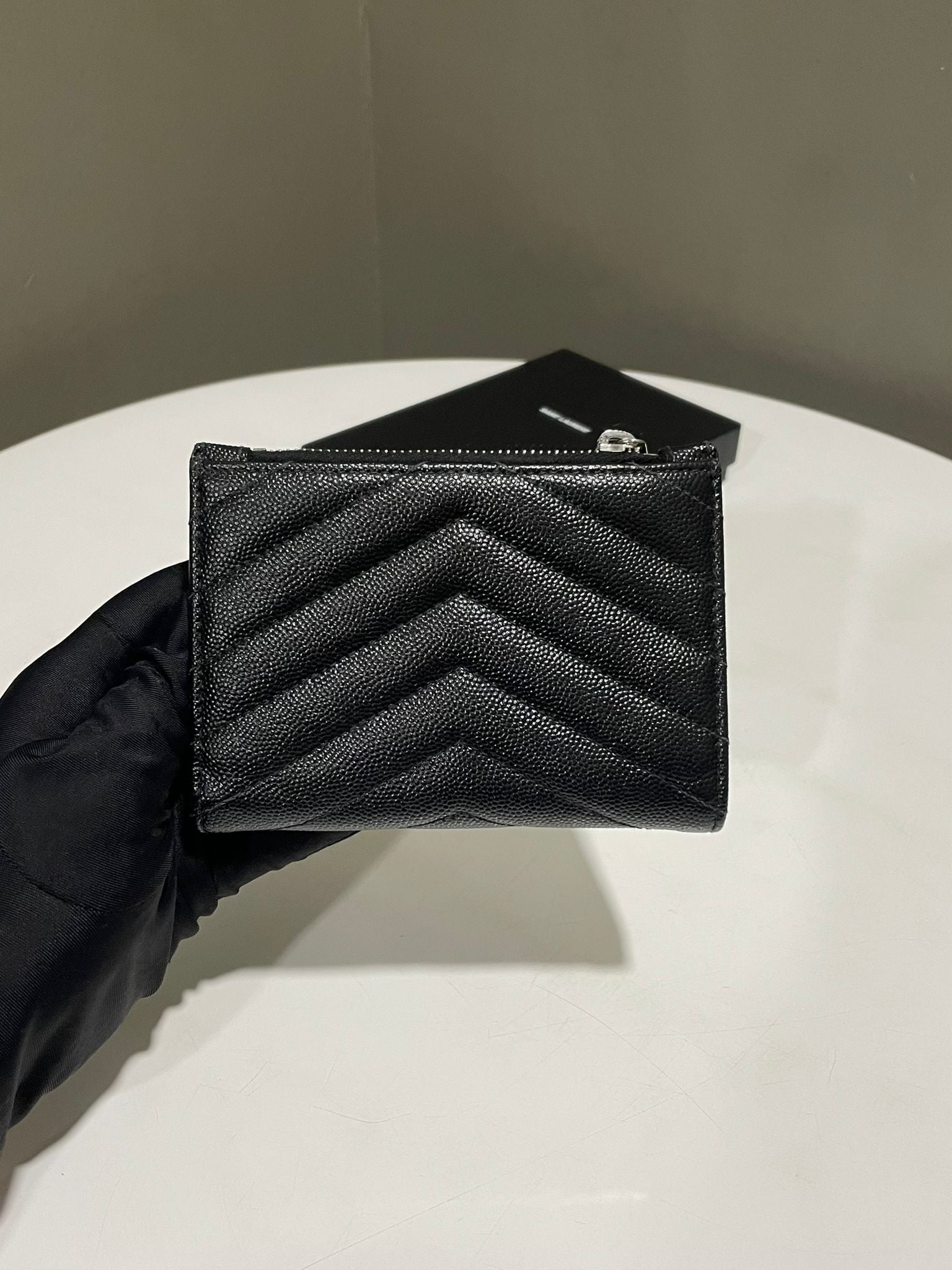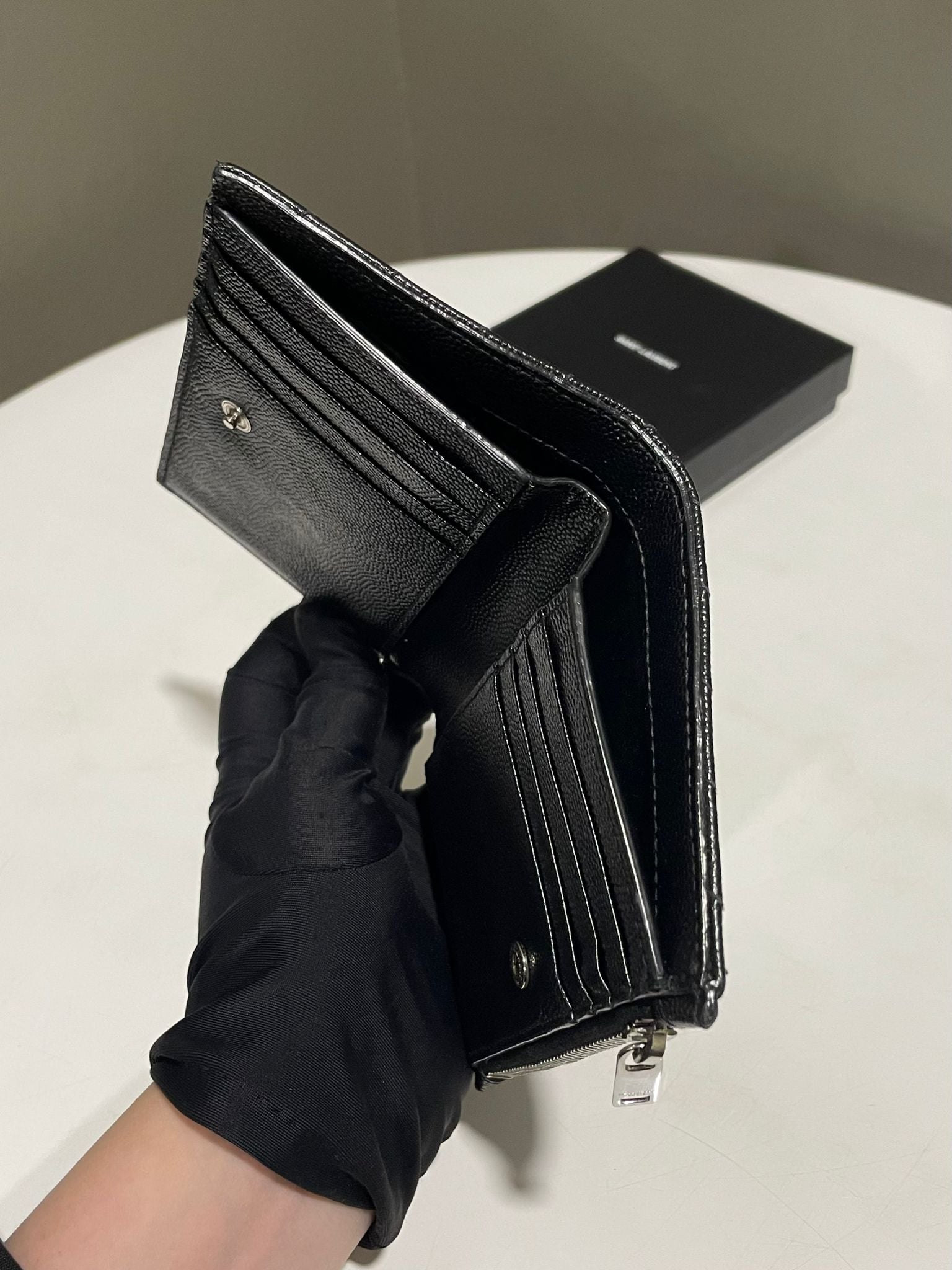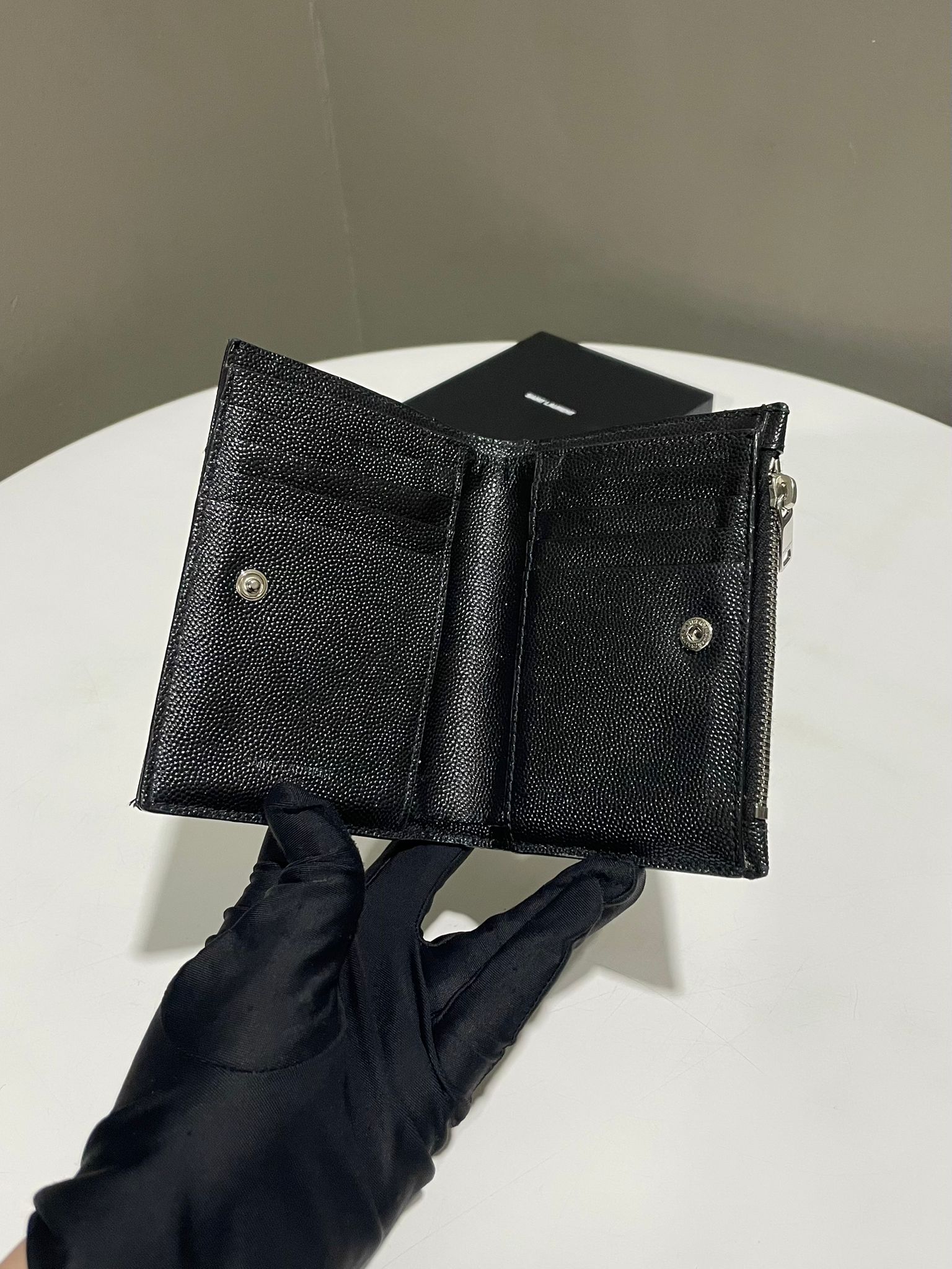 Saint Laurent Cassandre Matelasse Bi-Fold Wallet Black Grained Leather