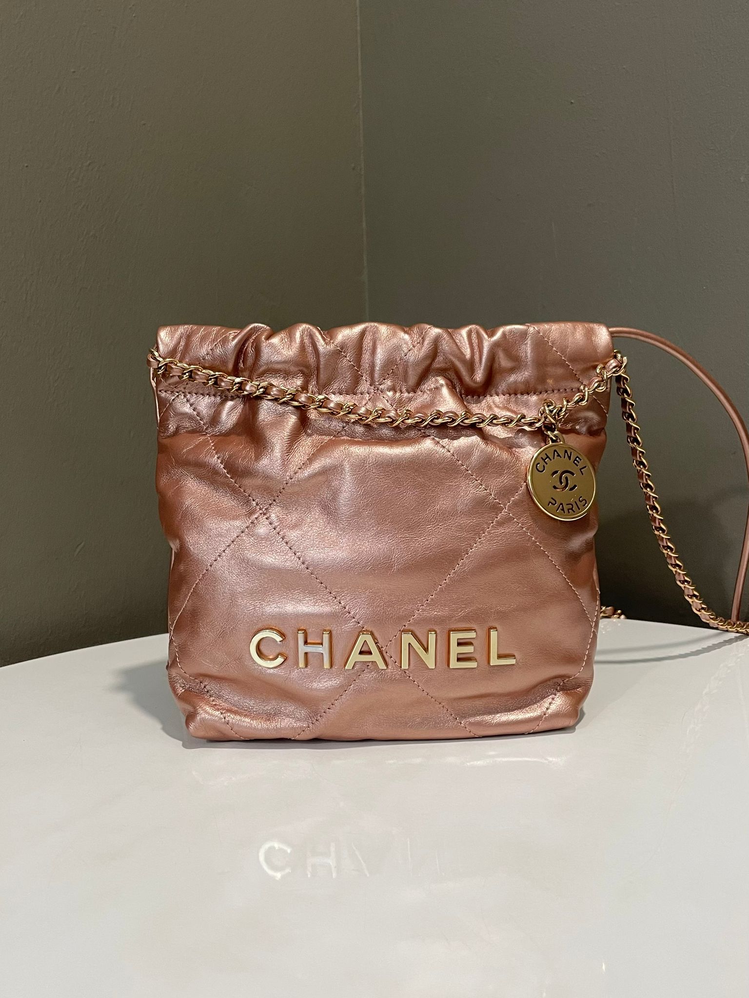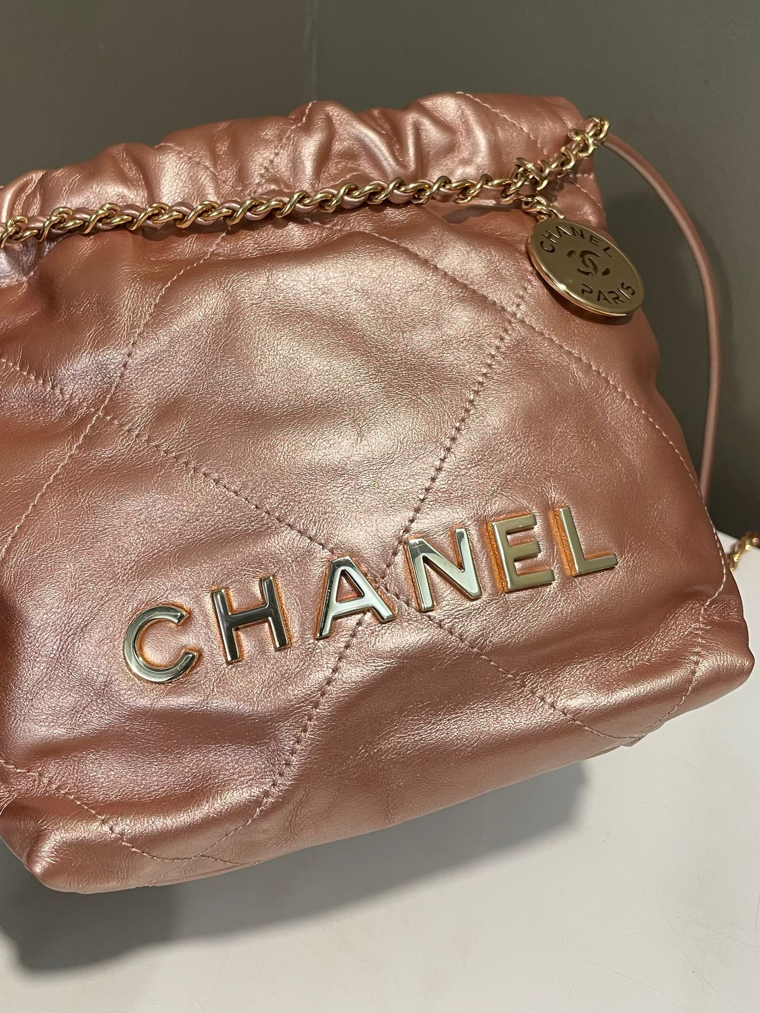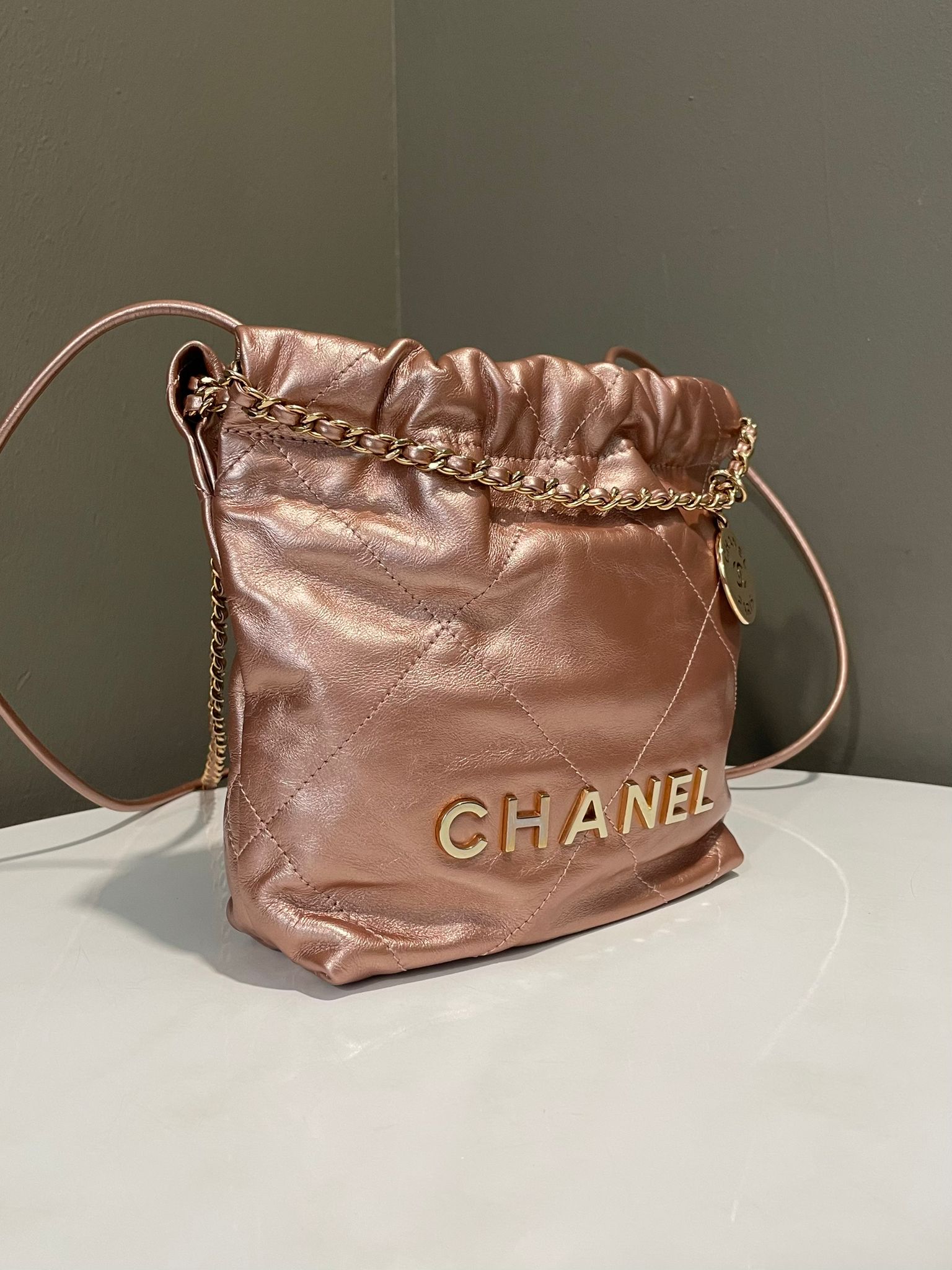 Chanel 22 Mini Rose Gold Metallic Calfskin