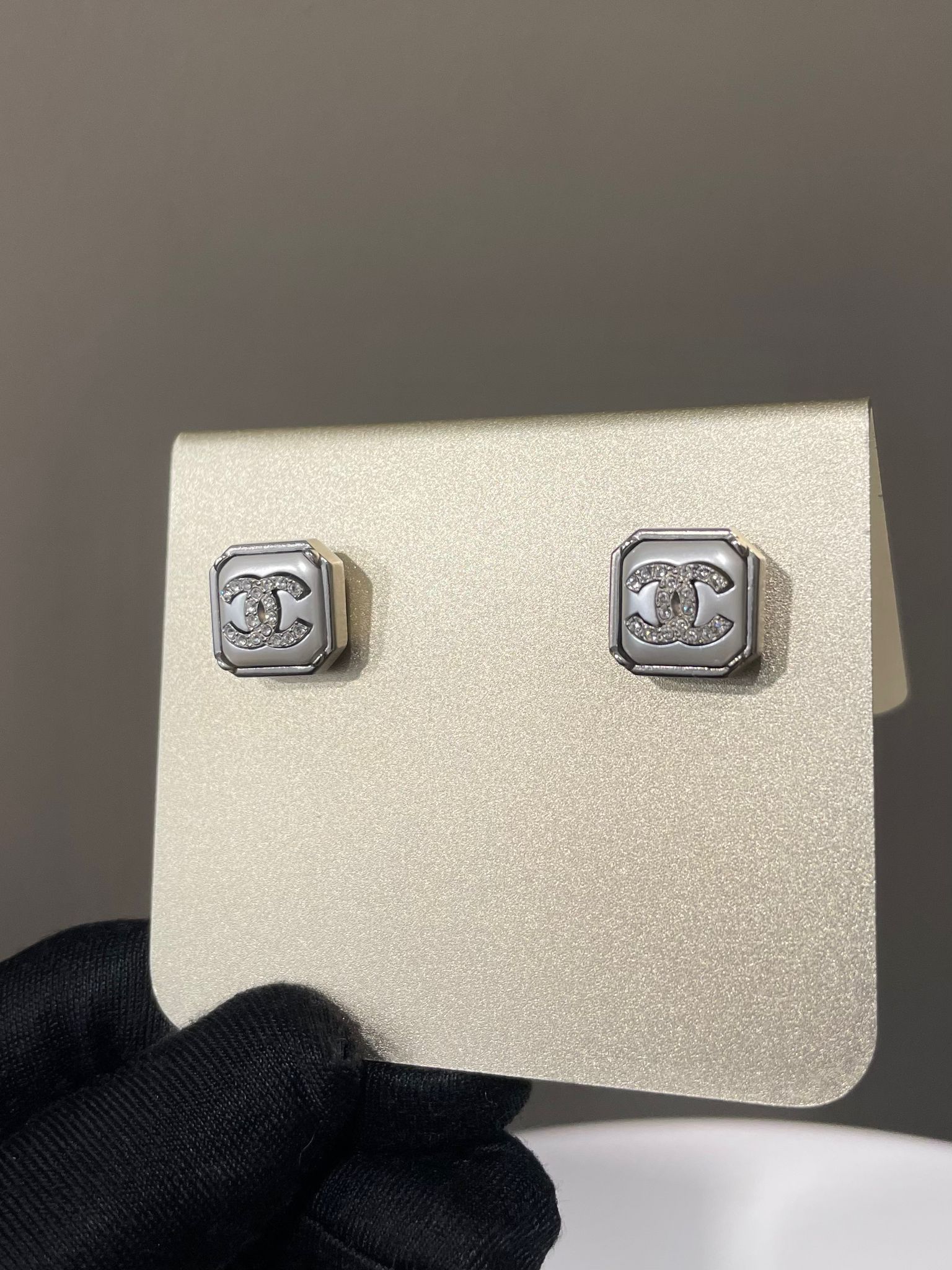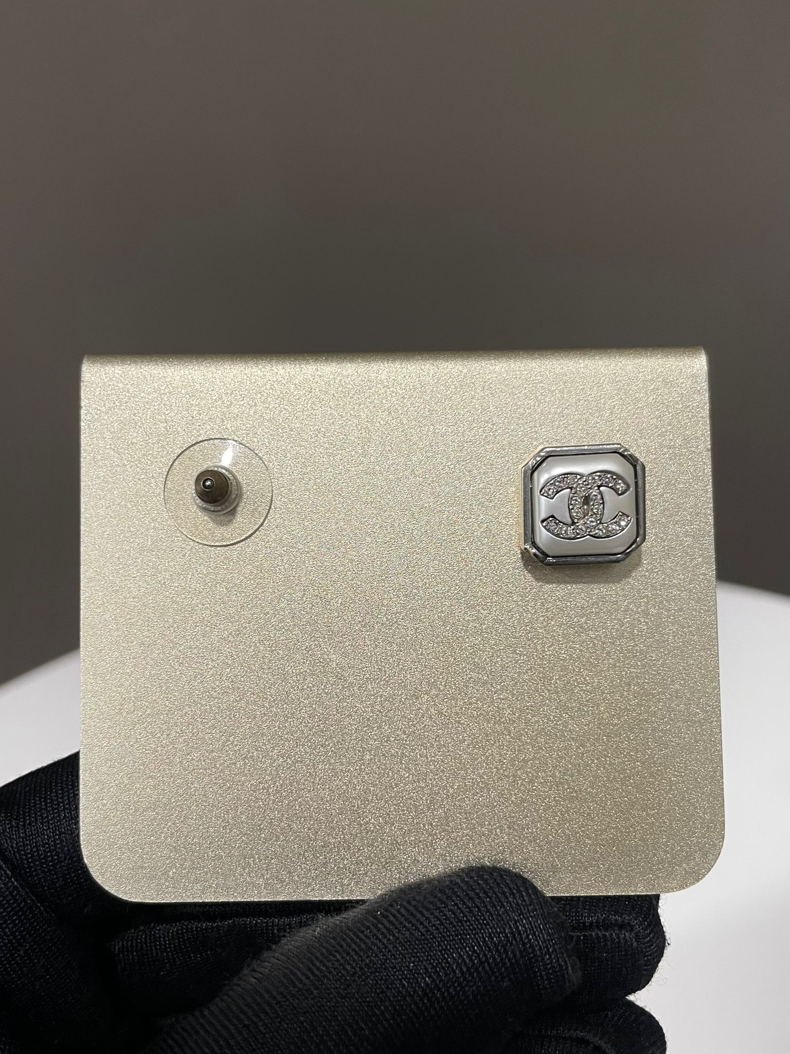 Chanel 22C CC Square Stud Earrings Faux Pearl Crystal Embellished