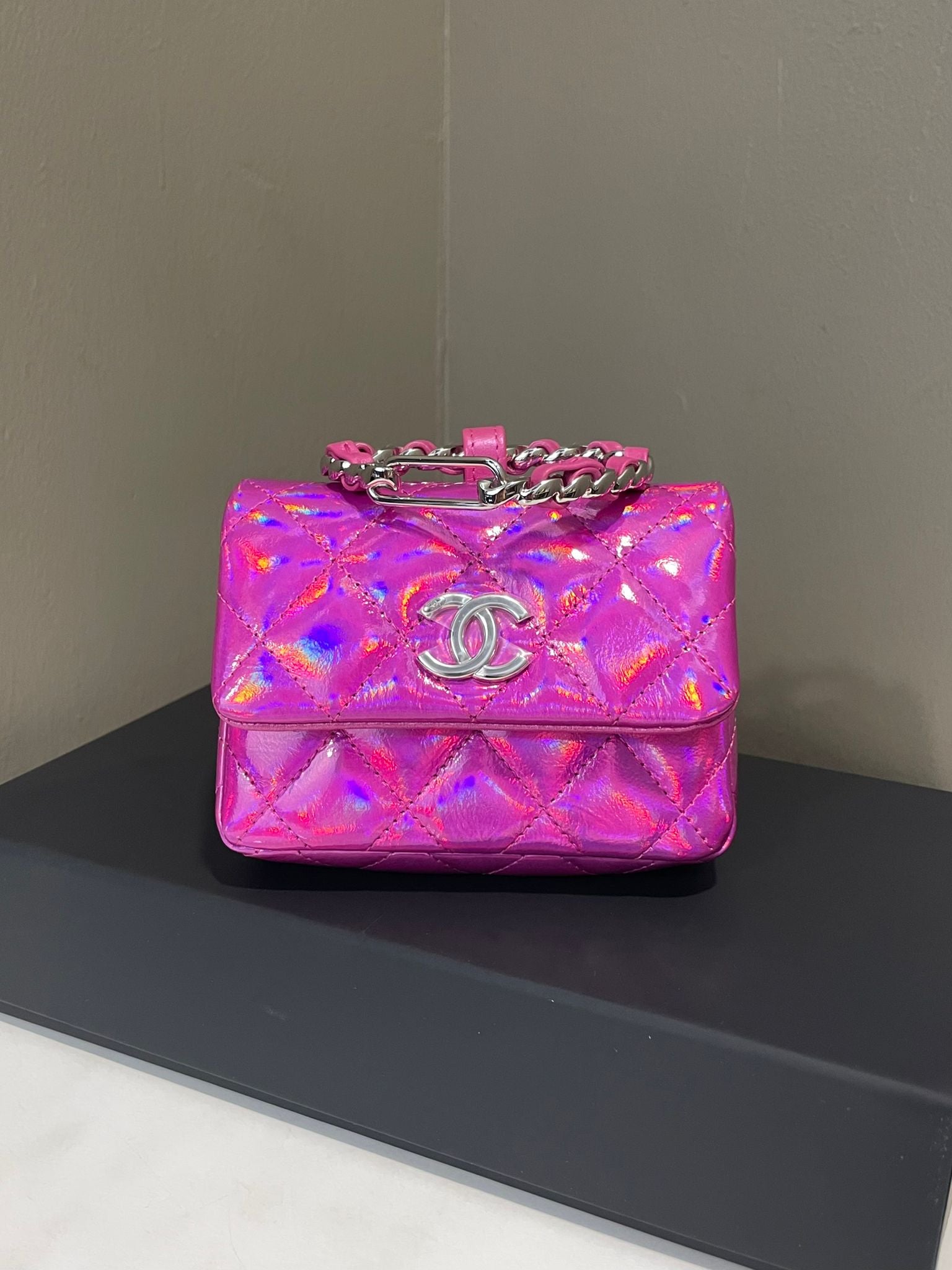 Chanel 24C VIP Card Holder D Hook Pink Holographic Iridescent