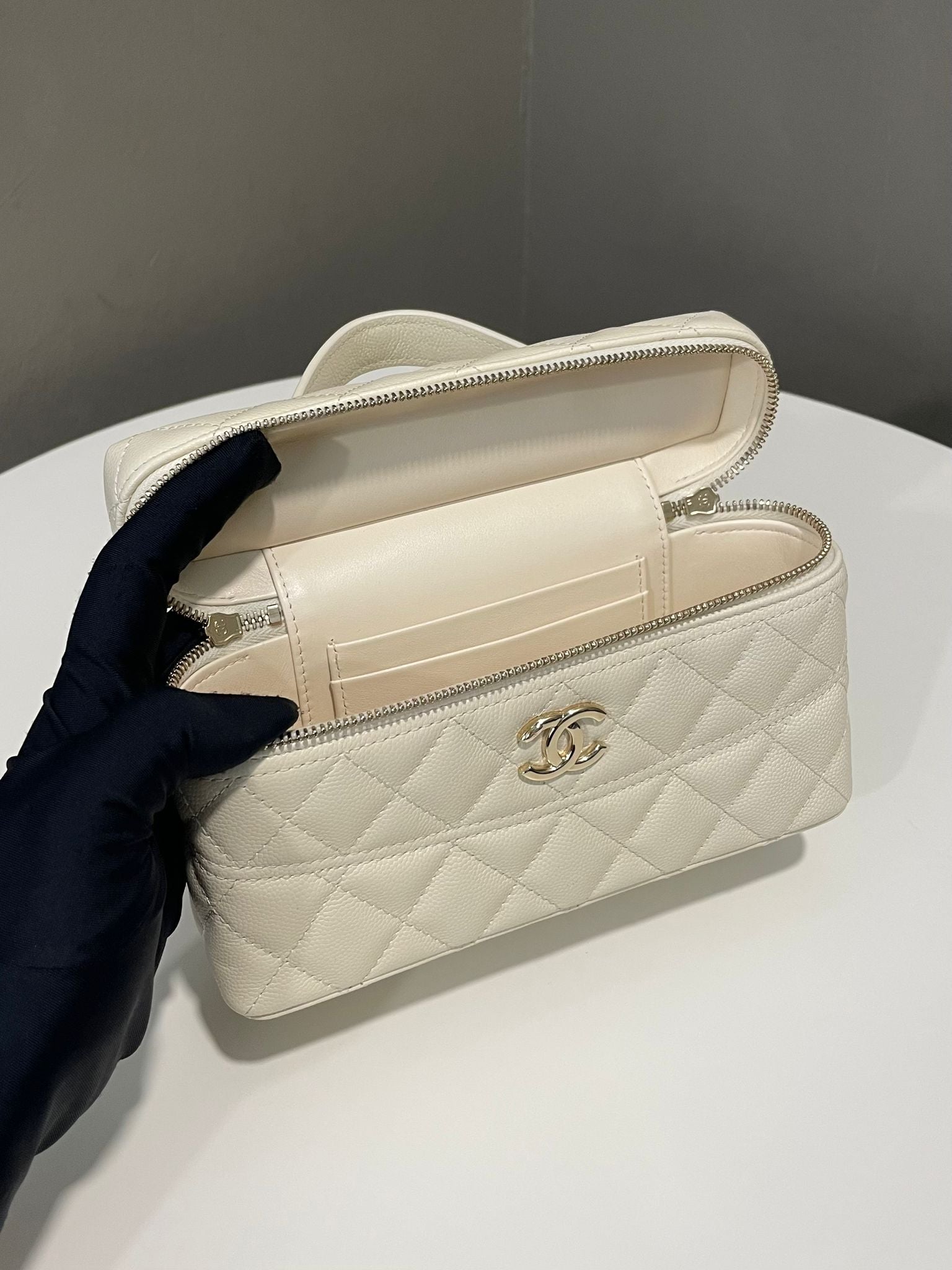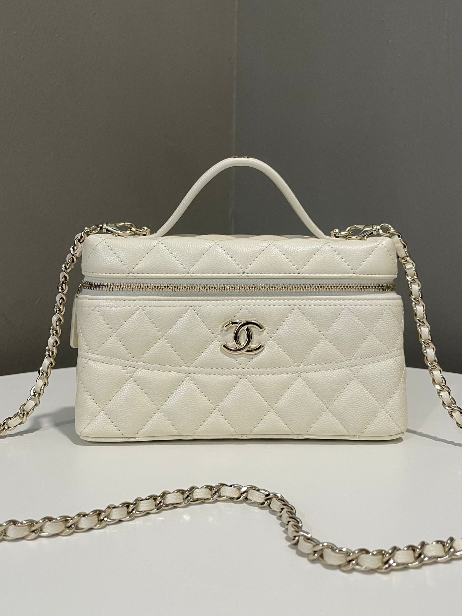 Chanel 26C LP Vanity Chain Ivory Cream Caviar
